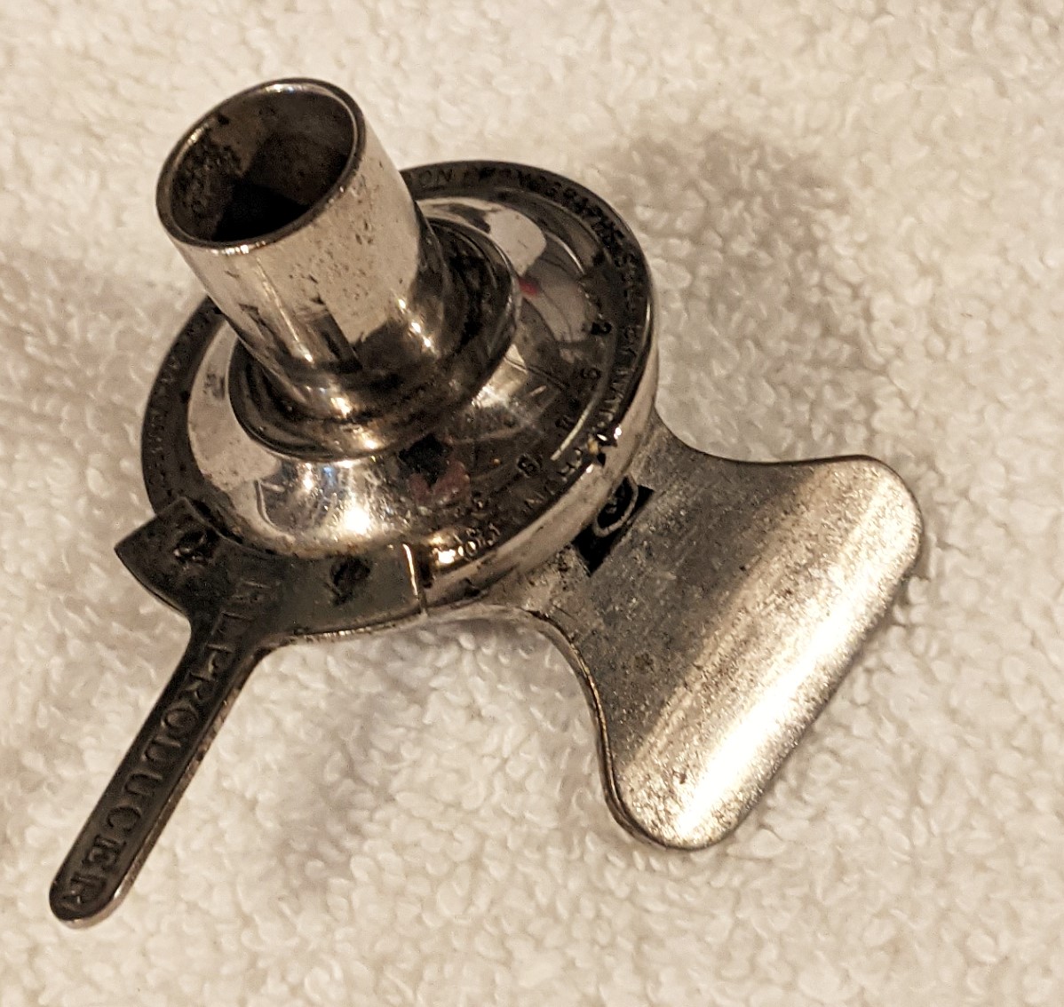 Here is a seldom found, and very desirable reproducer. It is an early Edison Model C with the side arm. What makes this one exceptional is that the tail weight is unmarked. The earliest model C's had no marking on their tail weight. These reproducers are seldom found, and highly sought after. This one sounds great with a nice original jewel. It has great nickeling. It plays wonderfully, and displays even better.