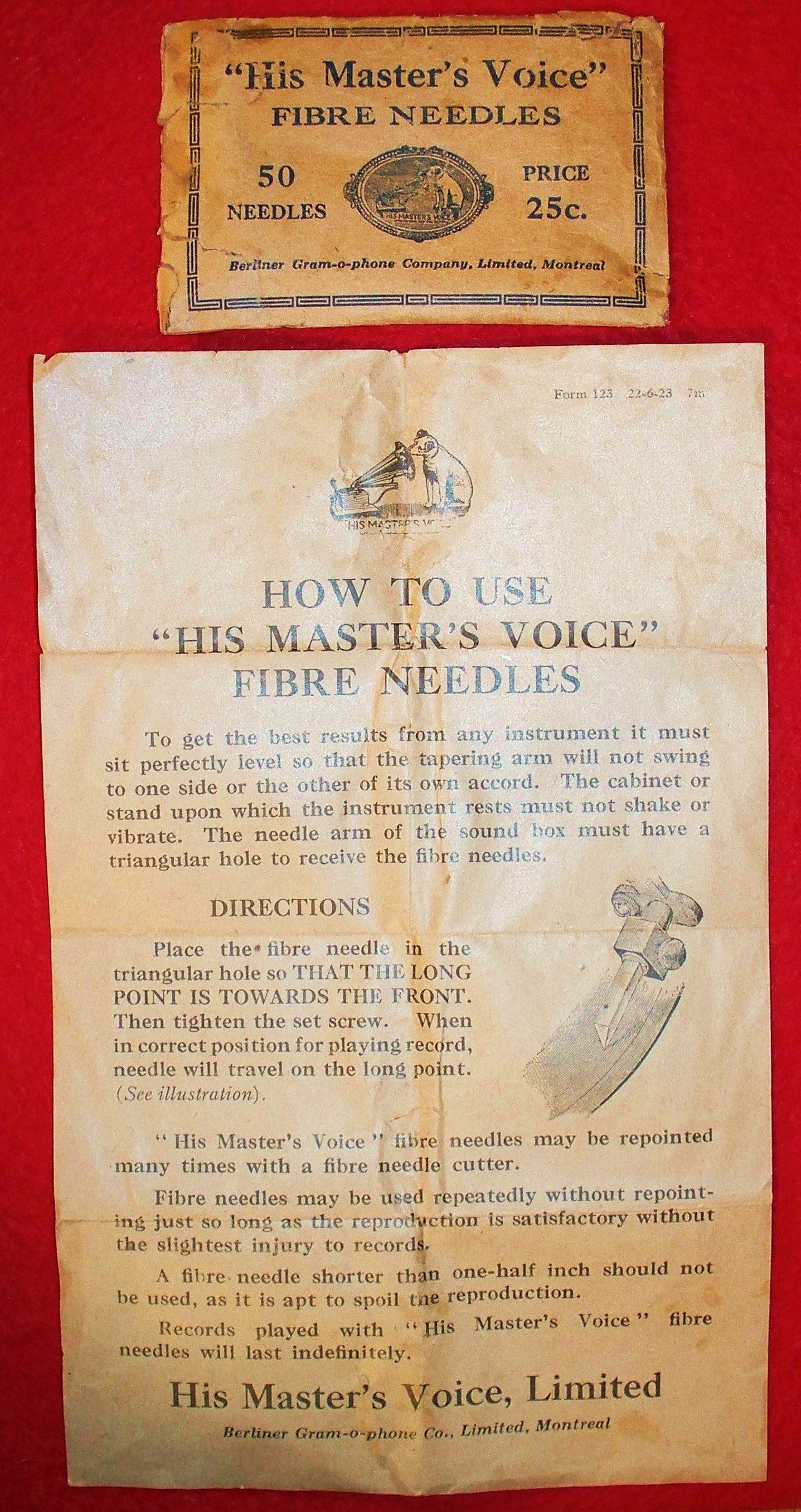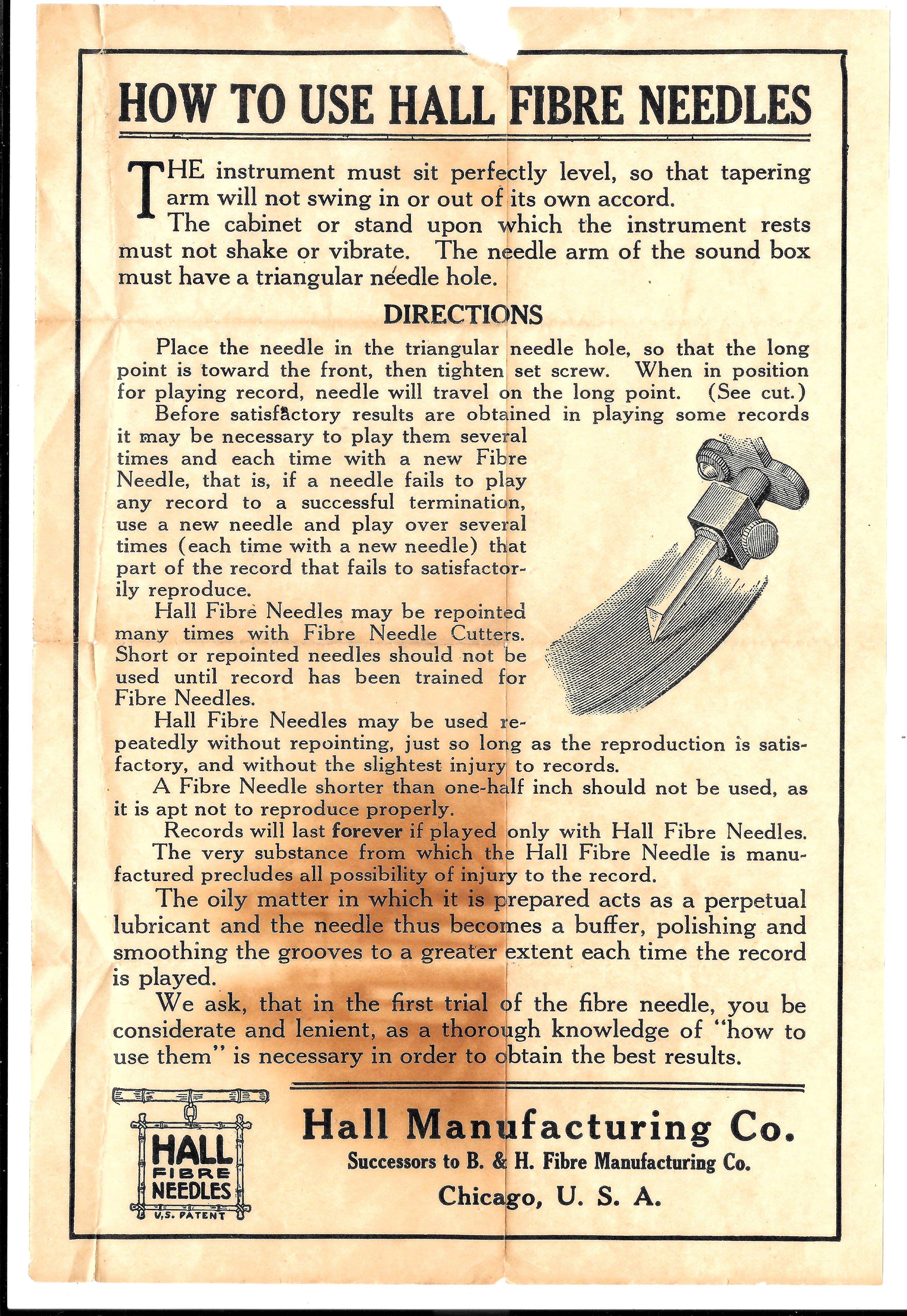 The instruction sheet would have been inside a Hall fibre needle packet. Just like Victor, B&H and Berliner.