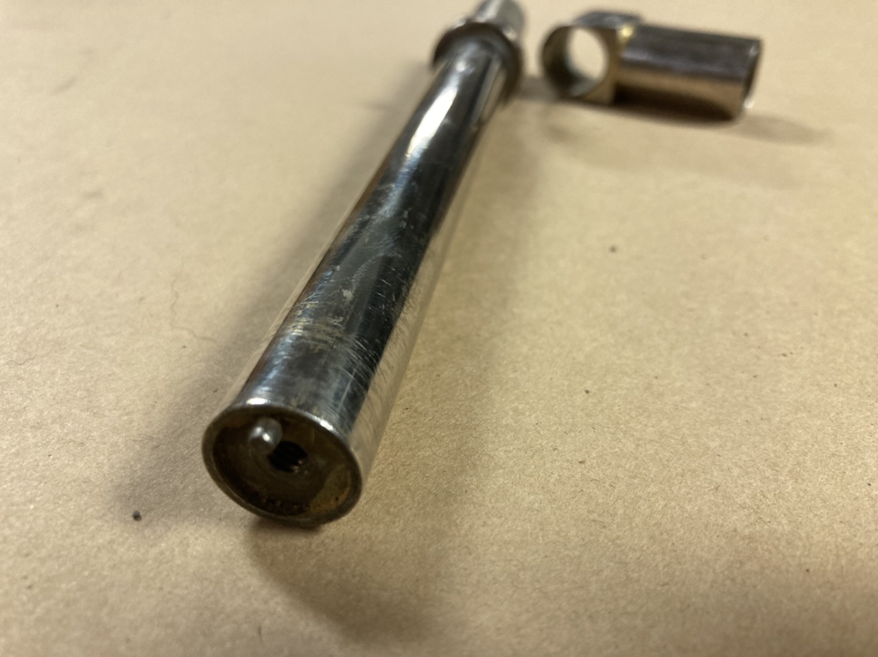 Here is a nickel plated Graphophone Coin Op reproducer connector tube swivel and stanchion/post. Bright nickel.