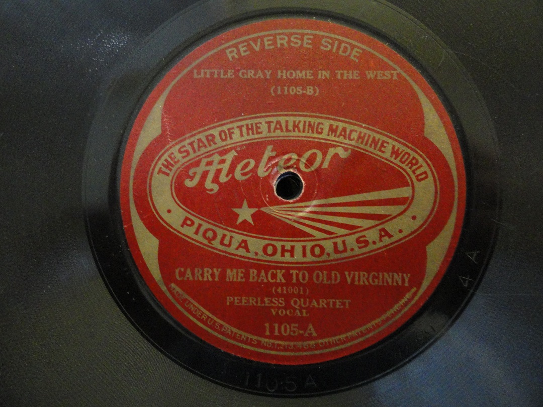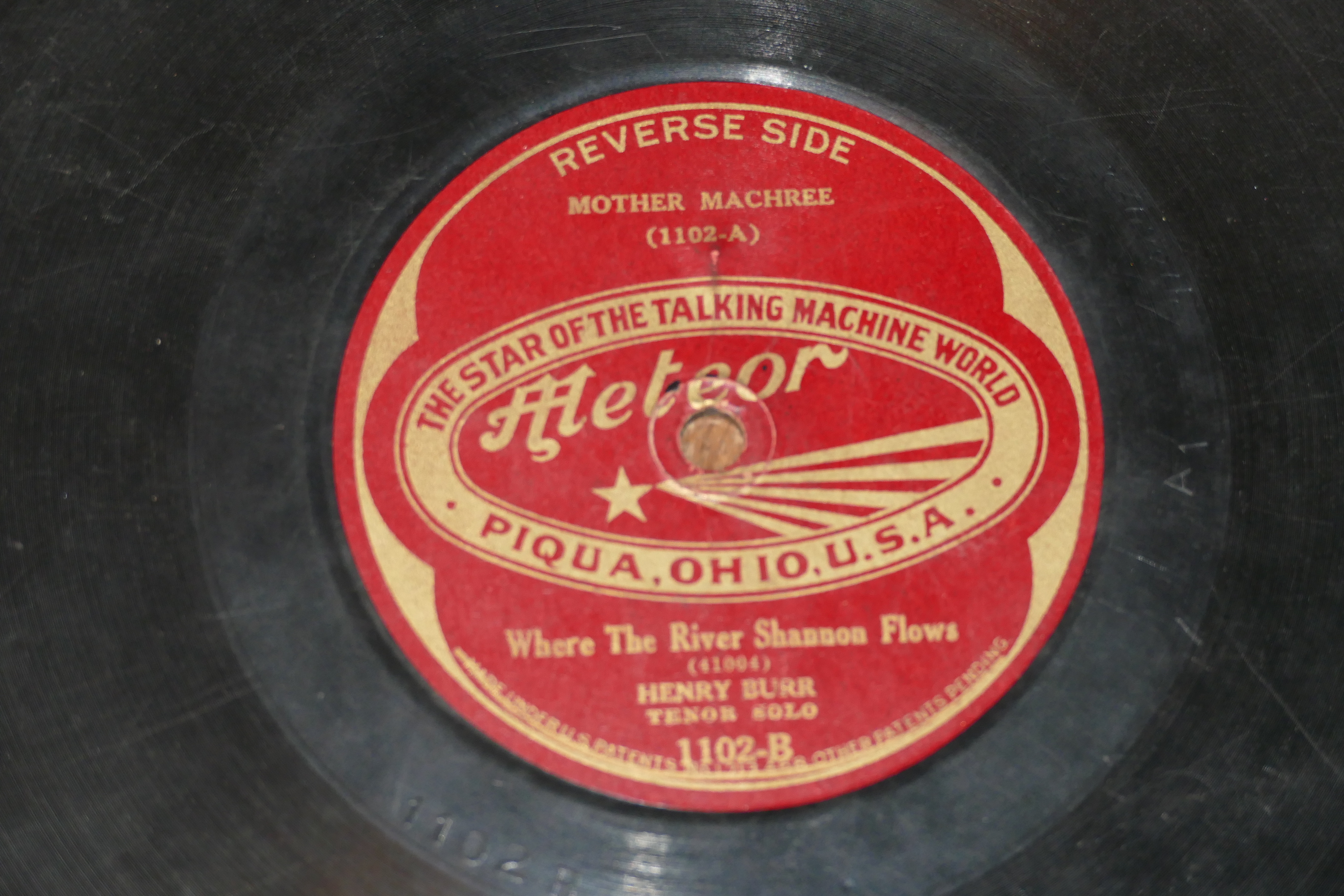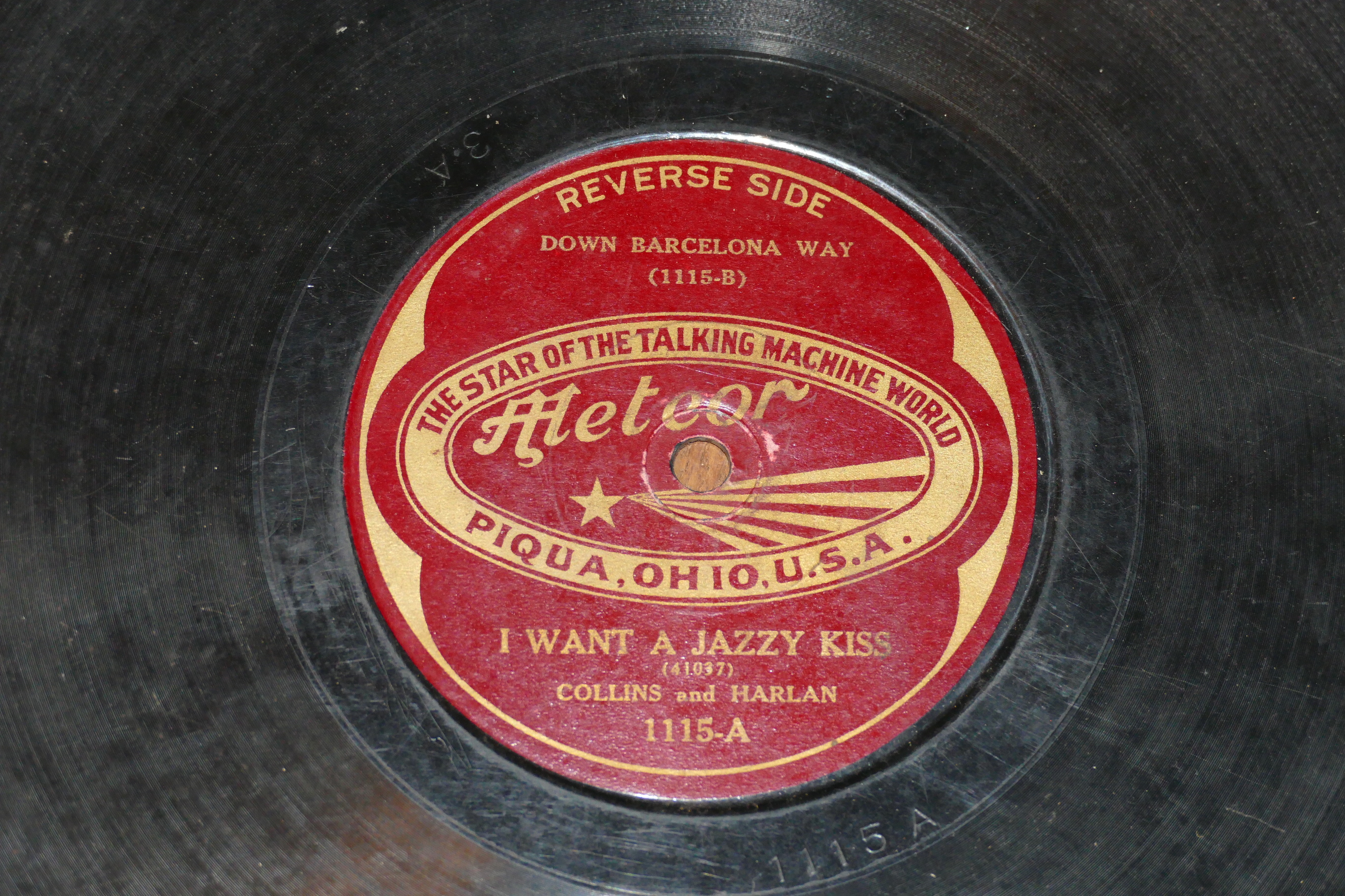 I found these in a very large lot of 78's I picked up recently; I'm less than halfway through sorting them, so there may well be more in there. It's a label I've never seen before, in several decades of collecting, though I have come across several Meteor phonographs. (Never owned one, but I love their logo, and the mention of Piqua, Ohio!) Sutton/Nauck says these were likely produced for less than a year (1920-21?), and I can't find a single picture of one online, but I would like to know more about them, including a sense of how many there are out there, and what some other titles may be. One thing I love about these is the way the label tells you what's on the other side of the disc! Any information would be appreciated. Thanks!