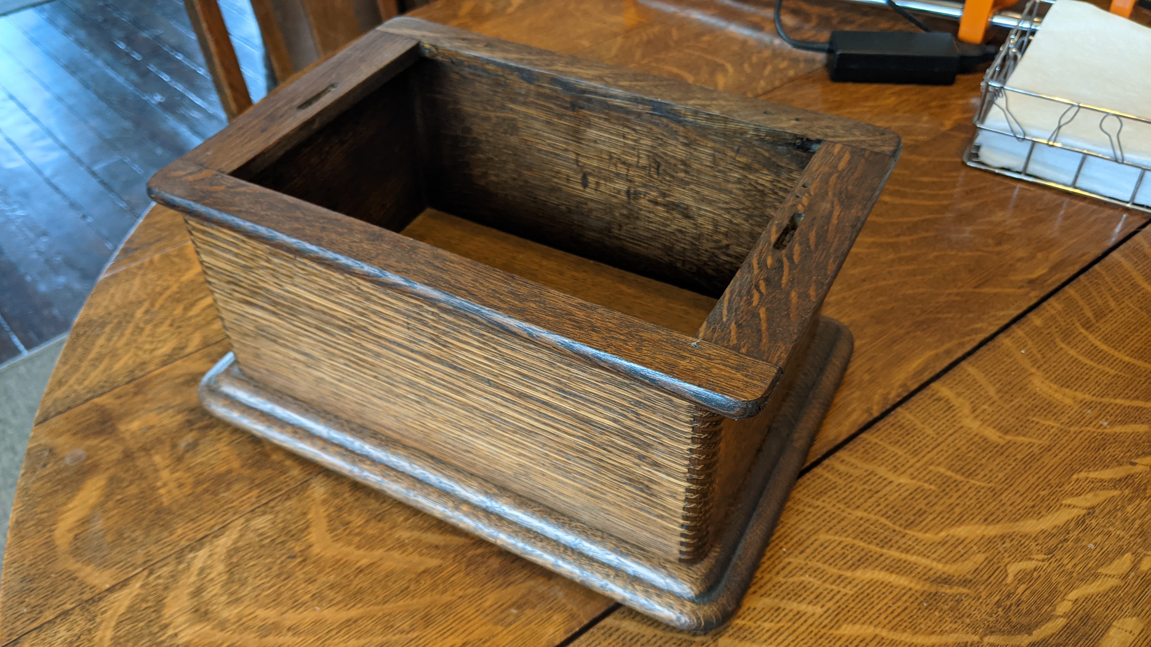 Nicely refinished Edison standard case, no lid. Asking $40 plus actual shipping, will be double-boxed and packed to insure it reaches you safely. Feel free to request additional photos.