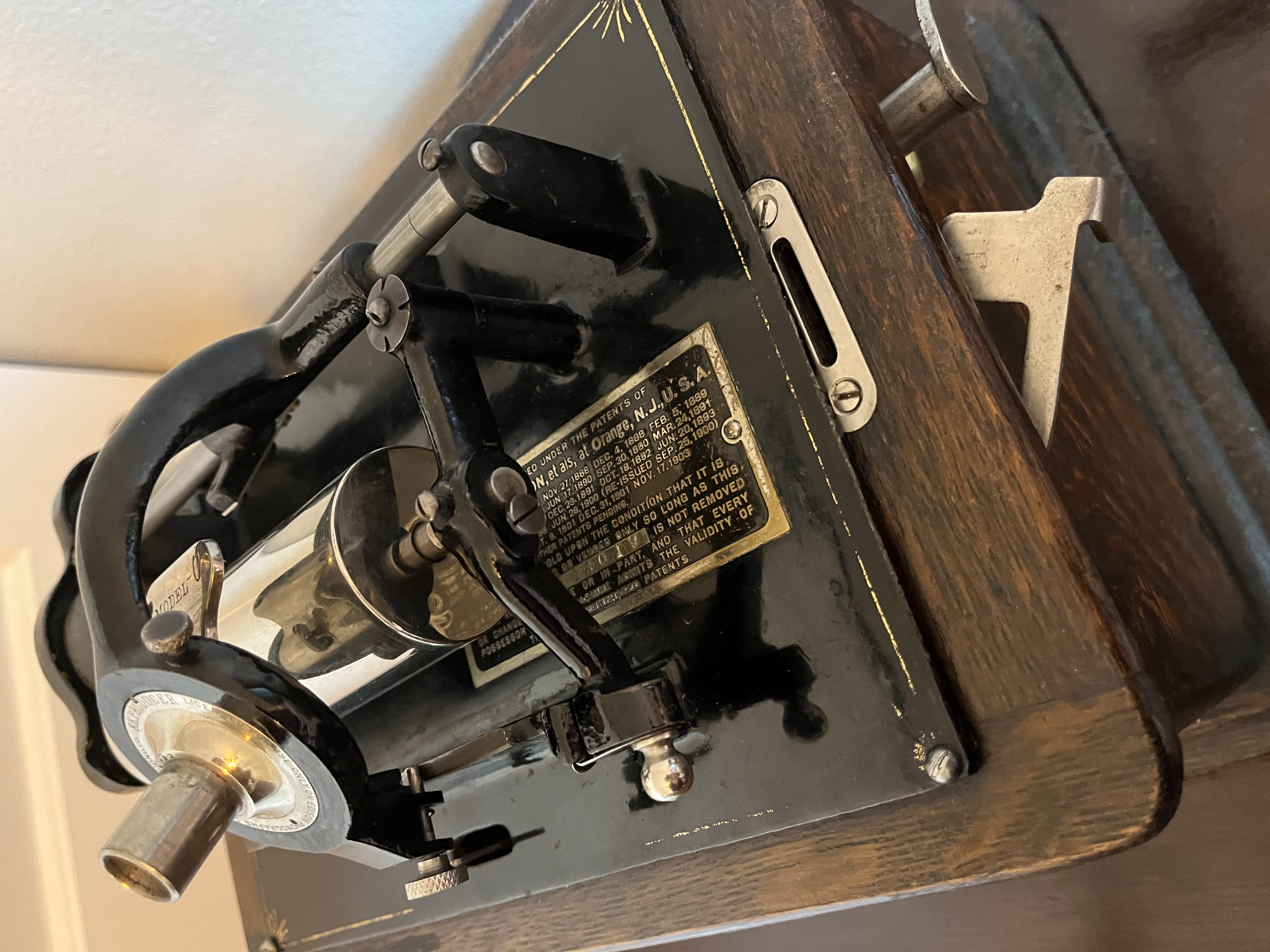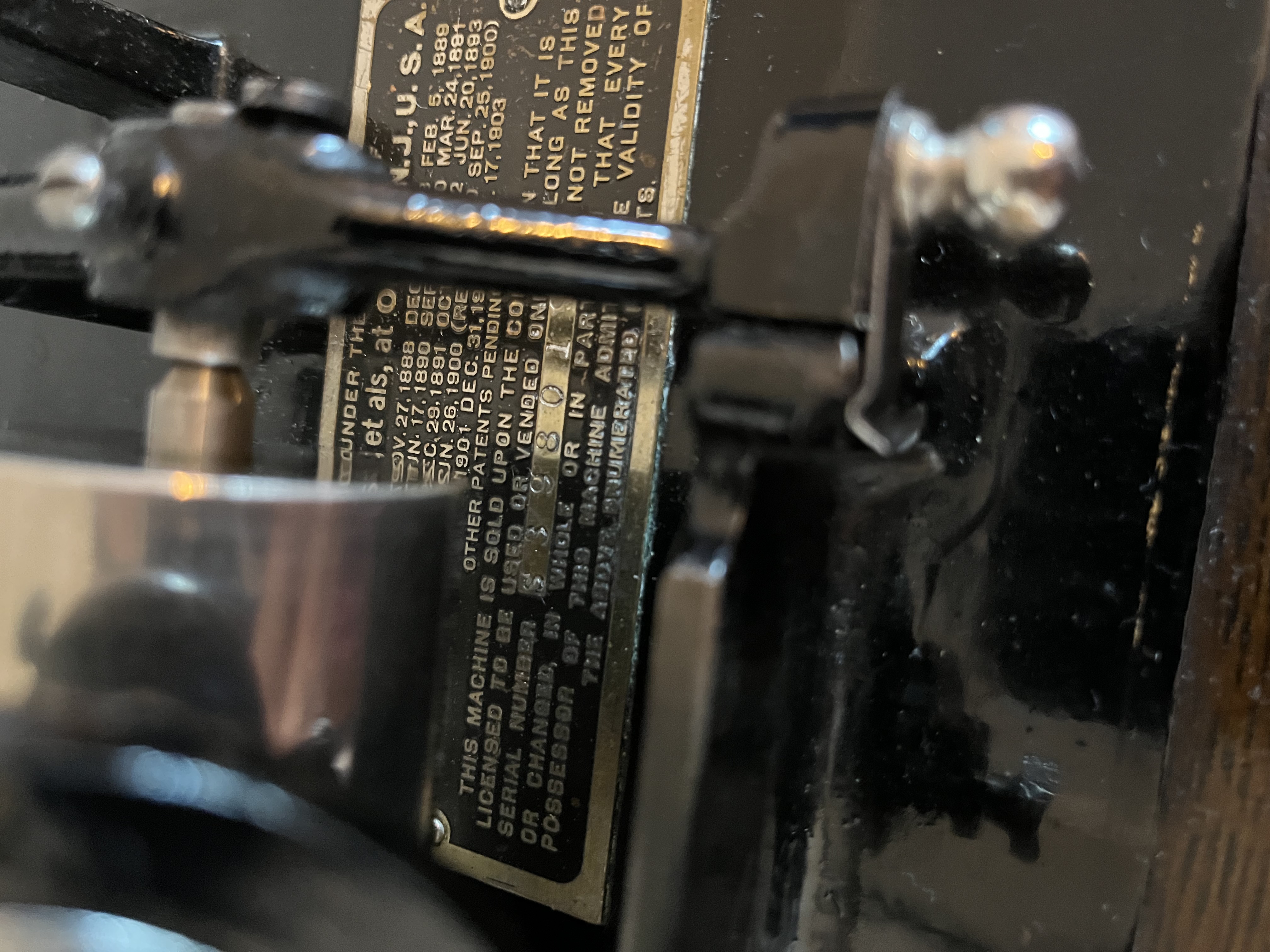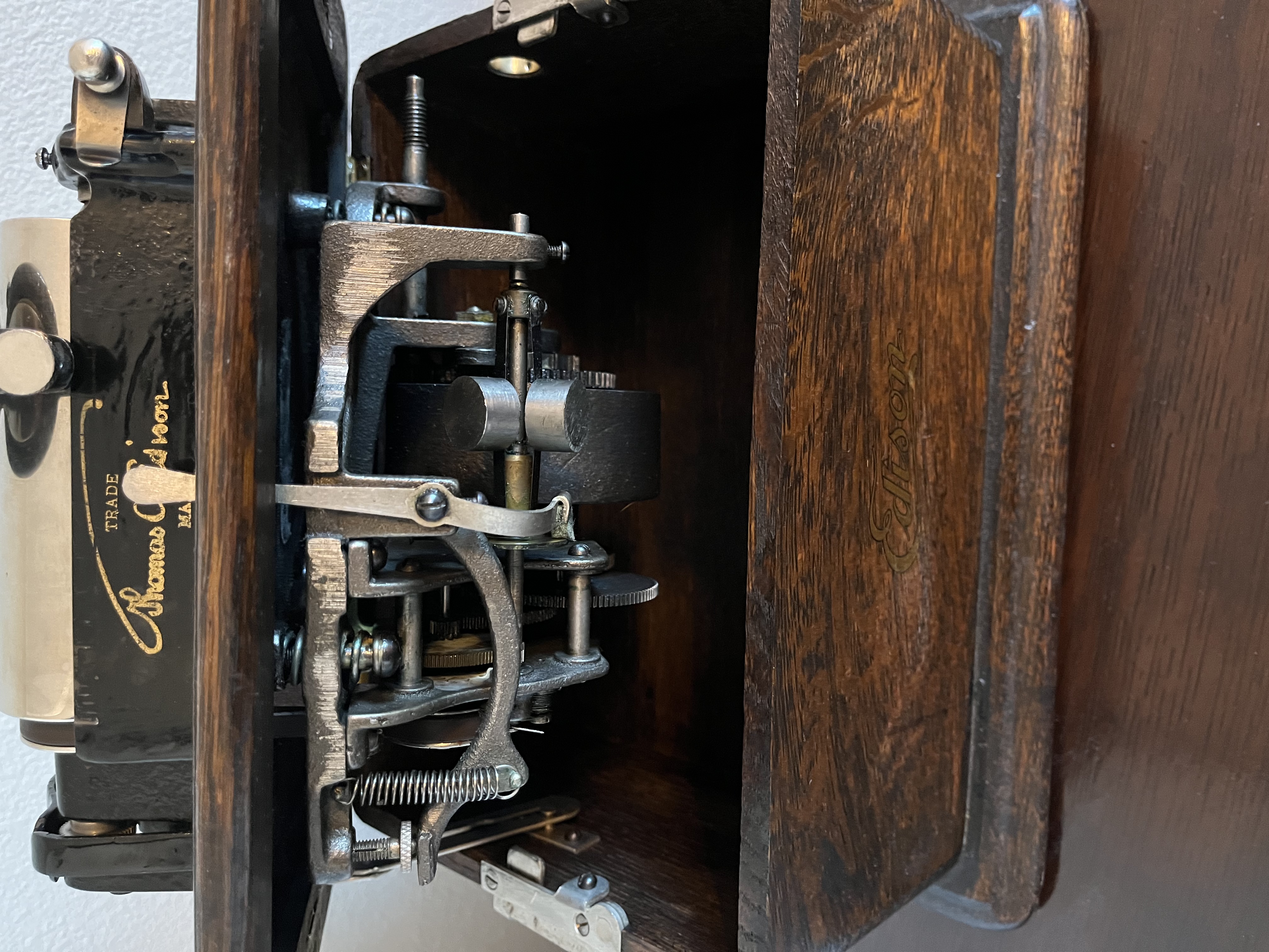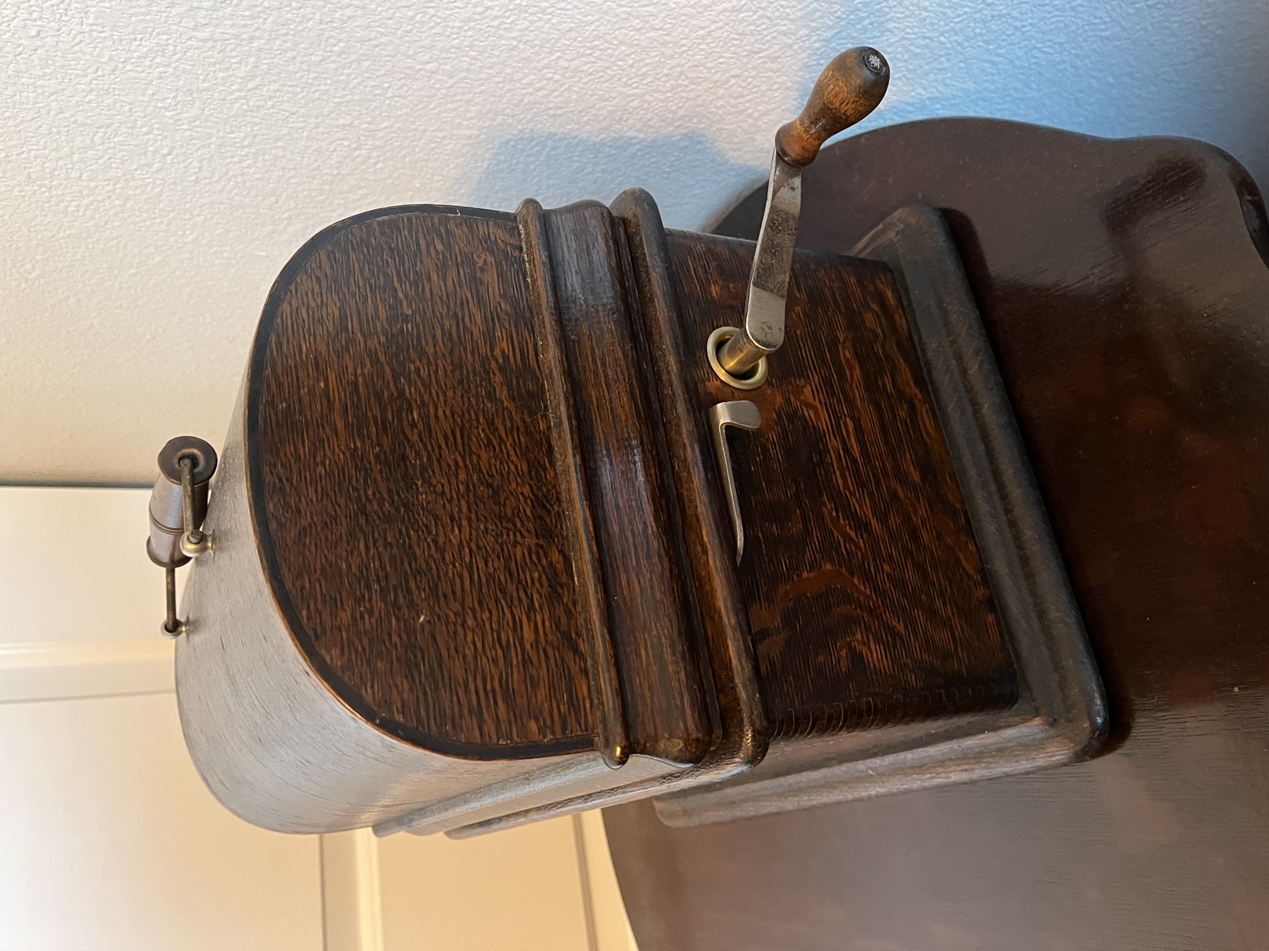 Up for sale is a really nice and clean all original standard model b. Comes with a model c reproducer and and a reproduction witches hat horn. The wood is in great shape and the original finish is very nice. The original bed plate paint is still shiny with most of the pin striping. It winds up and plays great. Serial number 398019. $650 shipped within the United States.