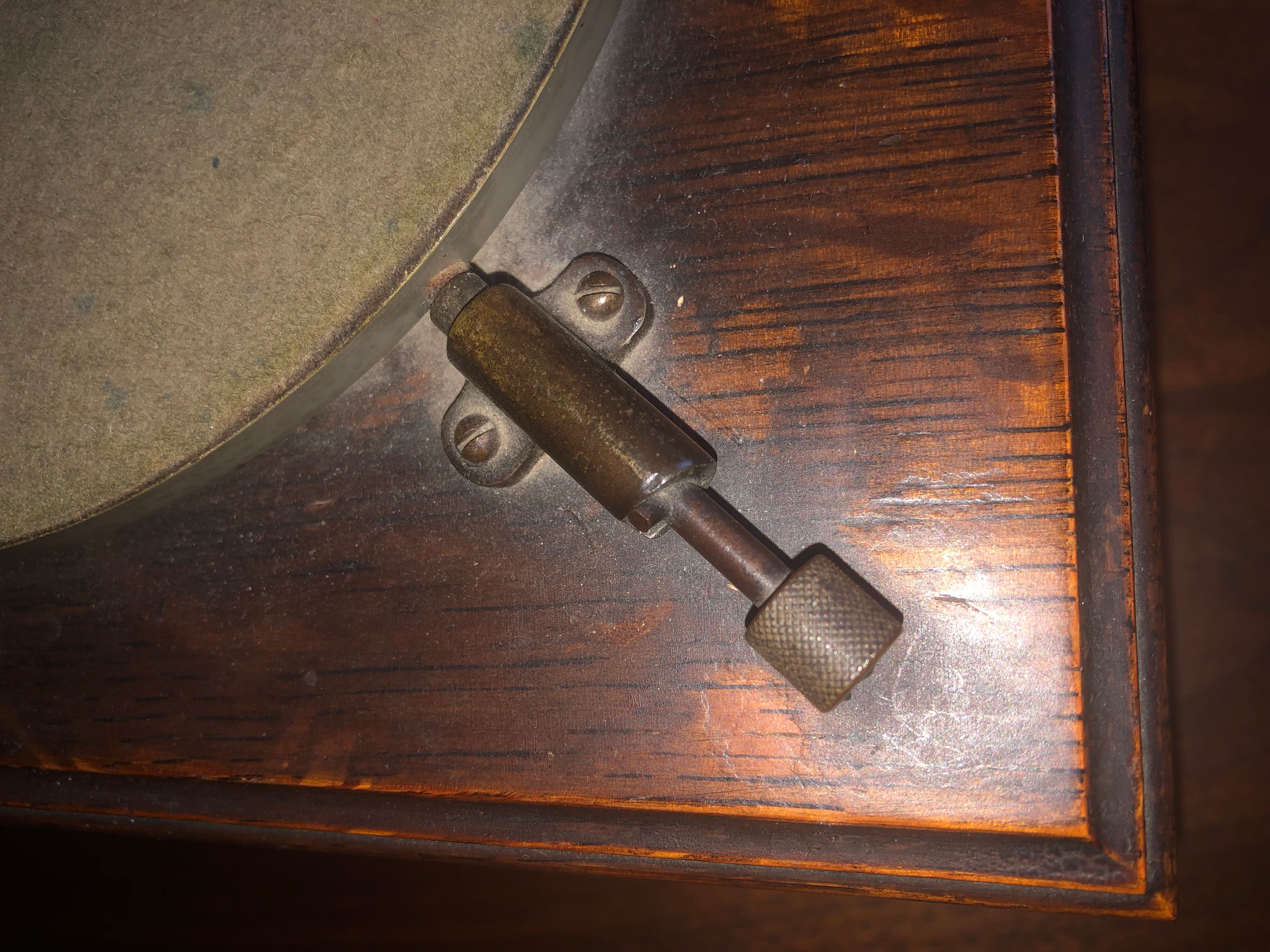 Just to clarify, this transitional brake was meant to accommodate the 10 inch records. The 8 inch records didn't appear until May 1906; long after this transitional brake had disappeared. I doubt if this transitional brake was still around for the 14 inch and 12 inch discs.