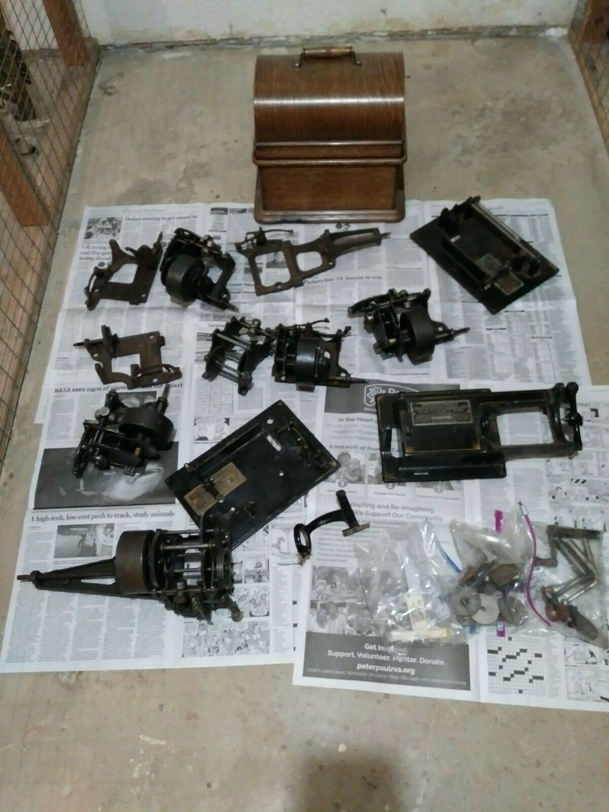 Edison cylinder phonograph parts. Motors, baseplates, etc. for Standards and Homes and an empty case for a Standard. The first photo shows everything. Parts are in generally good condition and motors run as far as I can tell. All useful items for fixing or rebuilding. (I have become interested in Tinfoil phonographs) Note: the total weight of these items is roughly 65lbs plus the bulkiness of the Edison Standard case. UPS will be $85.00 (or local pickup) I live in Virginia so...shipping from east to far west US is much more than $85.00 for a larger 65LB package. I will eat the difference in cost. If you live say in North Carolina, I will REFUND THE DIFFERENCE if there is one, after I have sent the package and know the exact shipping cost. Would like to find these parts a useful home. Many thanks!
