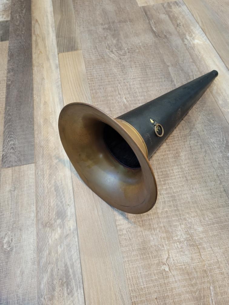 here is a really nice and straight 14" horn with a table crane hanger. It has the PAT APLIED FOR stamped in it. This is a rather difficult horn to find as opposed to the normal 14" B&B horn as you don't see them that often with the table crane ring. Shipping will be 20.00 to US address only. First to post SOLD gets it. 175.00
