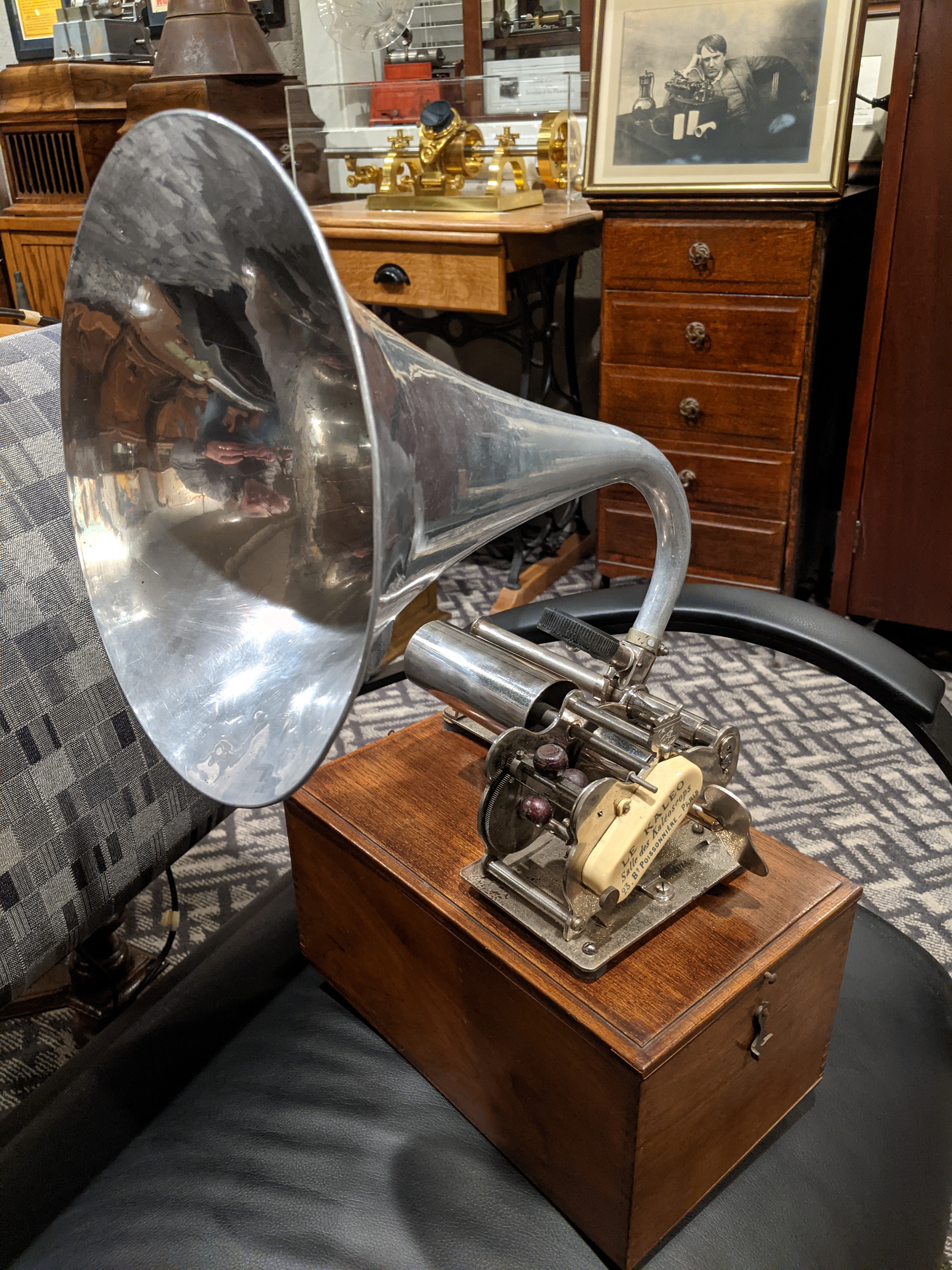 My plan was to buy this machine for the horn (I have been looking for a "hunting horn" for a number of years) and resell or place the machine into storage. But when it arrived I was quite surprised by the condition and play ability. It is just a European Columbia B knock off but with the interesting dealer gear cover (never seen anything like that before) and the overall condition I think it will stay in the collection. And, if it was good enough for Howard Hazelcorn to include in his collection it certainly is good enough for mine!