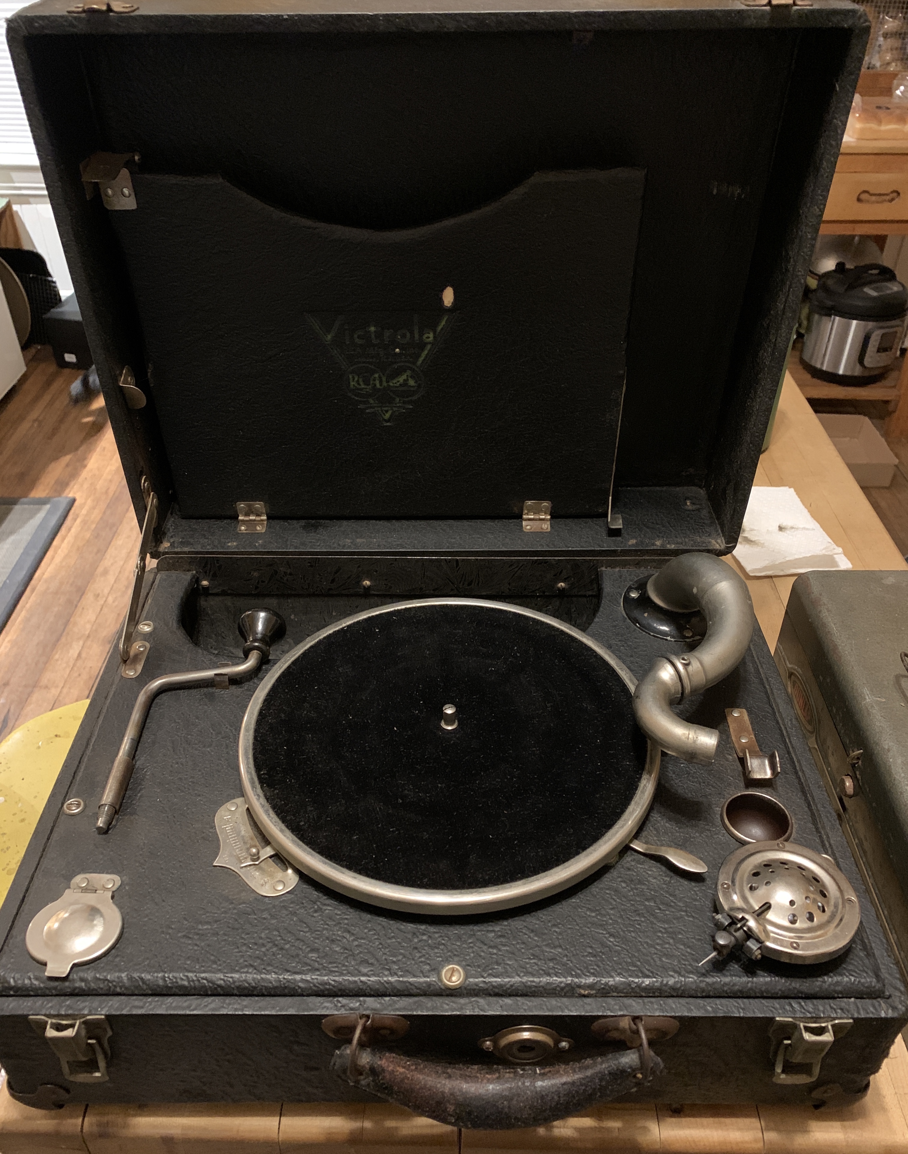 I figured this machine would be worth the $20 because it came with a bunch of HMV Canadian 78s (which were in rougher shape than I had hoped) and because it appears that this machine was significant in 2 ways; 1: there weren't very many of them made, only around 6,600 and 2: it seems to be the missing link between the dramatic shift from Victor's beautiful portables to RCA's terrible, mass produced machines. Imagine something being significant because it's terrible?