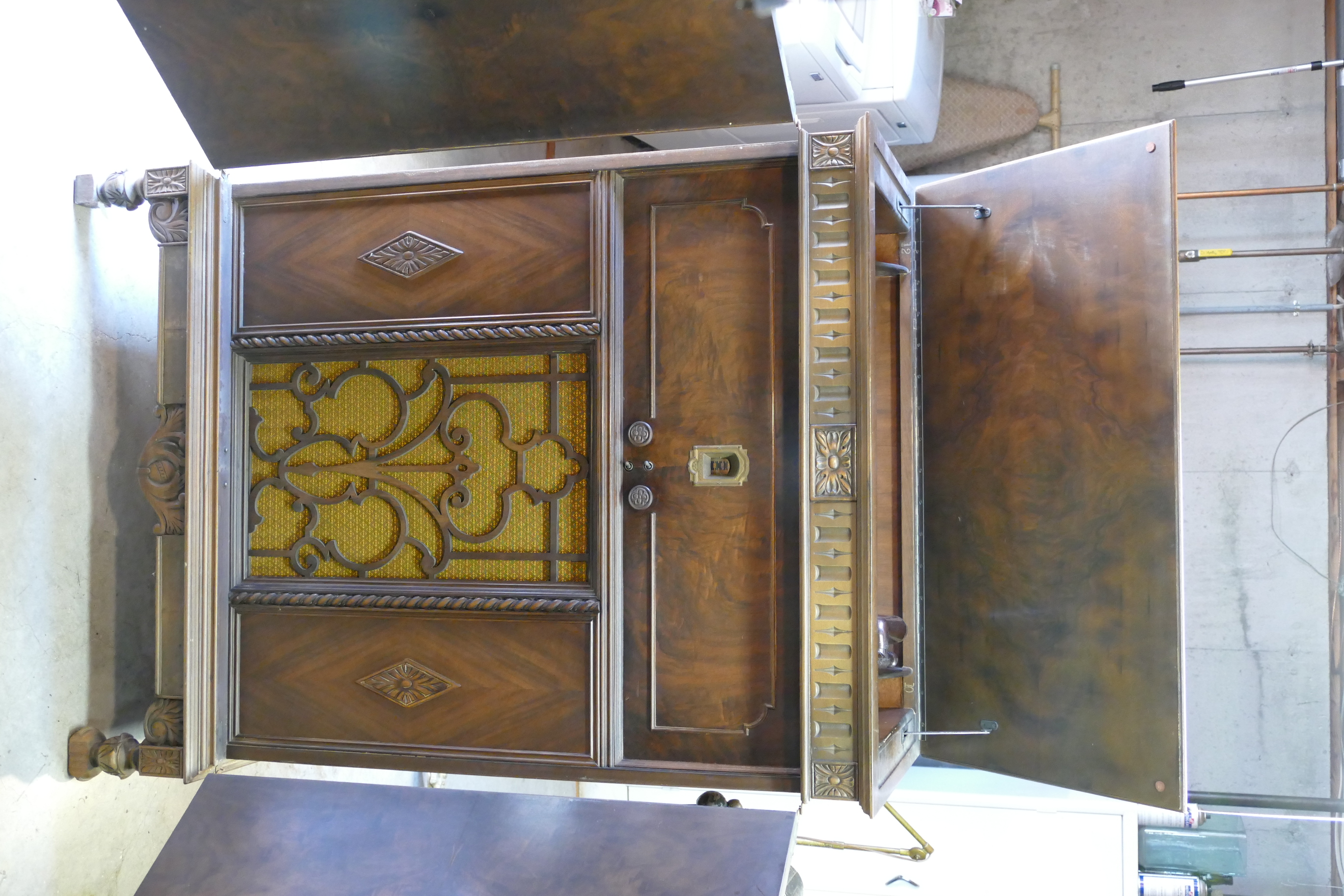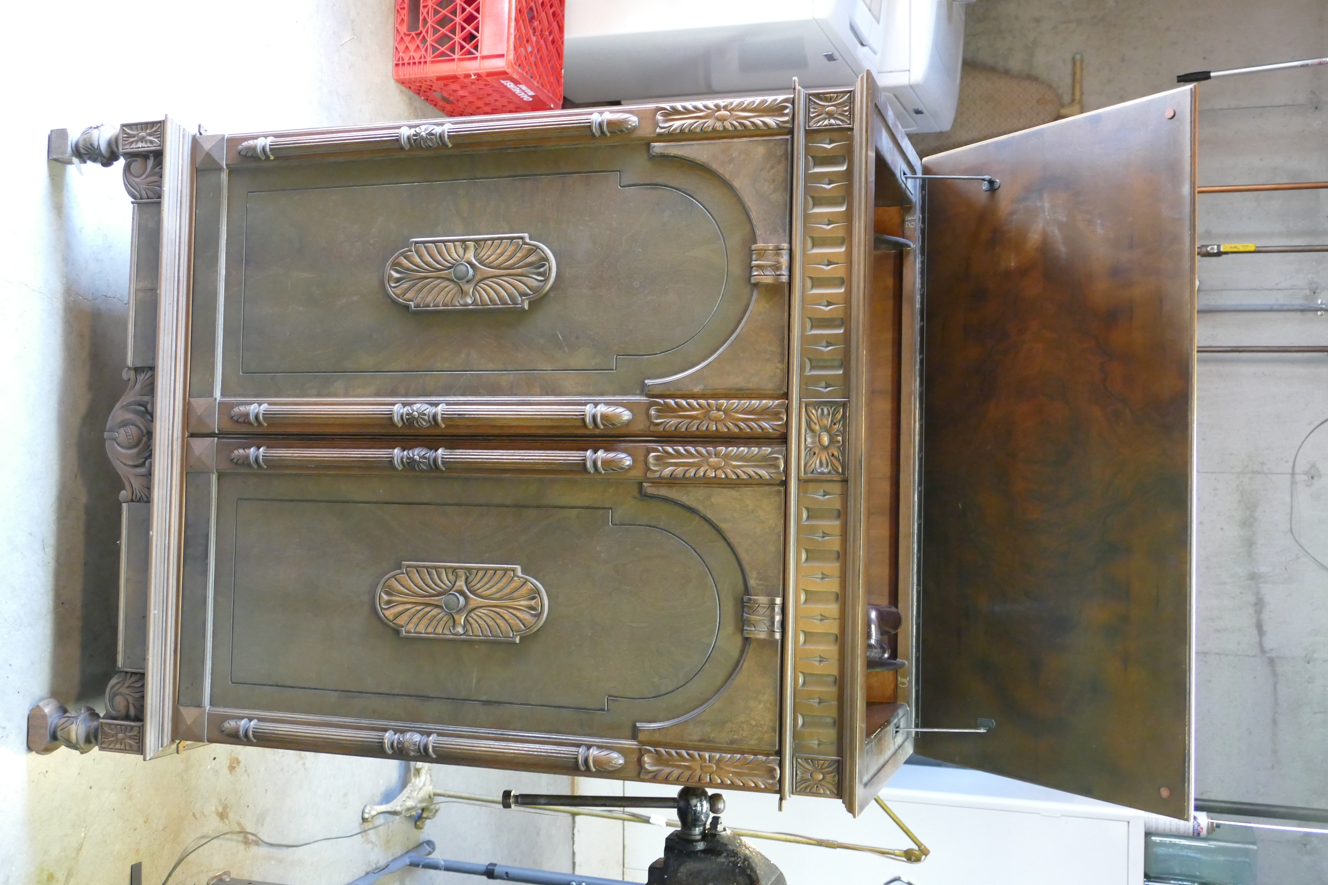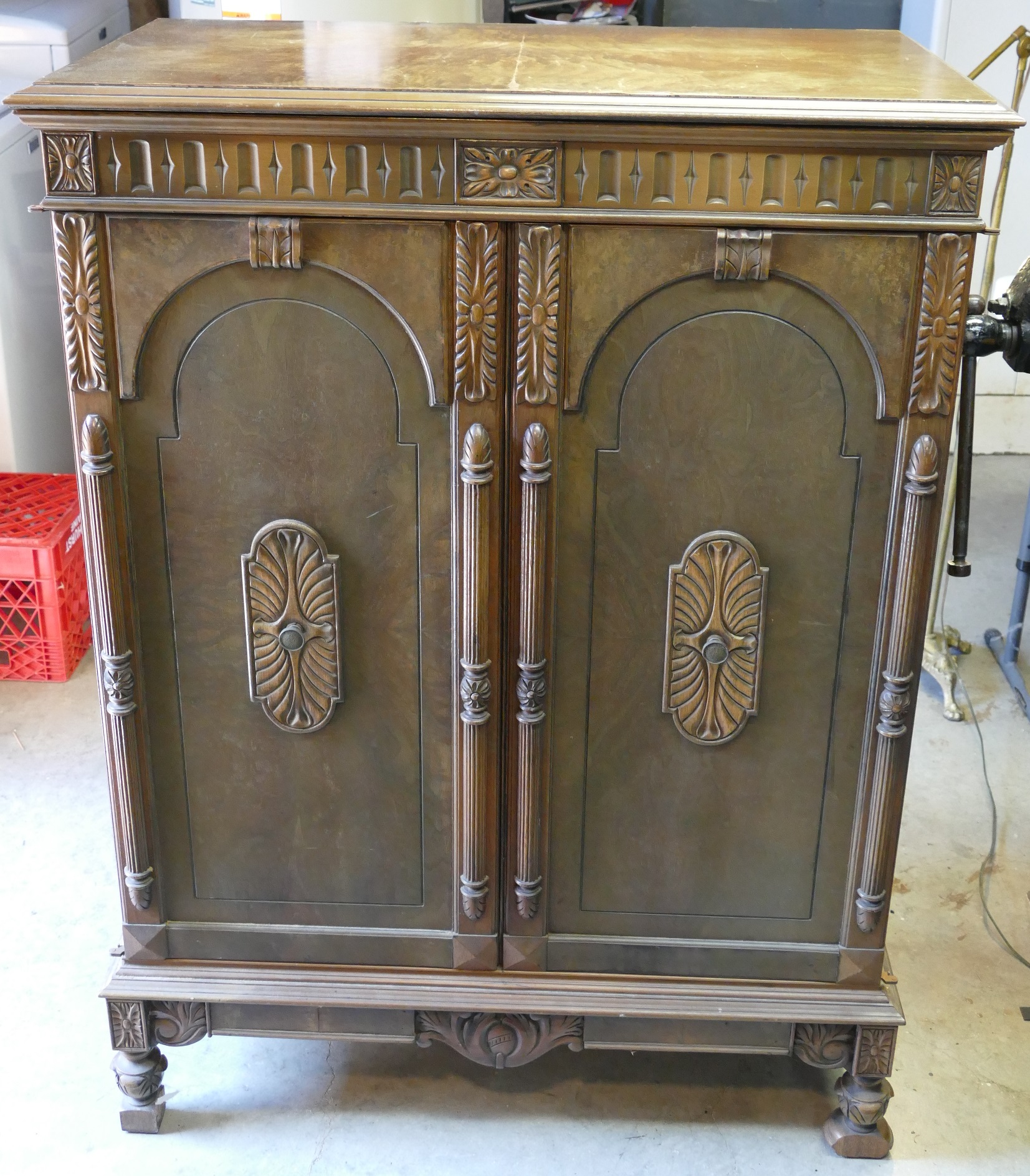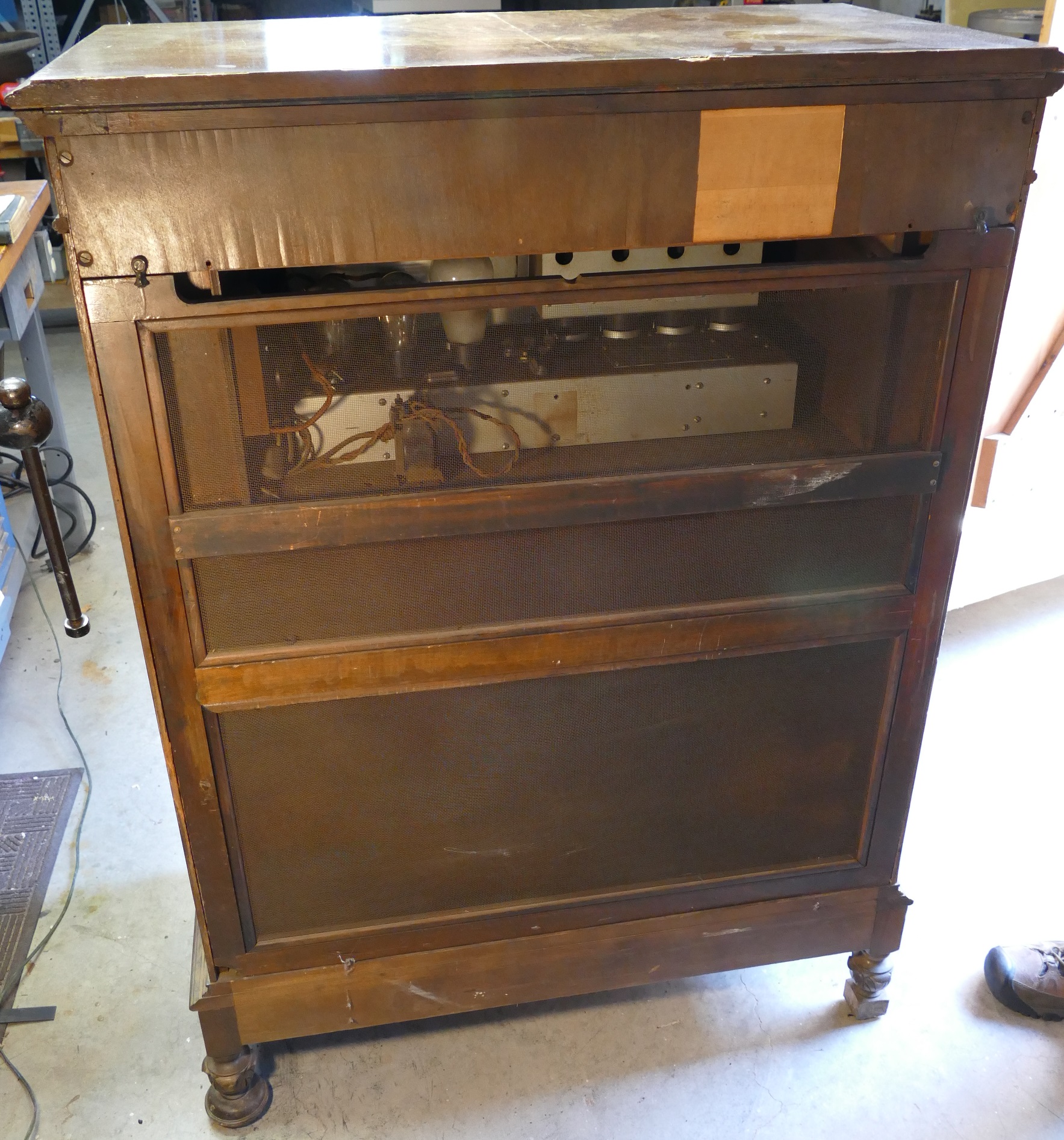 In response to a PM I just received, the cabinet is all-original, and has not been refinished.