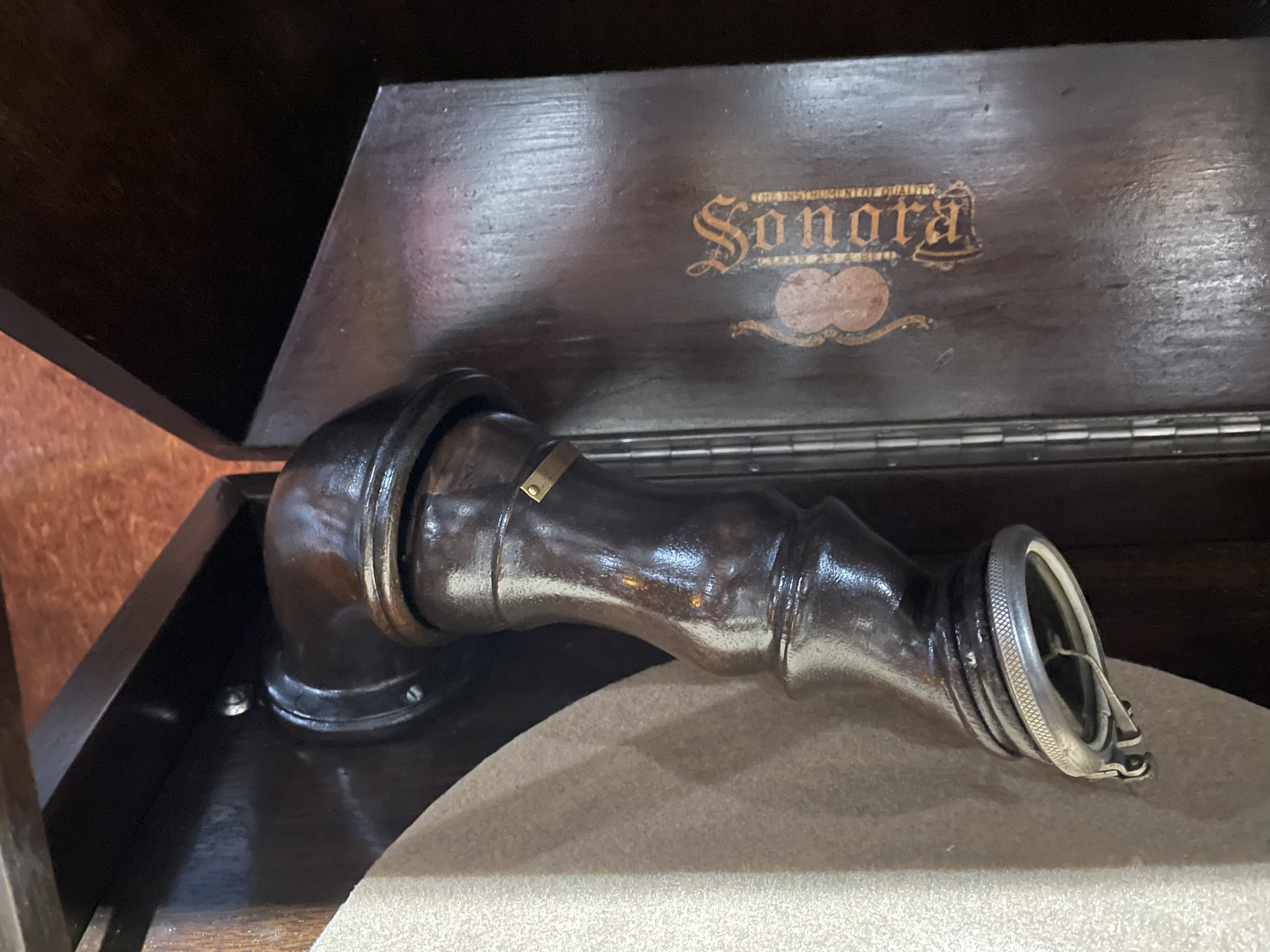 Just wondering if someone could give me some information about my Sonora phonograph? Such as the model number and such. It is walnut finished cabinet with the wooden tone arm. Thanks! I appreciate it! John