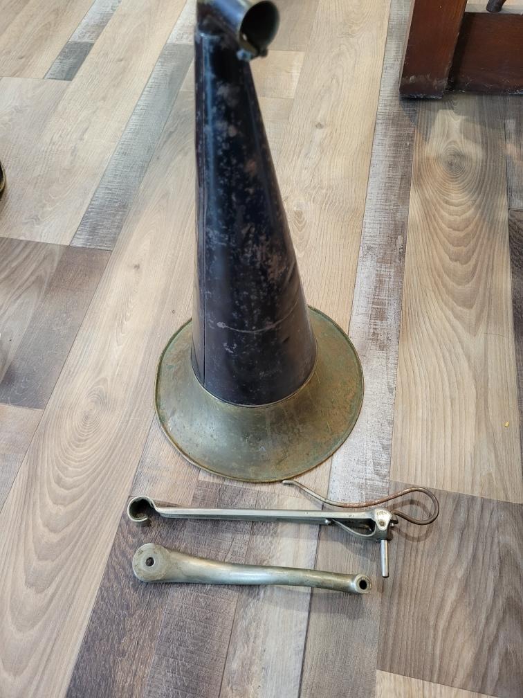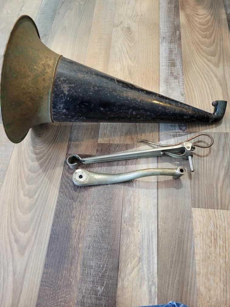 Here is a hard to find Zonophone upper and lower arms and cradle. The lower arm does have a slight crack at the base of where the traveling arm pin goes through. This is not noticeable, just need to mention it. I have decided to sell some of my spare parts. If you have an interest, please PM me only. I may have another horn. Black one is sold. I do not do emails.