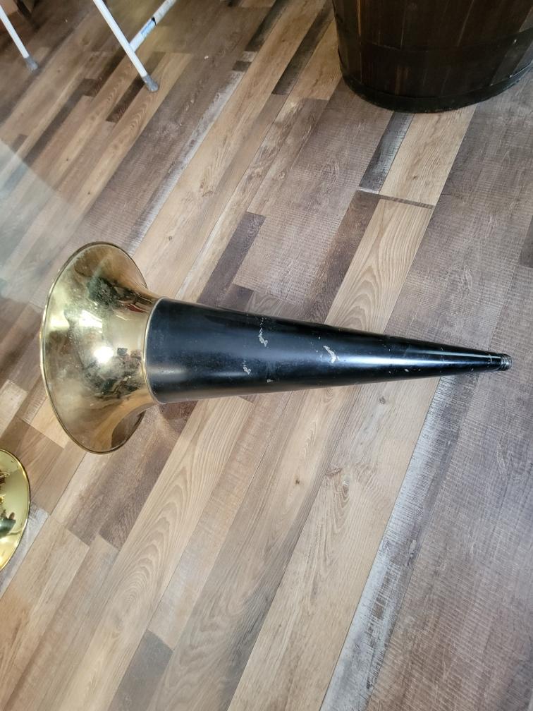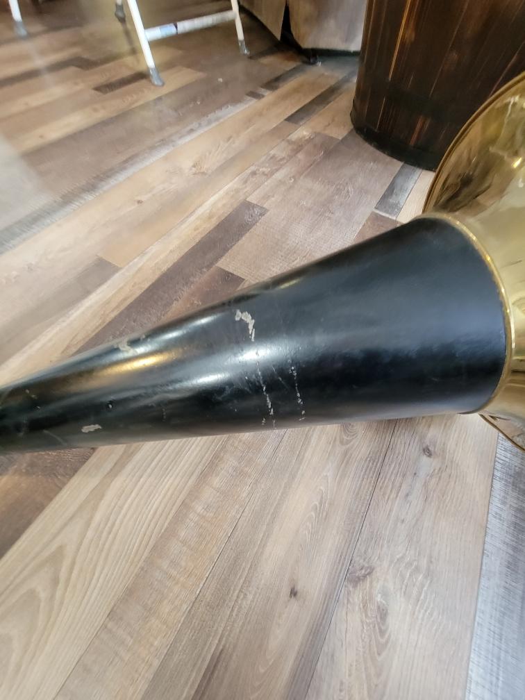 Here is a nice shape 27" Victor front mount horn. It is very straight. This would work on the Victor M and MS with the extended arms or a Victor M or MS rigid arm machine. There wasn't any sign of a decal which leads me to believe it is for a rigid arm as they are pre dog. 275.00+ 75.00 shipping.