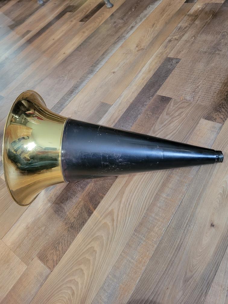 Here is a 19" Victor front mount 19" horn. It will also work with the rigid arm machines. There is an original decal on it. The horn is very straight. 200.00 + 50.00 shipping