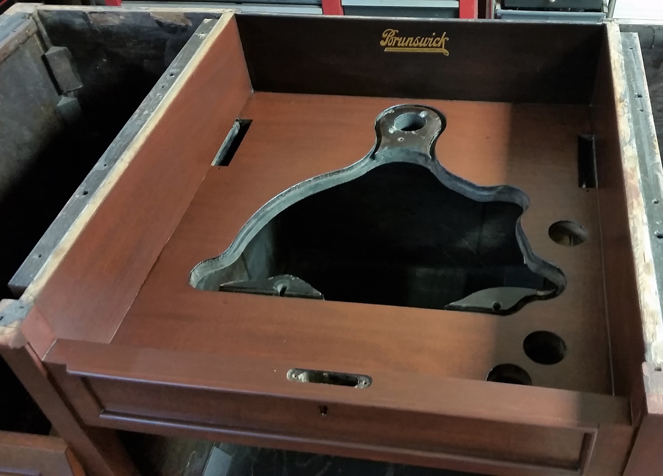 Your Brunswick is turning out really nice. What kind of grain filler are you using, or are you trying to level it up with lacquer? Brunswick really made nice cabinets, and when the spray lacquers came out in 1924, they really were good with those finishes.