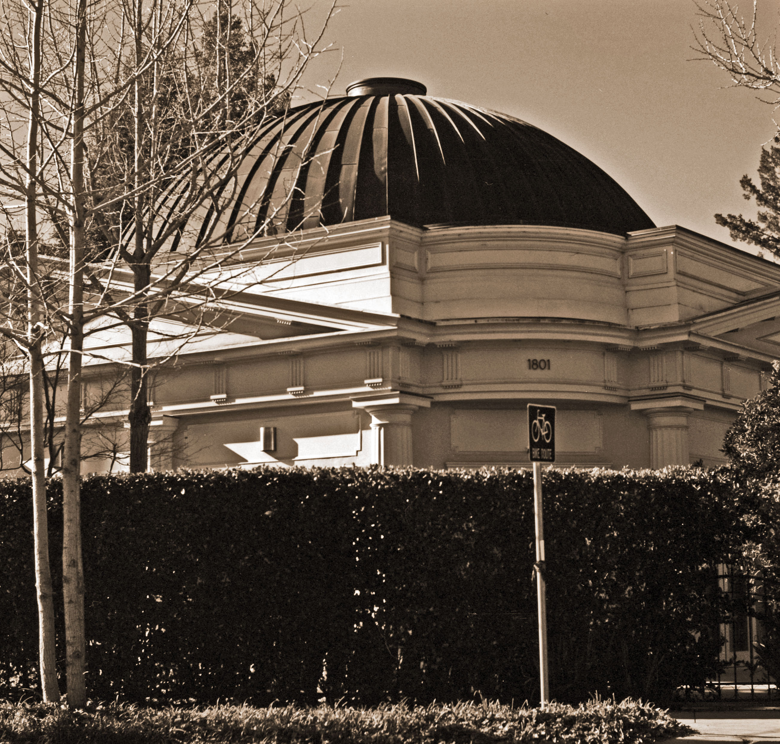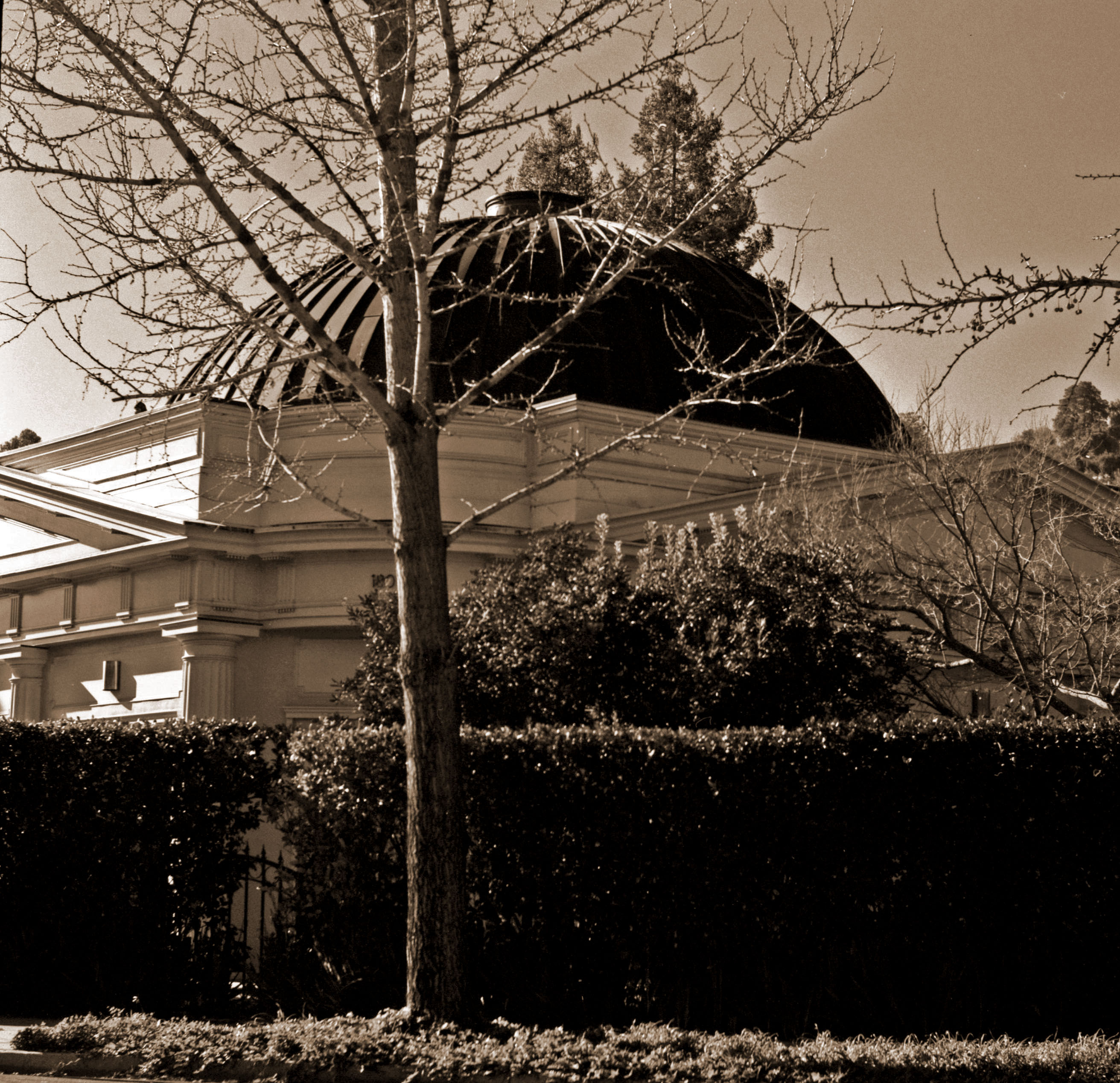 I hadn't been back that way in years. This morning I decided to take one of my early cameras, a 1904 Folding Pocket Kodak, and shoot some pictures of it. The restoration has been completed, aside from replacing the statues, but unfortunately it is securely locked up behind gates, and surrounded by very high hedges. It made it hard to get good pictures. Looking through the gates it is easy to see the various design details that appear in contemporary photos. I don't know if it's under the same ownership as 20 years ago, or if it has changed hands since. But it is still something of a well-kept secret -- there's no signage to indicate its unique history.