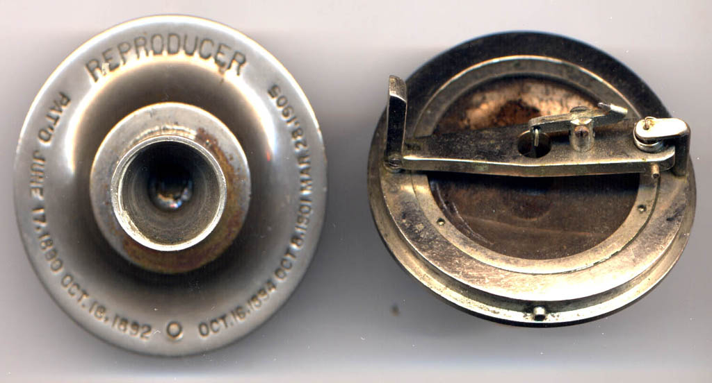 They have a small font REPRODUCER stamp and 4 patent dates and no serial number on the body. The ones I recently found are spring loaded but the the spring is located at the front. The body of this reproducer is the same as the one used on the weighted version, the text size and patent dates are also the same.