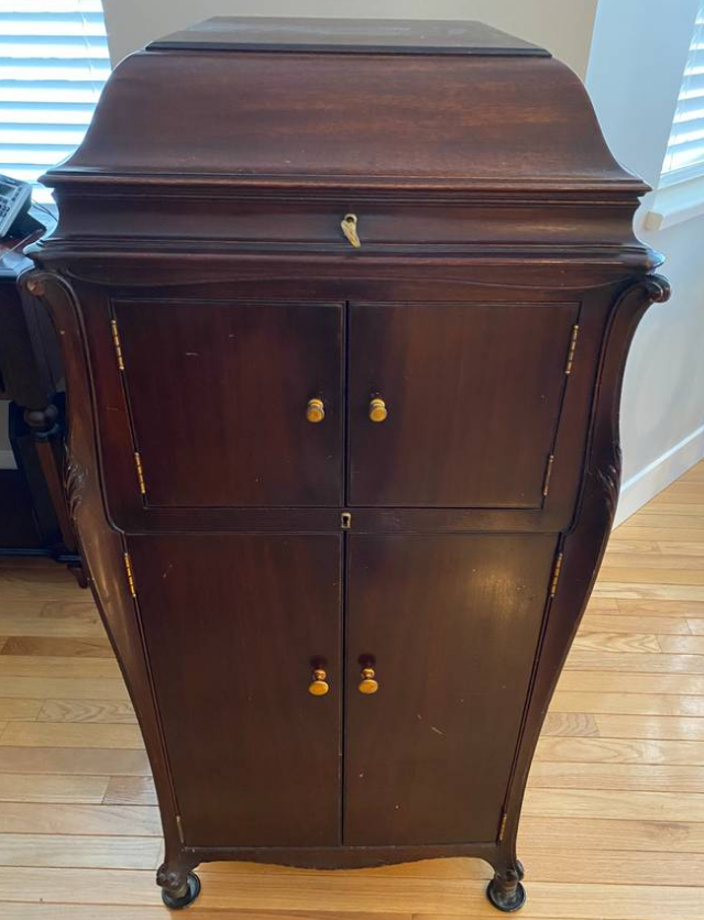 Now this one is interesting. It is out of my current still somewhat casual enthusiast budget, but perhaps its OBO asking price of $500 CDN - approx $395 US - is reasonable, especially considering the extras, a key, records, the tin, and the dog.