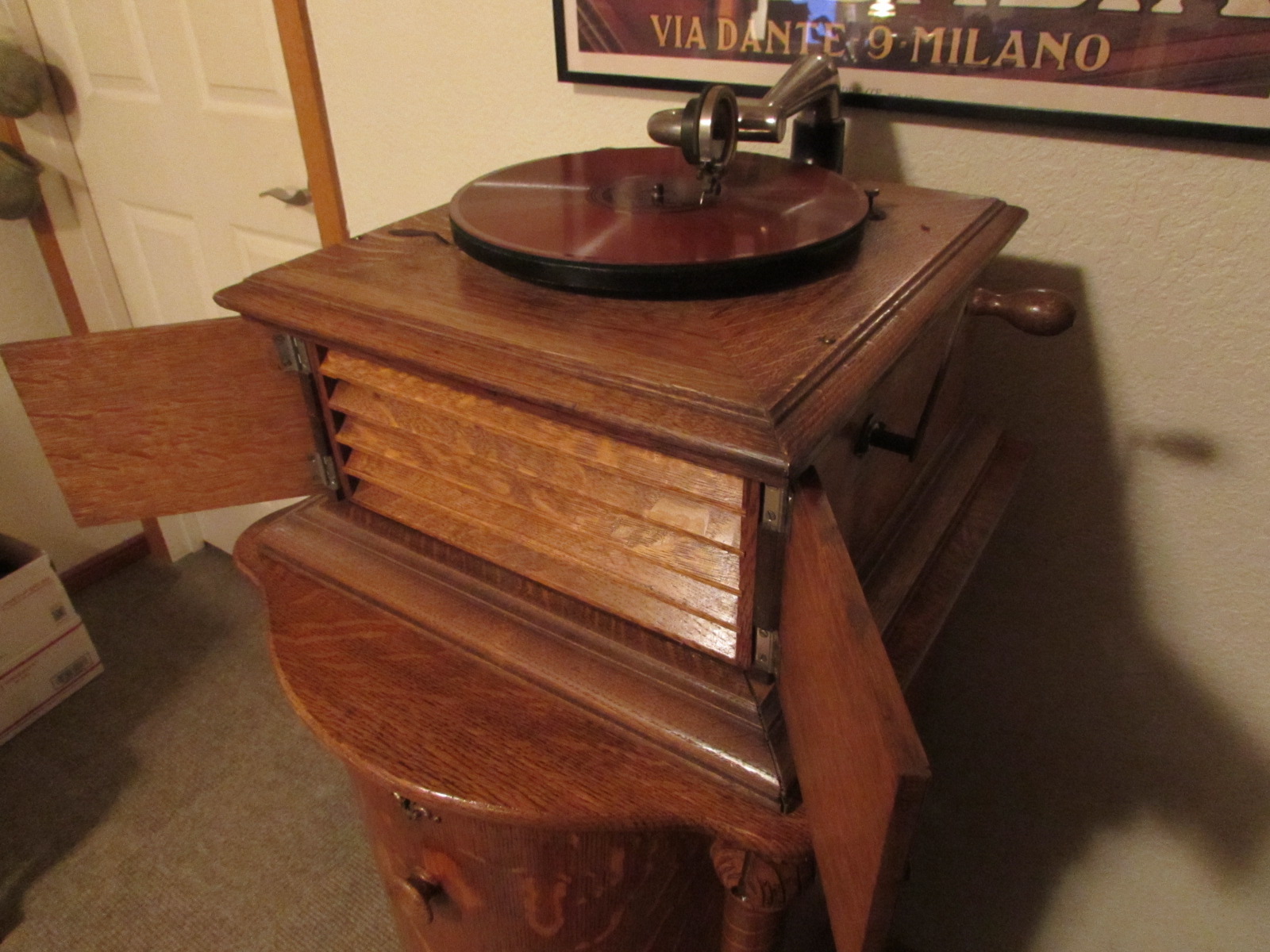 Asking $900 with pickup only and I can hold this as long as you need for that and I'm located right on Hwy 20 in Evansdale Iowa ...the same road the Union Show was on for many years and a direct route to the new show in Illinois too. I'm retired so stop by anytime if you want and while you're here you can shop around for quite a number of other antique phonos, Herzog and Salter cabinets and stuff like that.