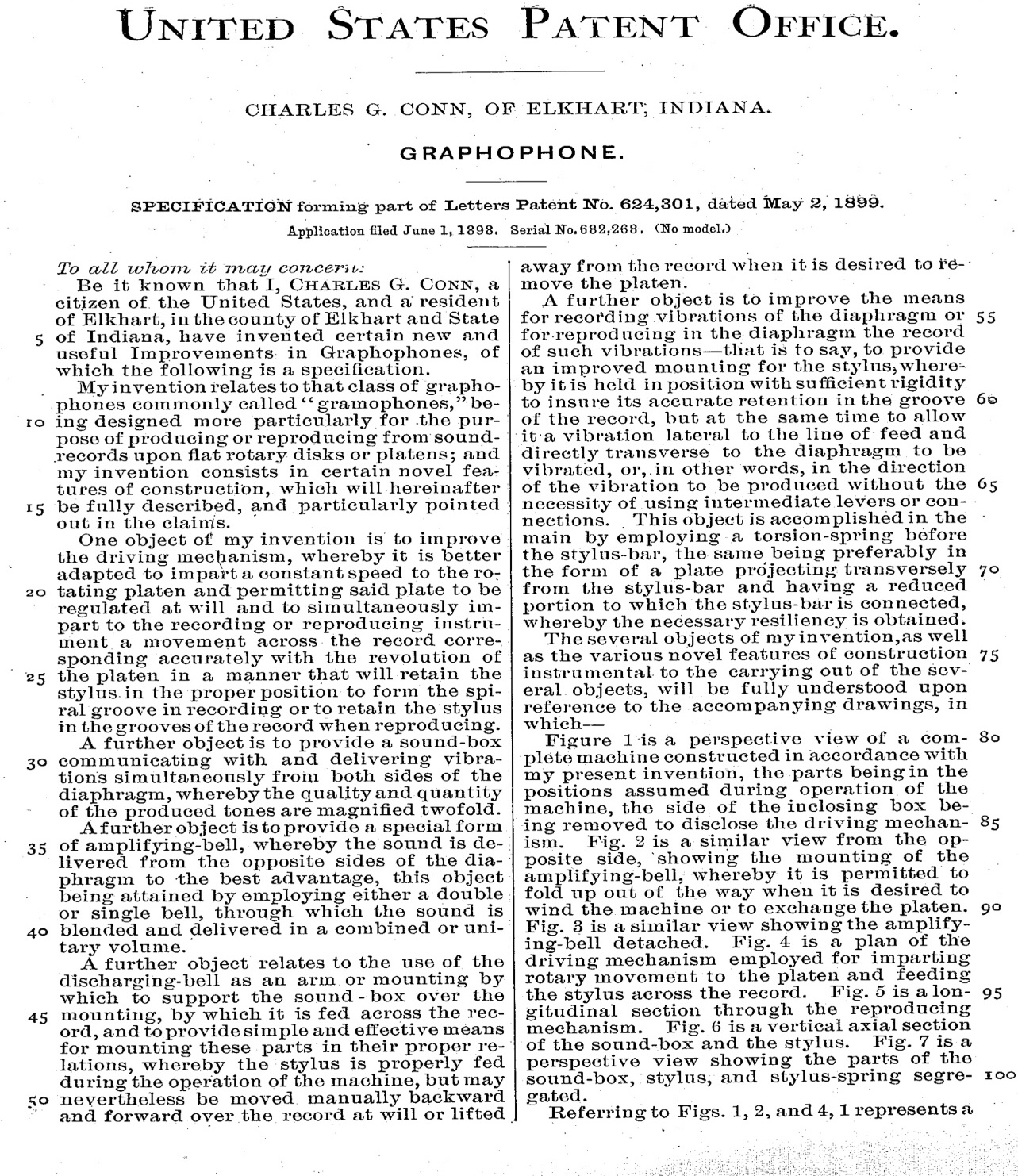 A rare machine indeed - sad to say, the patented version was not actually made in all its glorious details, as the original intent was to provide a mechanical feed-pivot support-gearing across the face of the 7" disc. The manufactured oak cabinet, when found, always had a small brass plug in the corner to act as a "filler" since the rotating pivot was not actually installed.