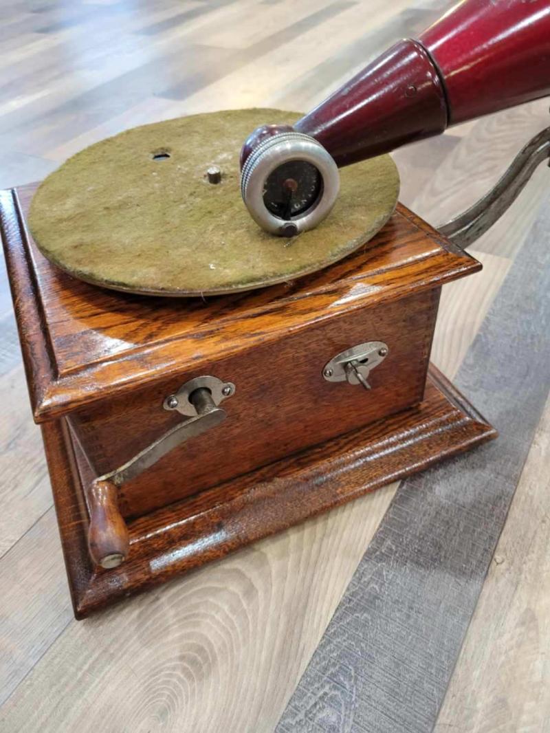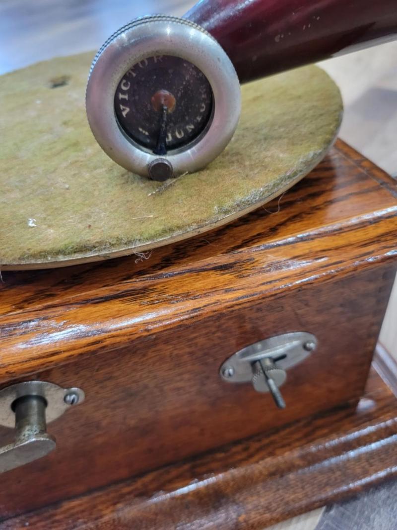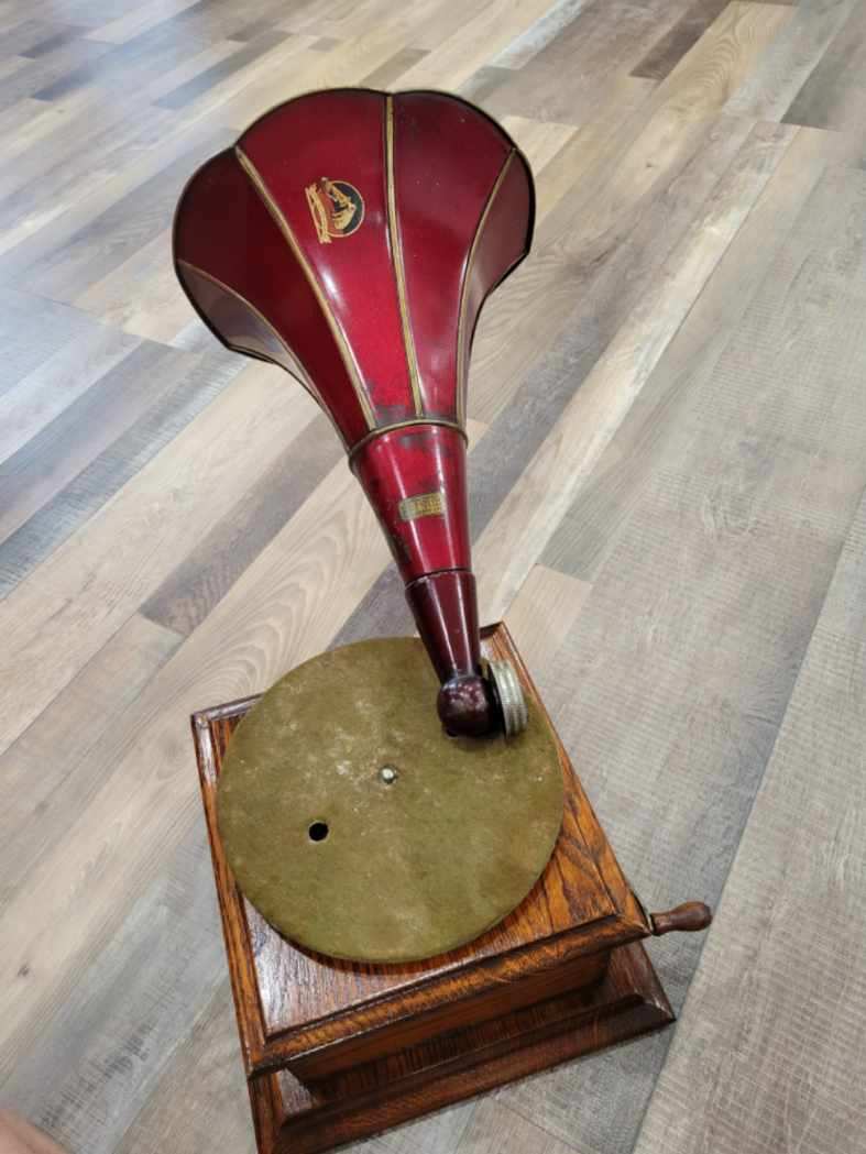 FOR SALE: NICE SHAPE VICTOR JR WITH RED PETAL HORN AND ORIGINAL REPPRODUCER 1600.00 + SHIPPING