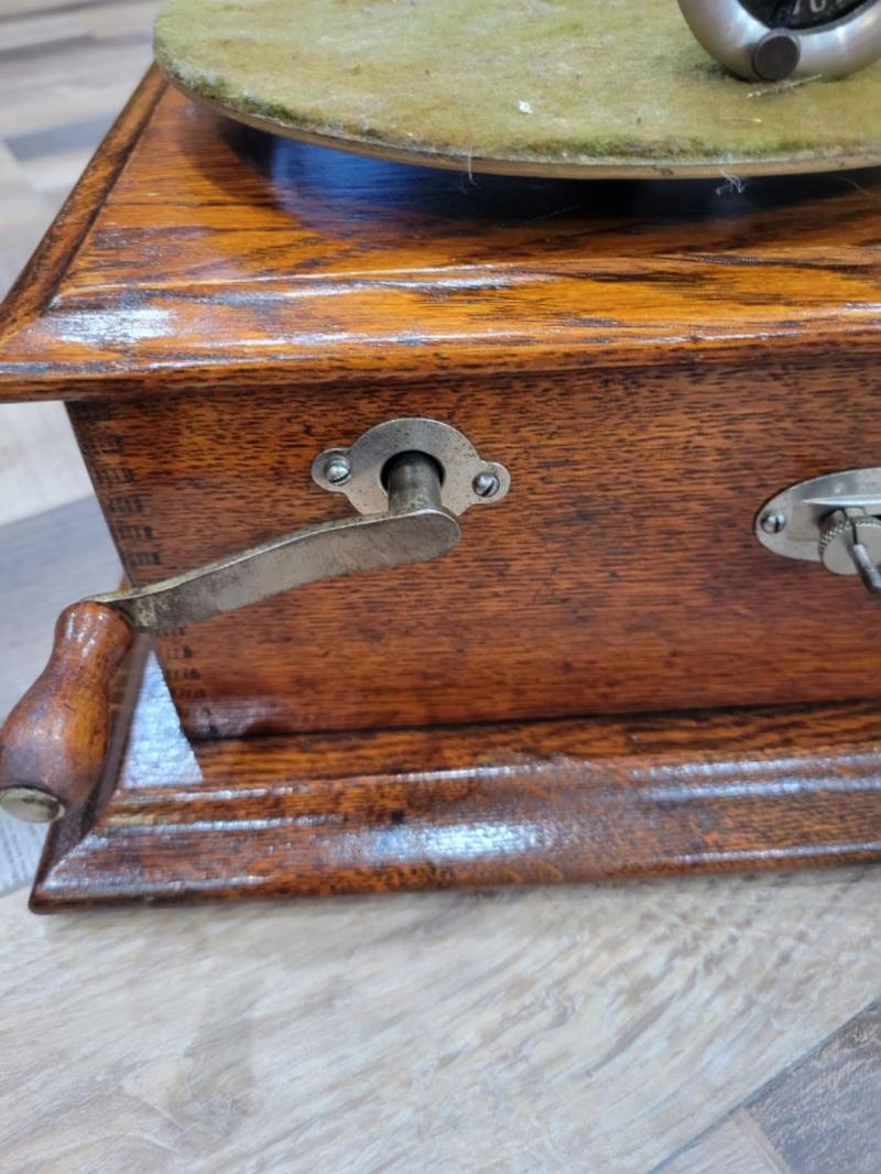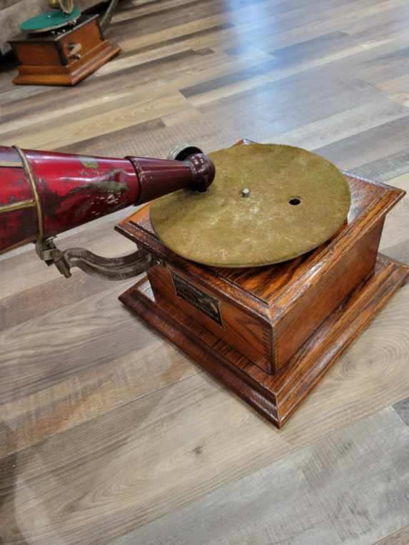 That is one of the nicest red Junior horns I have ever seen. The decal is in great condition also. With the original Junior reproducer, this should sell pretty fast. These used to be around $2,500 in this condition.