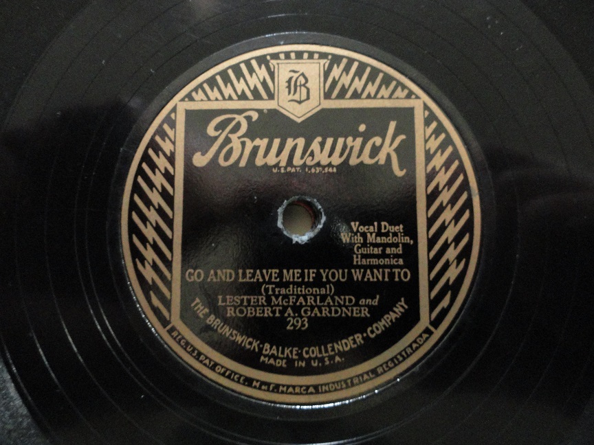 Lester McFarland and Robert A. Gardner - "Go and Leave Me if You Want To"/"Birmingham Jail" Brunswick 293, E-