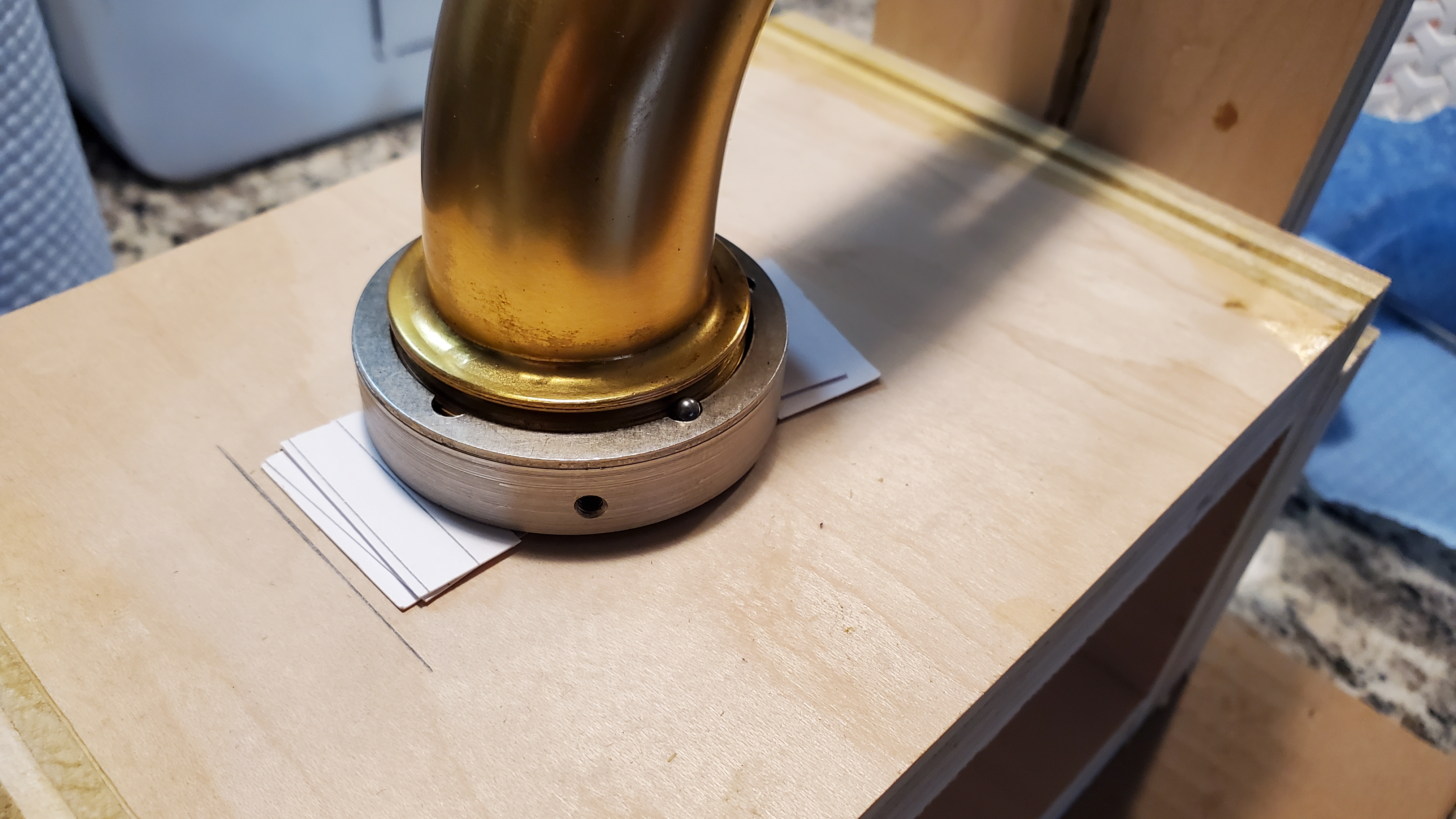 I was going to set up my portable table saw and make sawdust this afternoon and figured that dimension's are what I make them except for the hole for the tonearm. I noticed that you have paper shims under the base. Could I simply use the metal one that covers the felt washer?