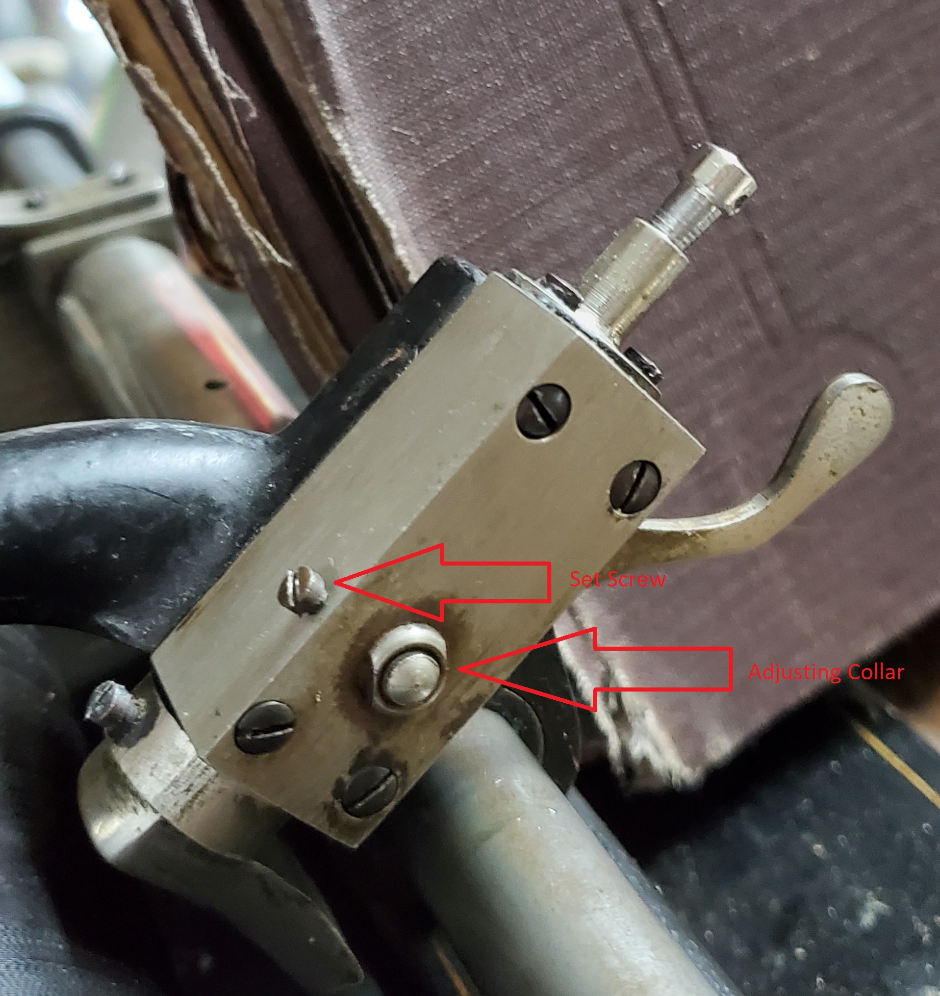 Then the round collar with "wrench flats" can be turned clockwise a bit to tighten. When you get it tight enough to hold the lever the set screw can be retightened.