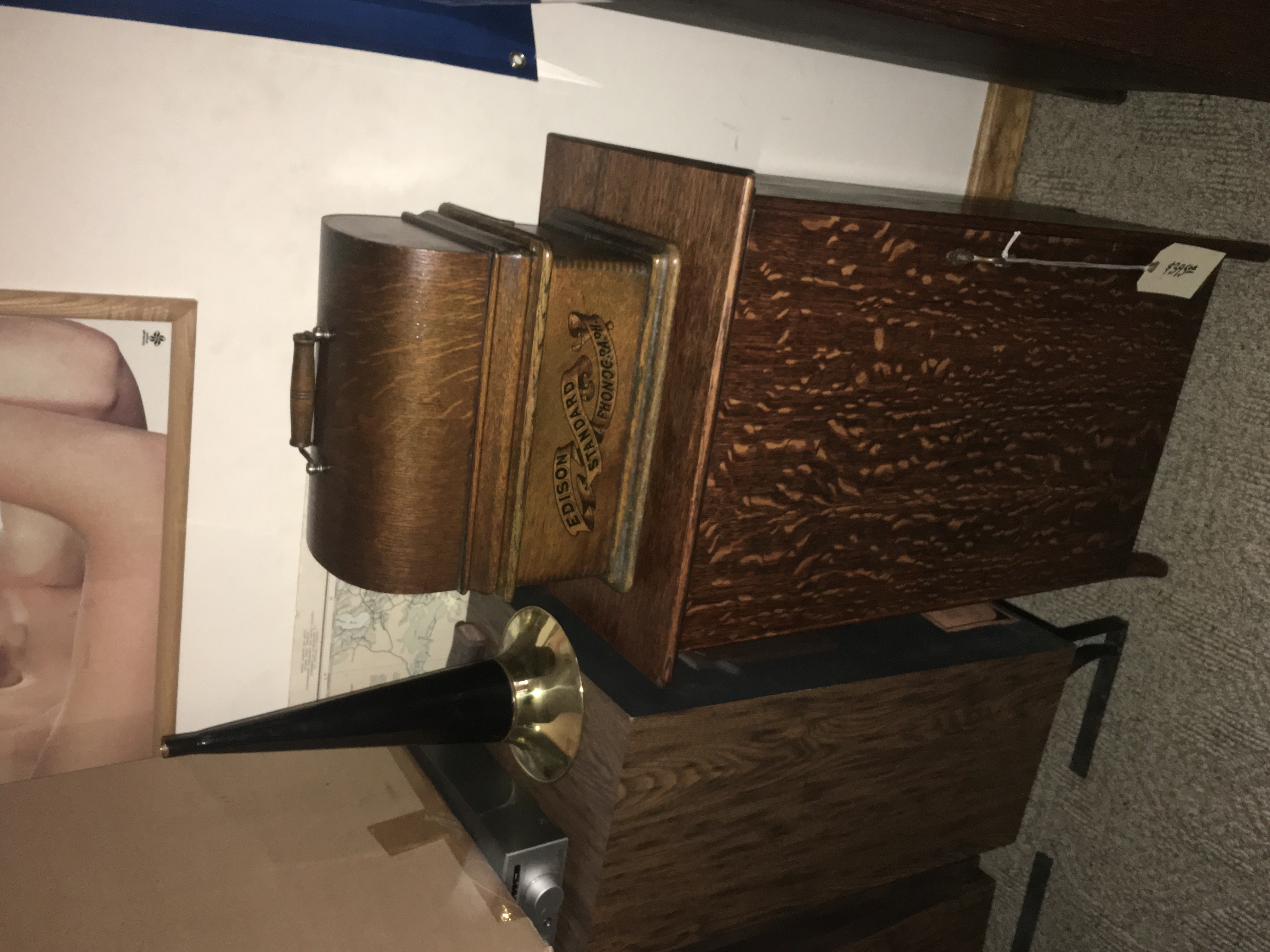 • Nice Edison Standard with original horn and oak cylinder cabinet with pegs $750 SOLD