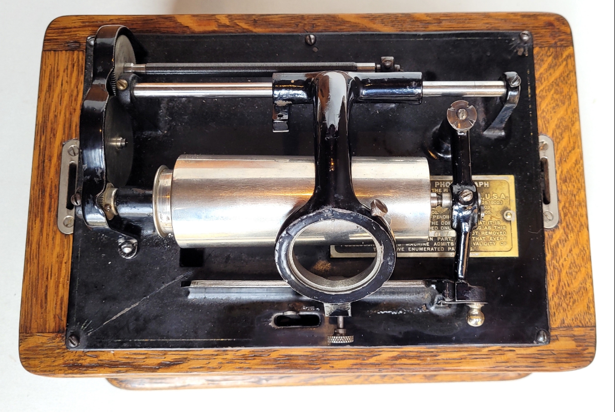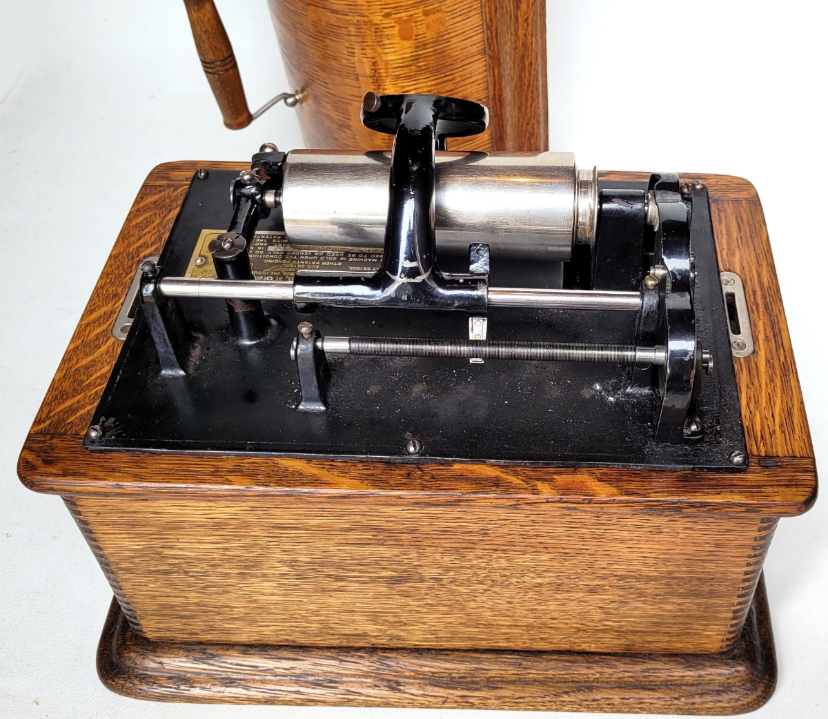 Here is a fairly clean and decent Edison Standard 2-minute B that can be brought to back to life with a new spring, crank and governor. The case and cover are in good, but refinished condition. No reproducer. Selling this machine "as is" for a parts machine or project. If anyone is interested in purchasing, it can be brought to the New Jersey Wayne Show.