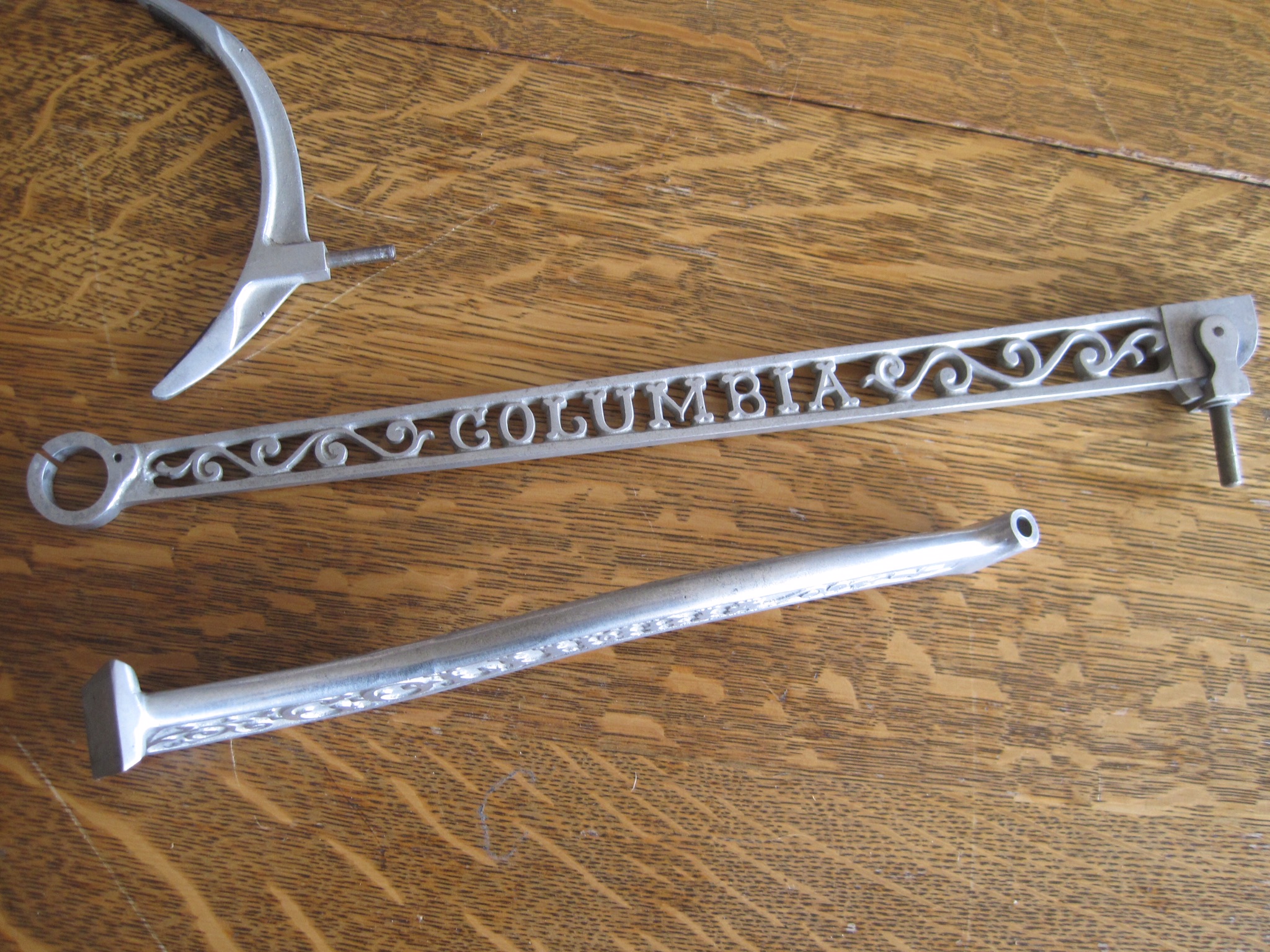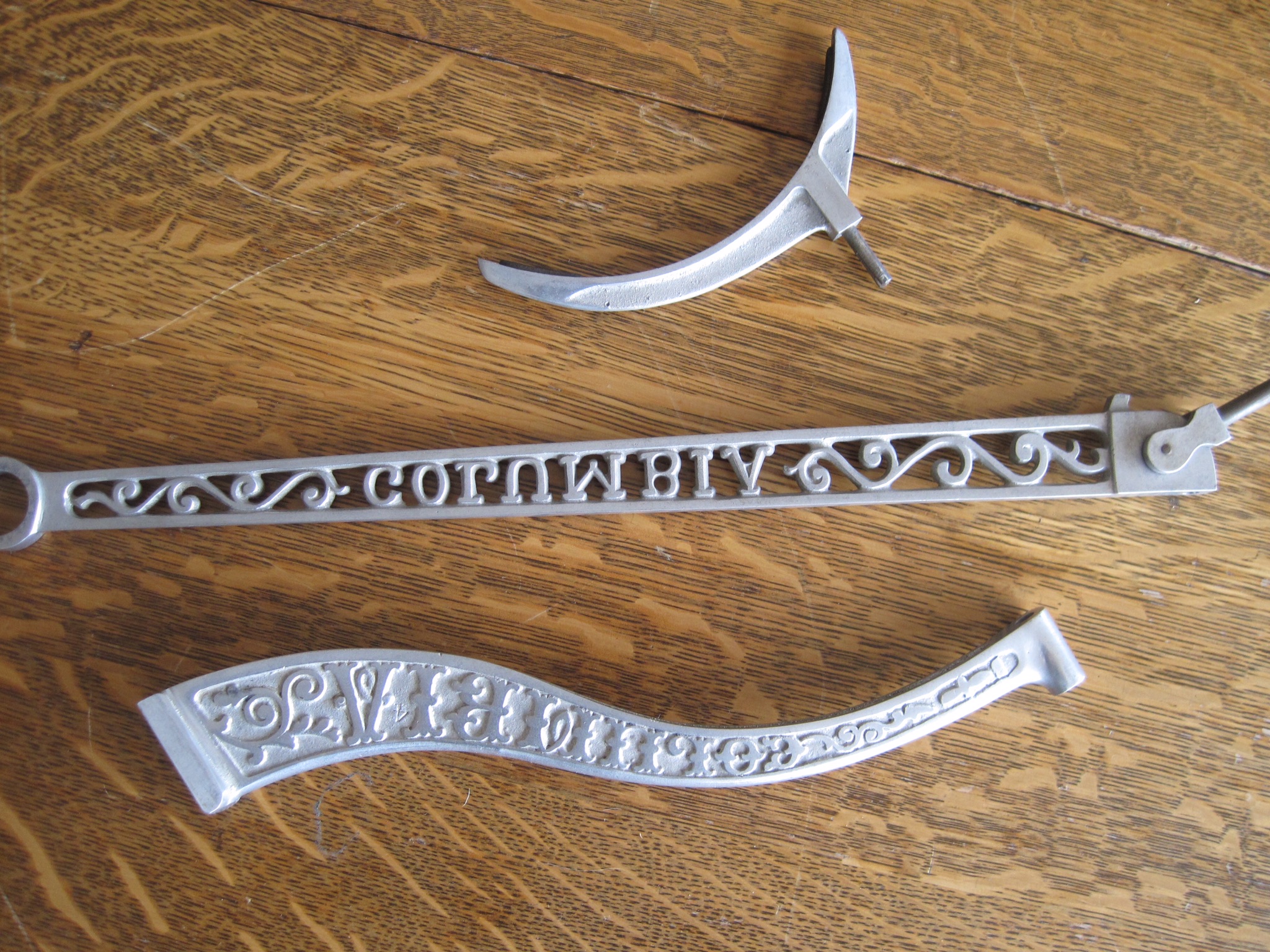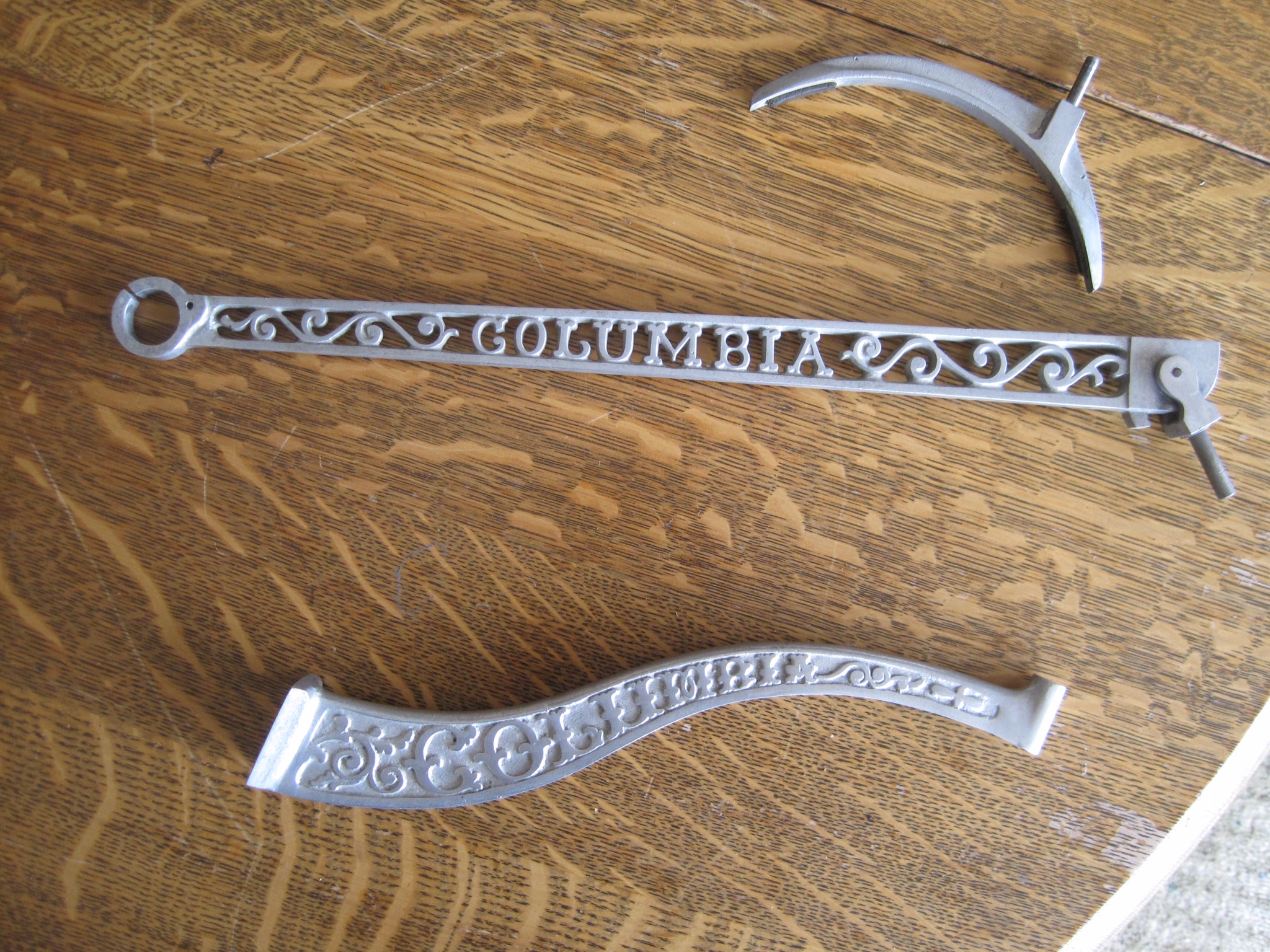 Nice set of latter AH arms with open works on the travel arm and fancy Columbia support casting. Horn cradle fits snug.