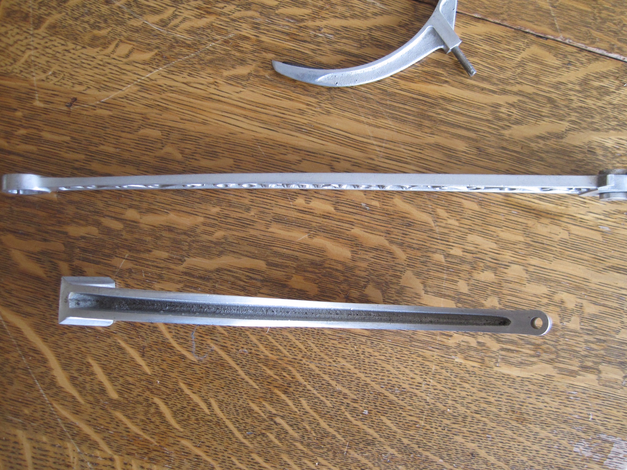 No cracks or any issues, just a nice set of arms. Support arm measures 8.75 from mounting surface to center of pivot pin.