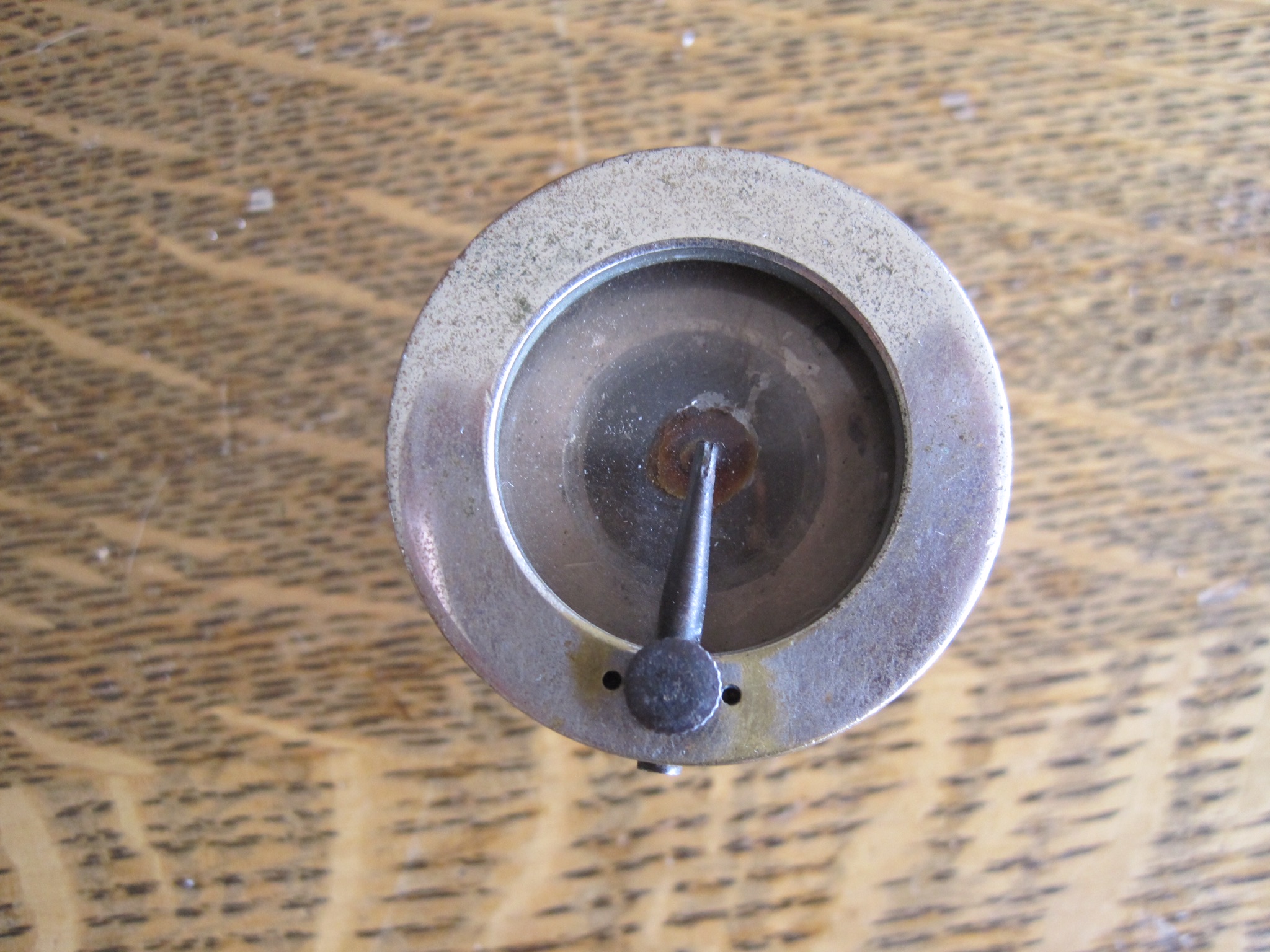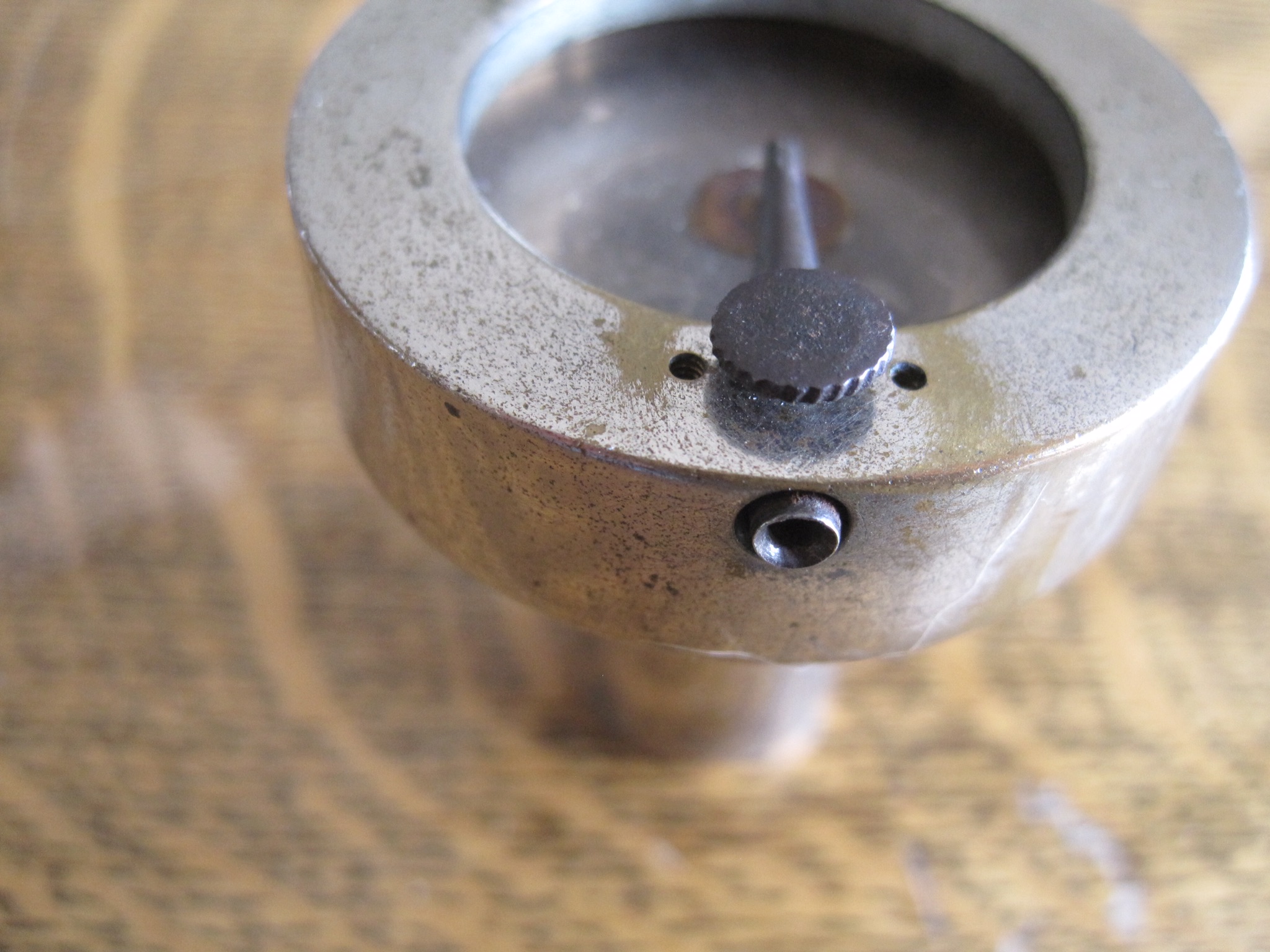 No markings on this early Columbia disc reproducer. Original thumb screw turns freely. Overall very good original plating.