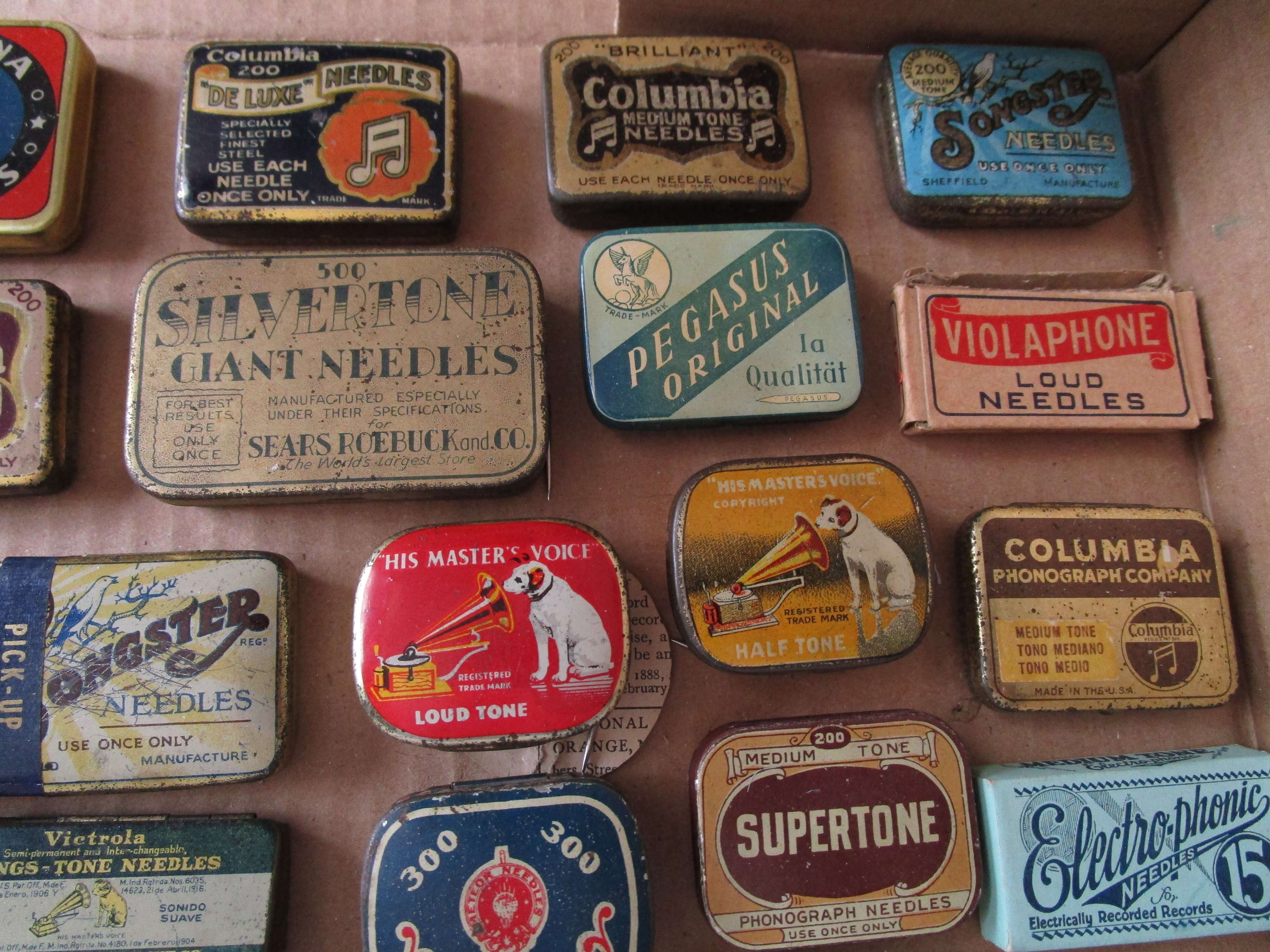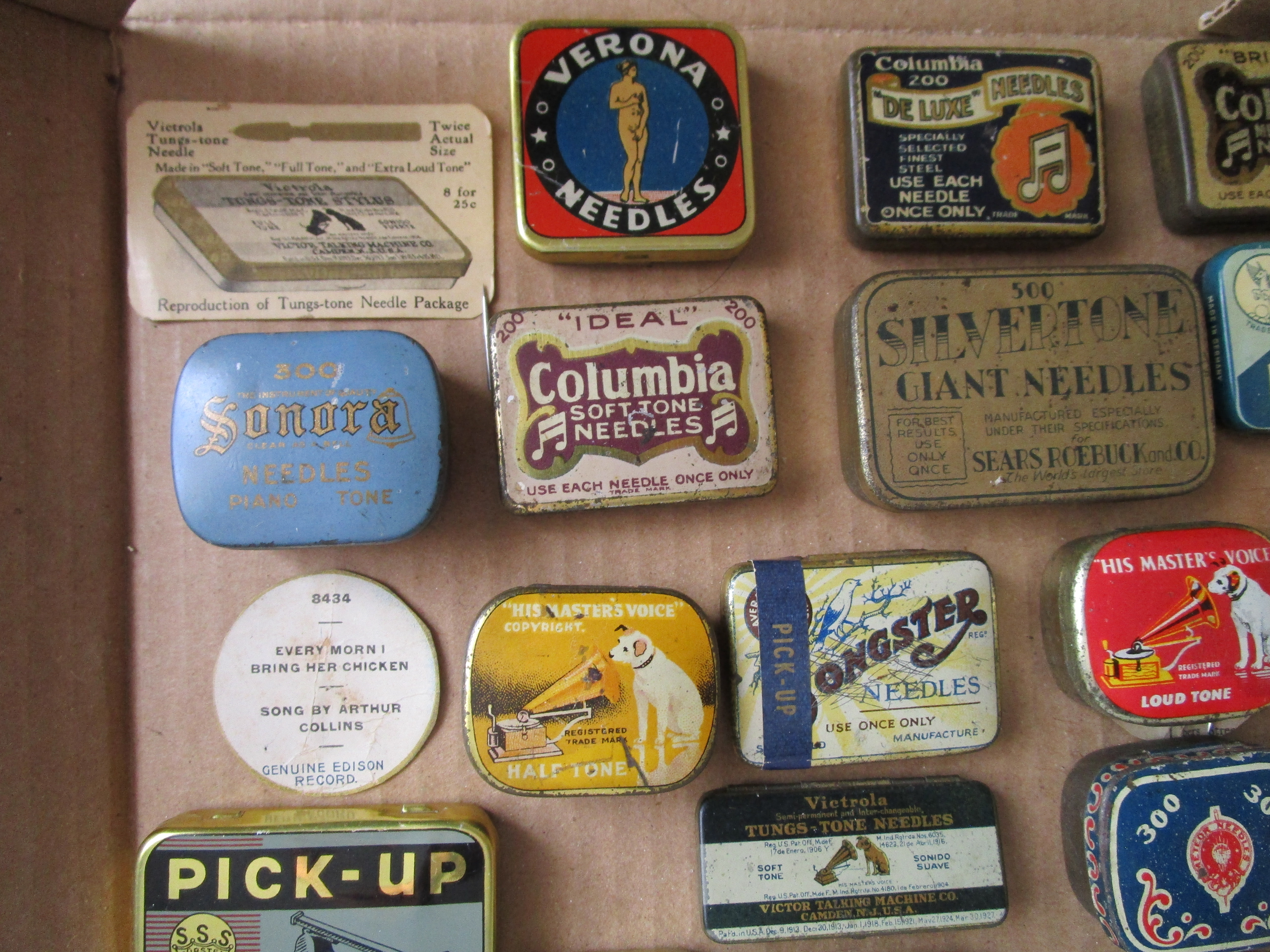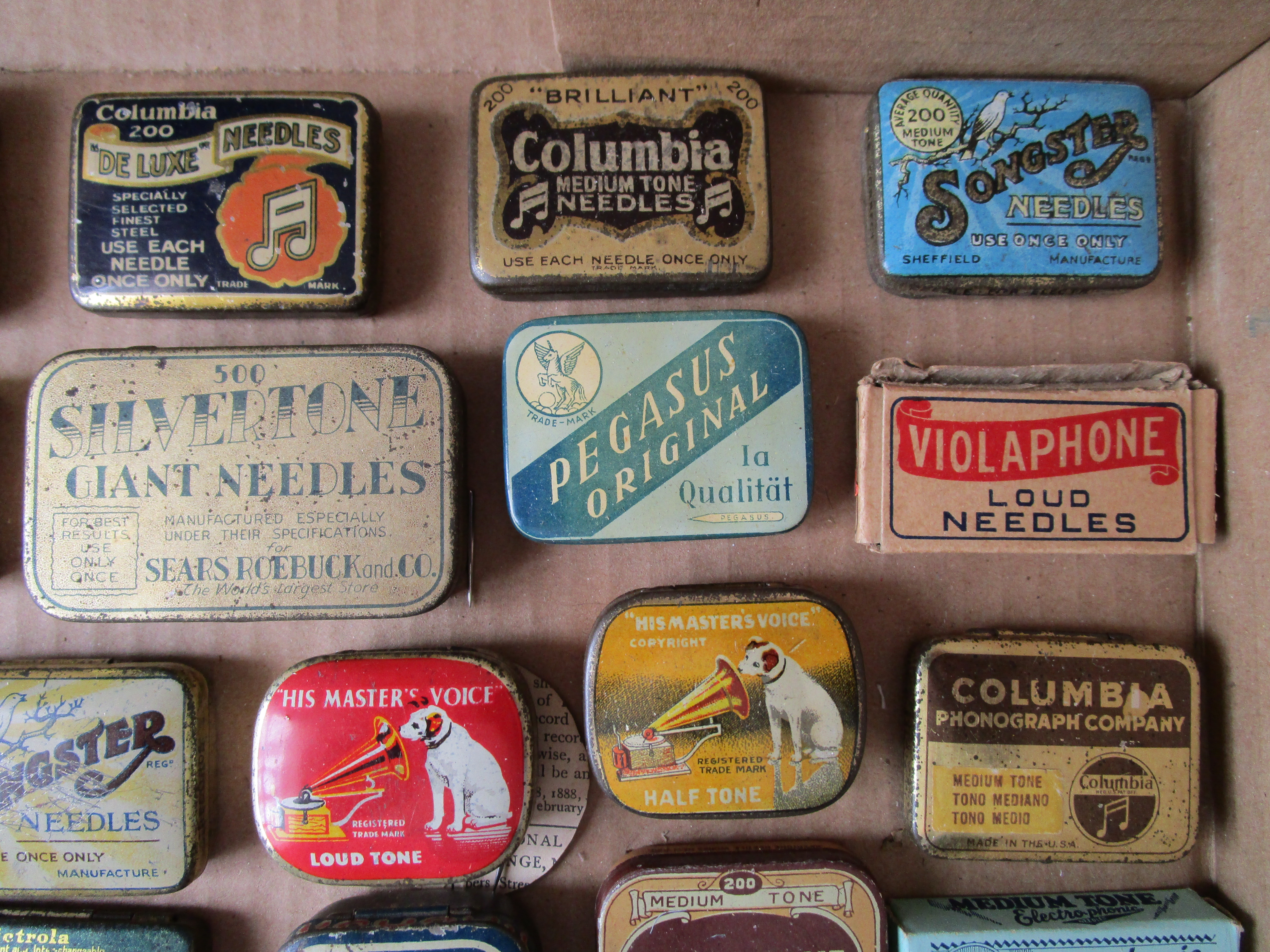 I purchased this needle tin collection from the late Paul Newth estate many years ago. Paul was an avid, long time collector of cylinders and phonographs in CT for many years. I've kept the needle tin collection intact for years and would like to sell it as a group. Several of these needle tins still have their original needles inside the respective tin. There are 25 (I think) needle tins and several paper needle packs included. $250 shipped to any USA address. That's less than $10 per needle tin/needle pack. Send me a PM with interest. PayPal Friends payment. Packed securely. Shipped within a day or two after receiving payment and USPS tracking number sent to buyer.