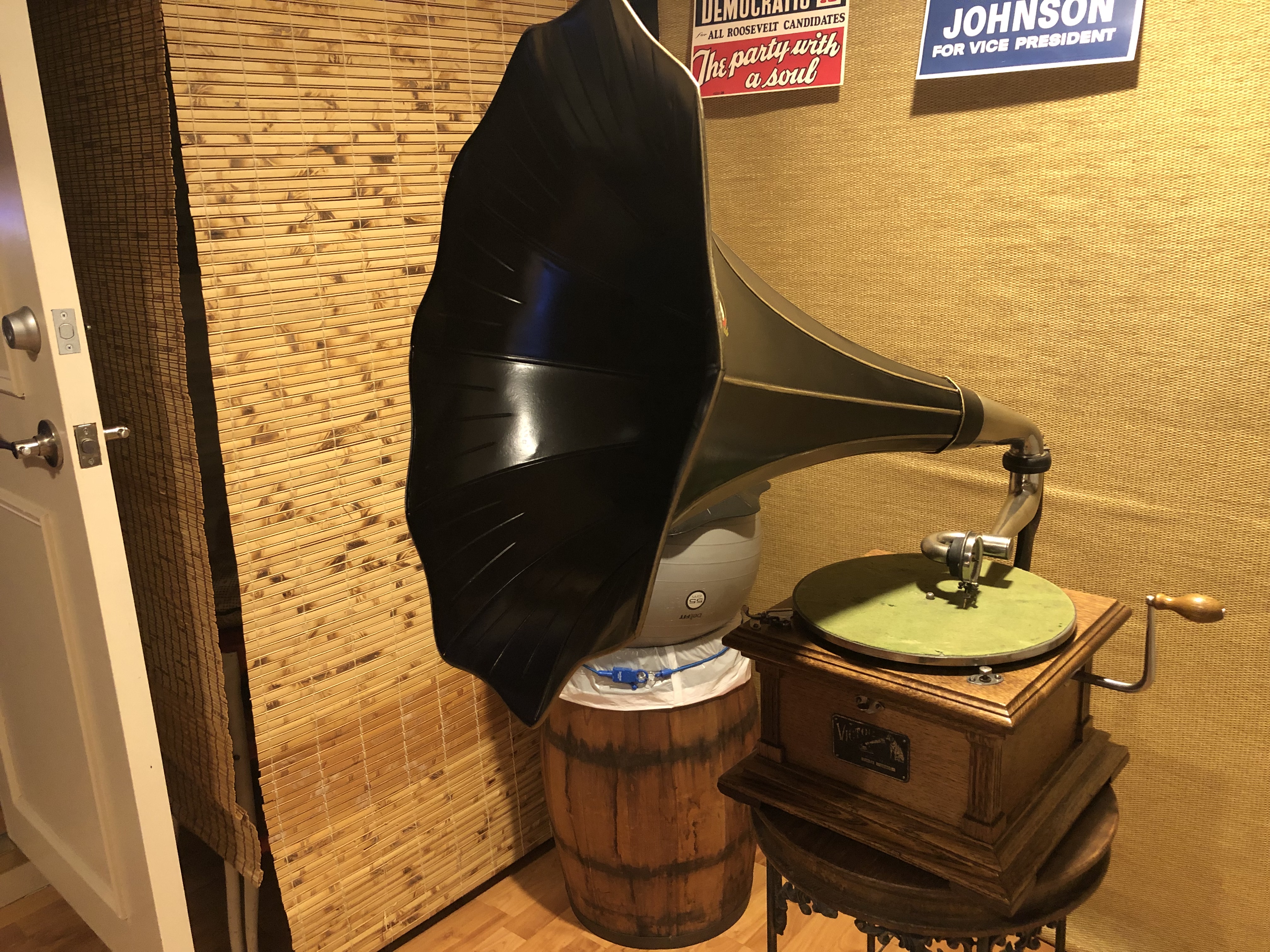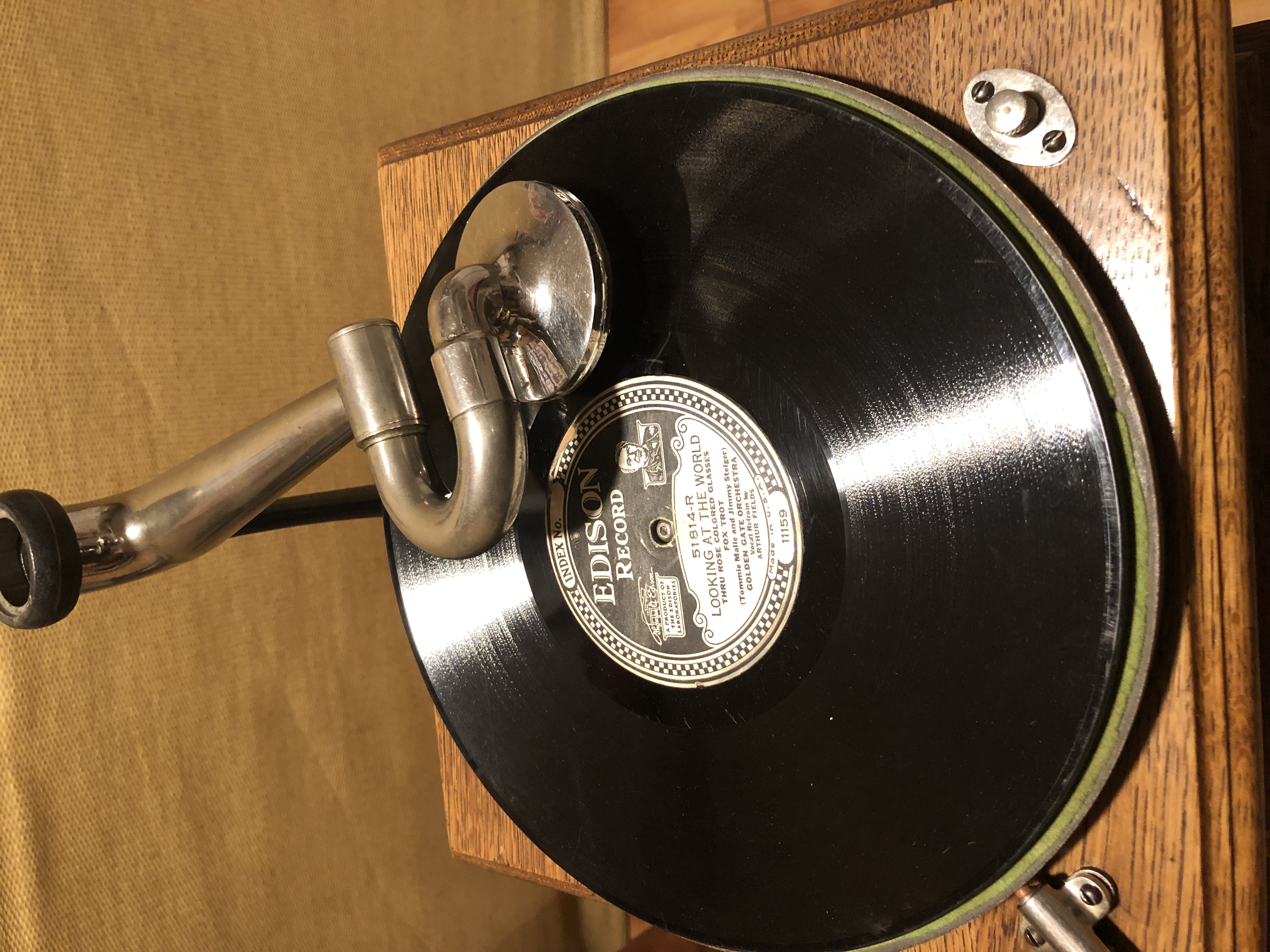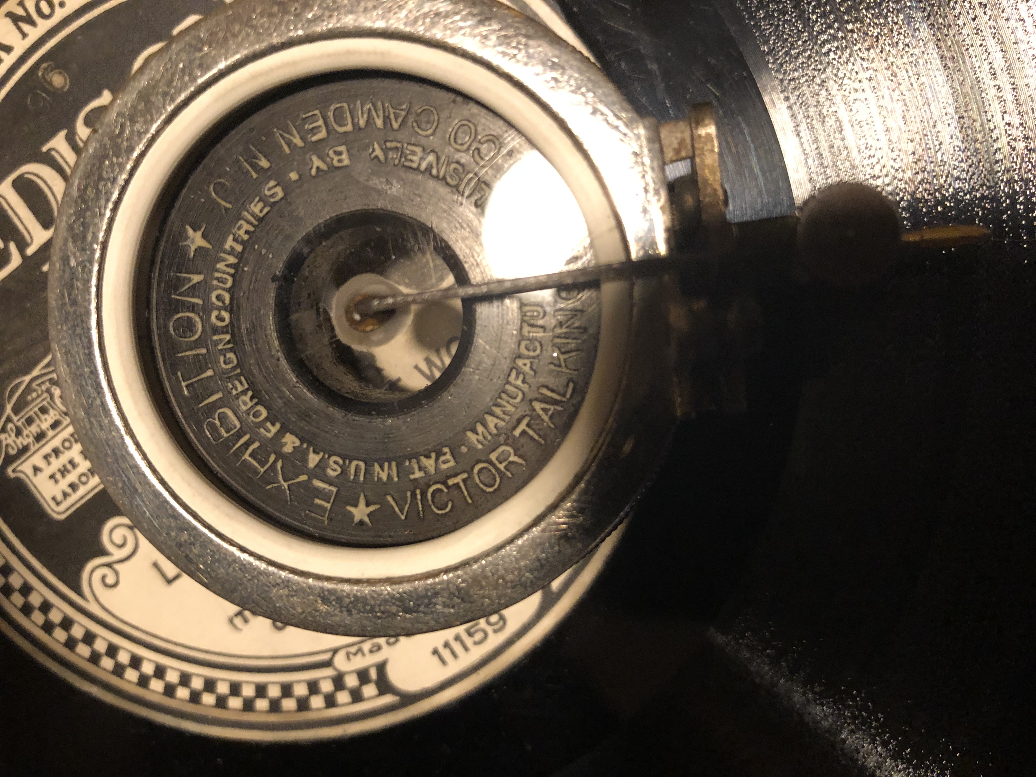 The "Exhibition" reproducer was just serviced and tuned by our very own "Mica Monster" himself. I usually like to include a Victrola No. 4 for playing electrical records, but this machine doesn't need it. I never thought an Exhibition could sound this good! (Thanks Wyatt!)