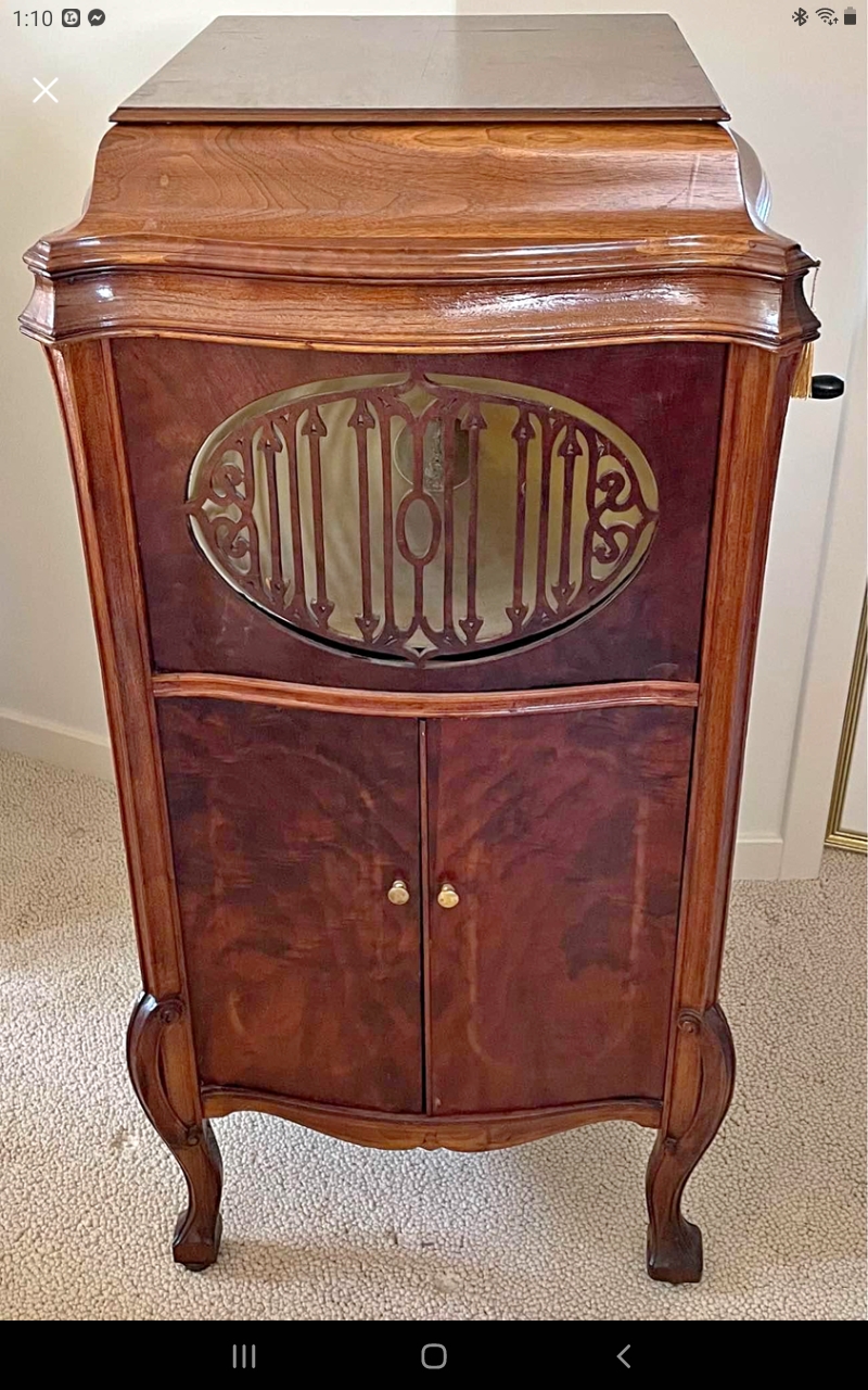 It looks like a great machine... if you don't mind the missing applied molding on the sides and doors etc. If one had access to an identical model (35 or 135, in either walnut or mahogany), moldings could be cast, stained to match, and then applied to the machine for sale. This was the top of the line for Brunswick at one time, and it is executed in the more expensive walnut option. A worthy project perhaps!