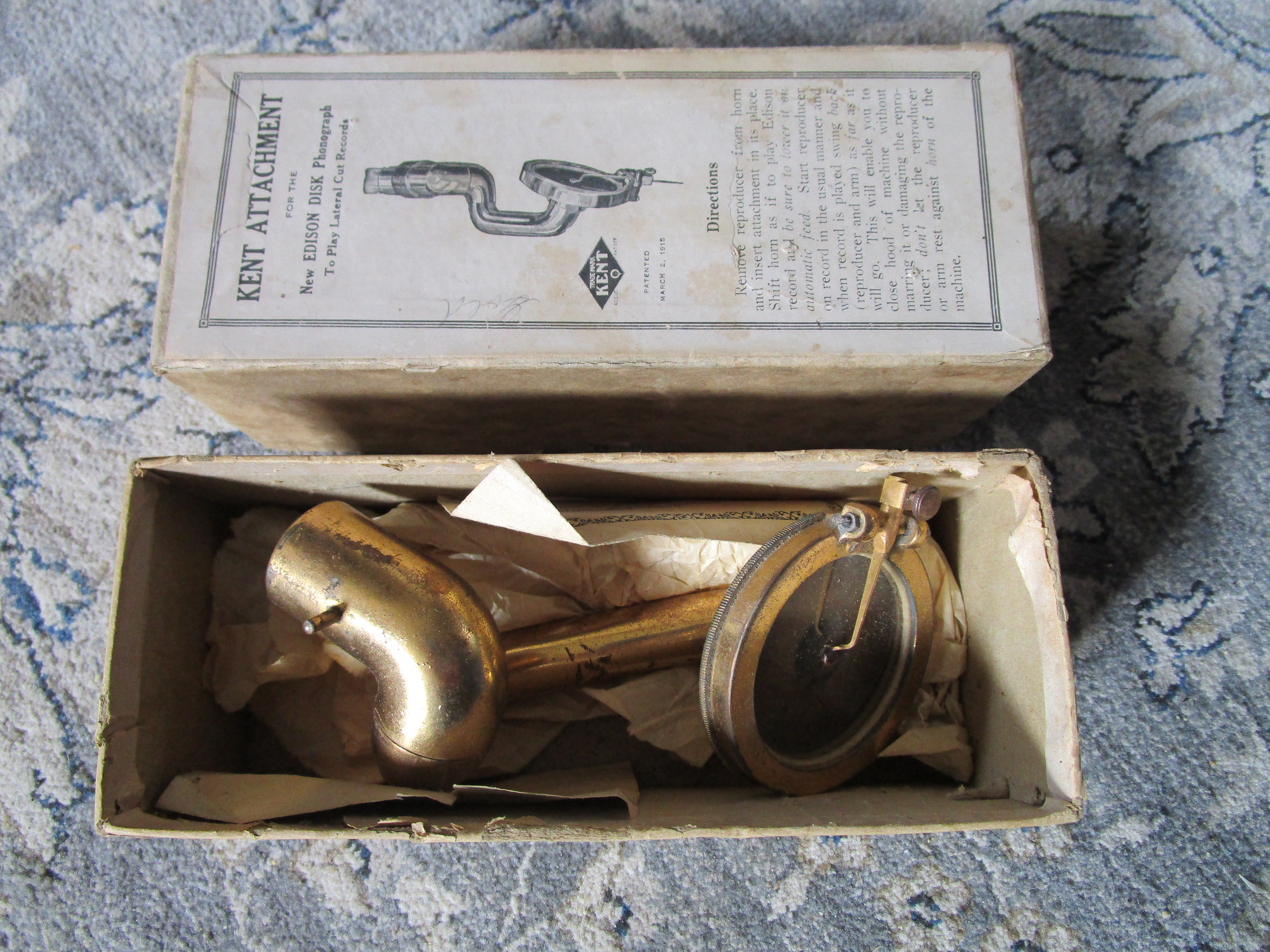 SOLD: Really NICE Original GOLD Kent Lateral Reproducer w/Original Box for Edison Diamond Disc Phonographs - $150