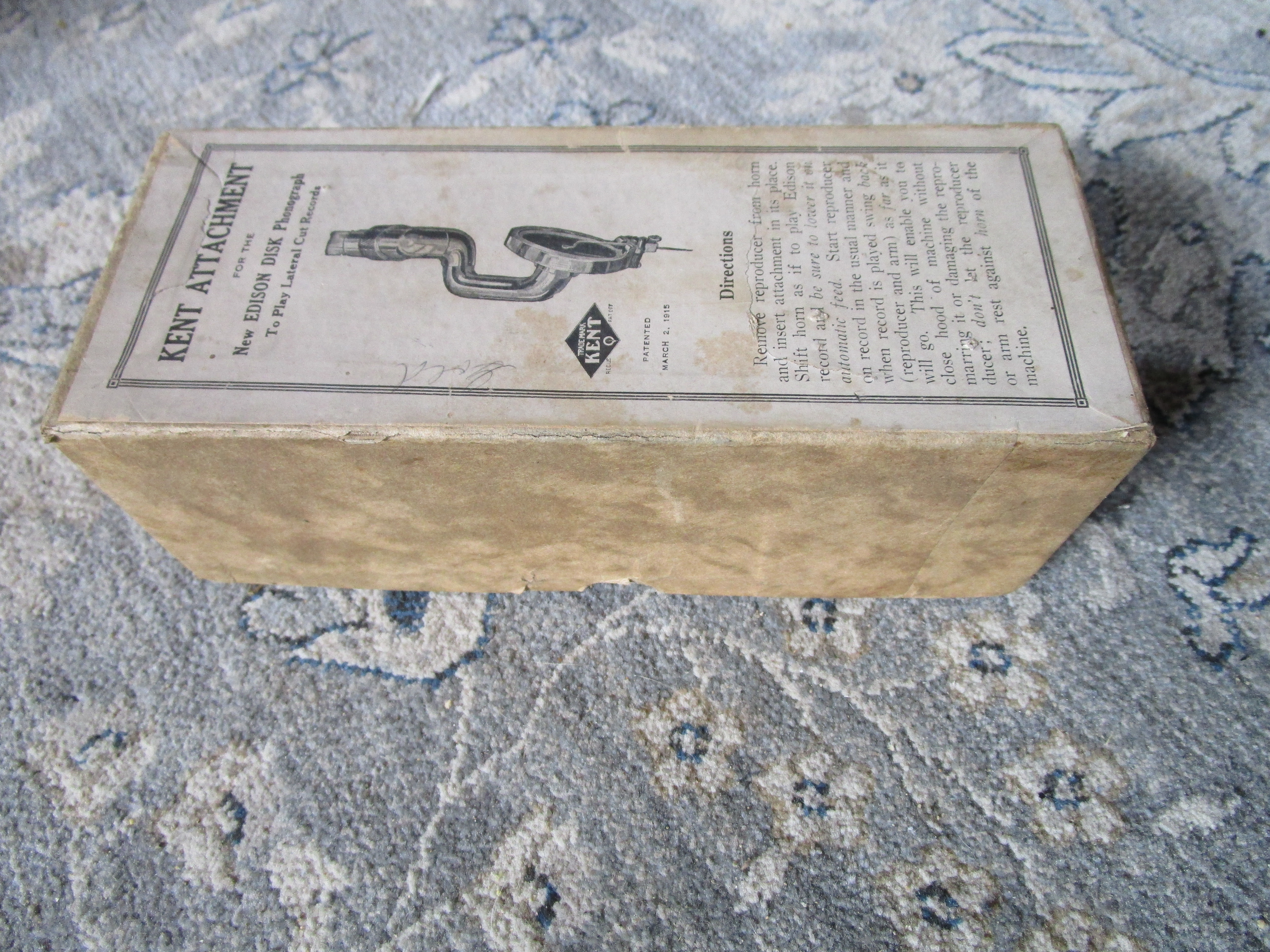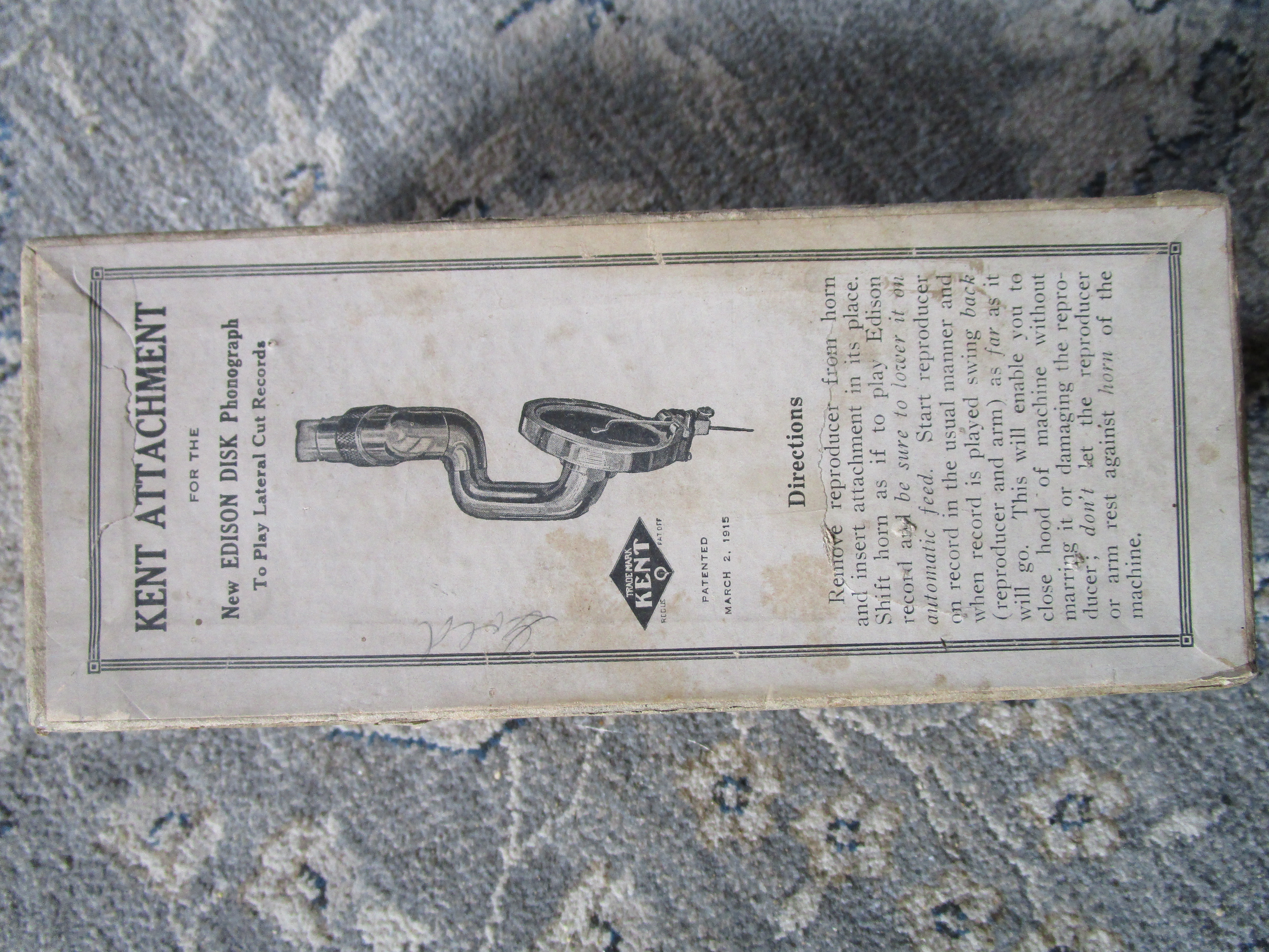 Here's the nicest condition Original Kent Lateral Reproducer Attachment in the GOLD finish with its original box for Edison Diamond Disc phonographs that I've ever found. Have a look at all of the pics! : ) PM, PayPal Friends, USPS extra at cost.