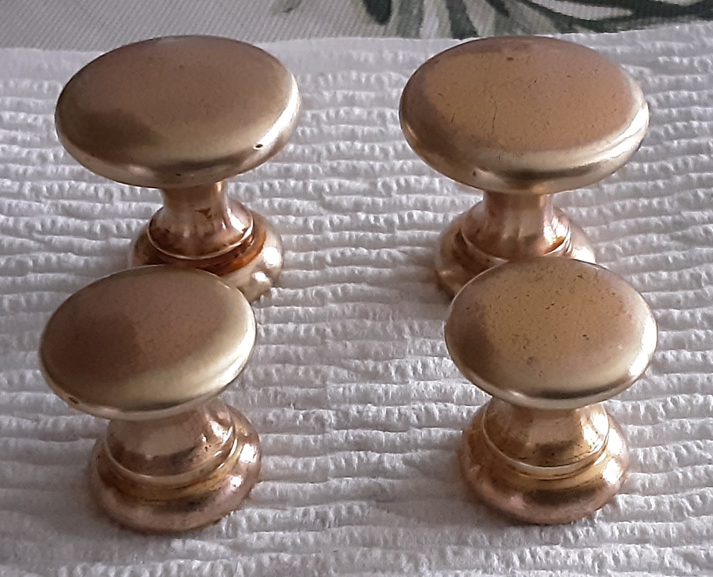 I noticed the brass knobs on my Victrola 17 i restored a couple years back have become dull again. I clean them with 0000 steel wool and dawn soap. Anyone who has done this knows it can be a pain in the brass to clean them.