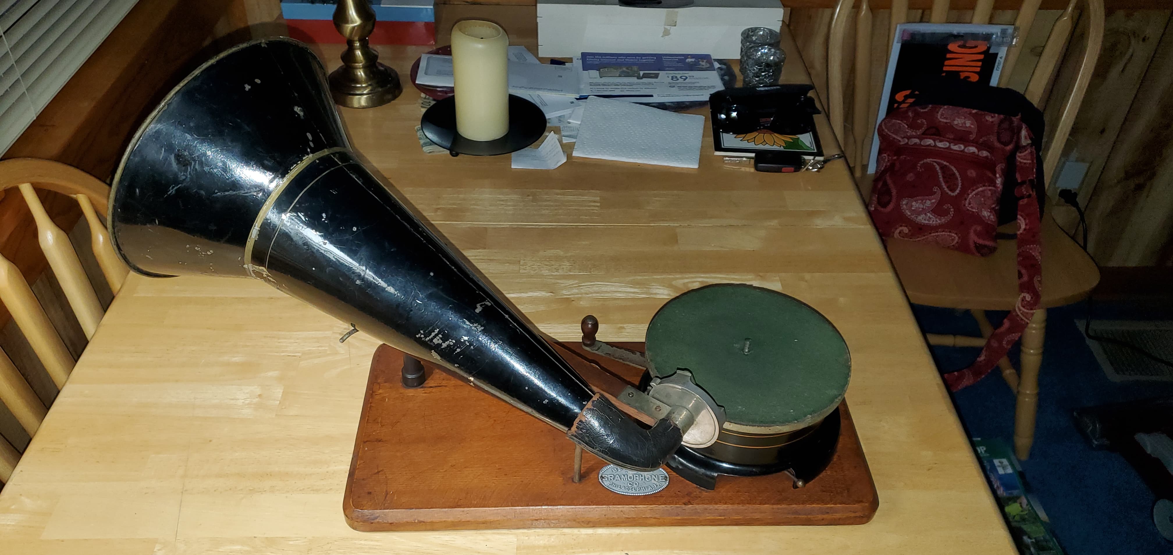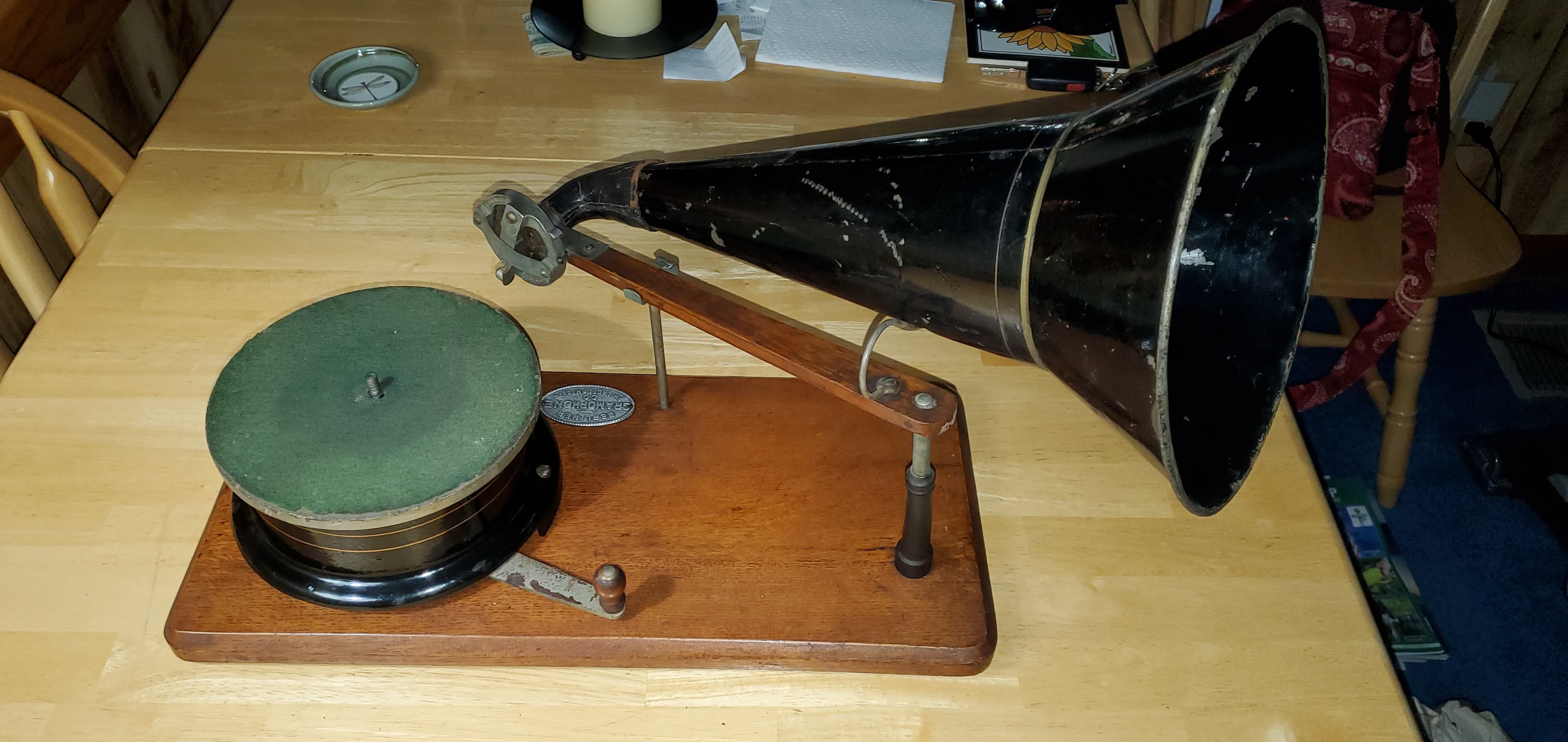William Thompson, Berwyn Heights, Maryland, on Facebook selling an estate full of phonographs, now taking bids on the Tin Can Berliner.