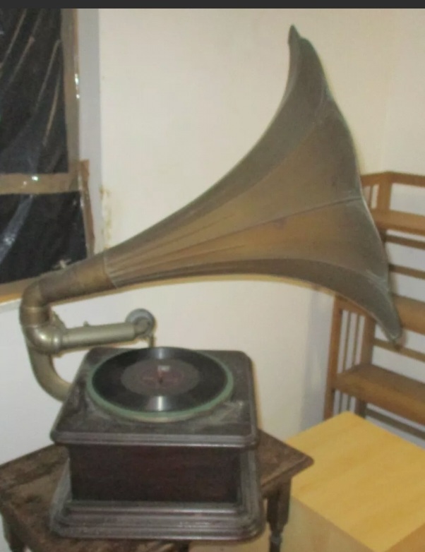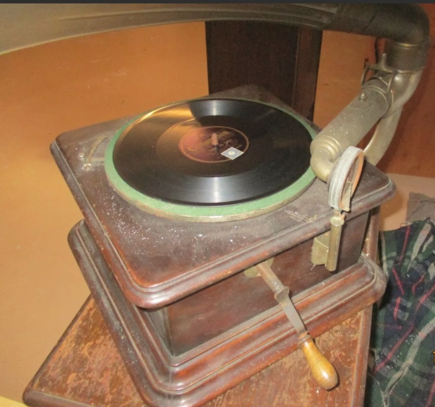 Can anyone please advise me on the originality of this machine pictured? The photos are not especially clear so I can't tell if the soundbox is original. I suspect the winding handle is a replacement but what about the horn and elbow? I don't recognise the horn but it looks wrong to me.