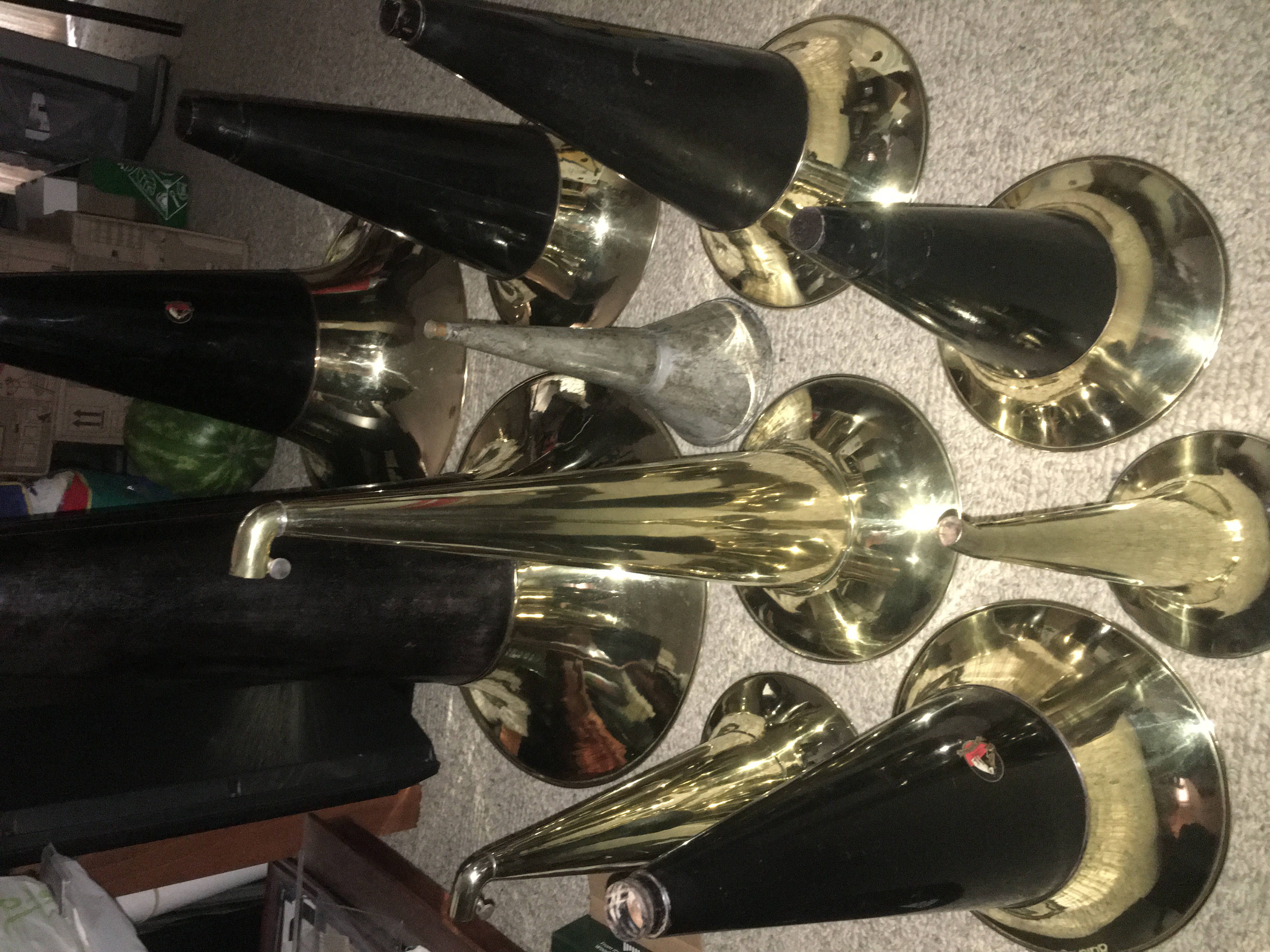 I am looking forward to the show coming up in less than two weeks! In addition to some great machines and cabinets I am bringing to sell below you will see an image of just a some of the horns that were sent to me in advance for return at the show.