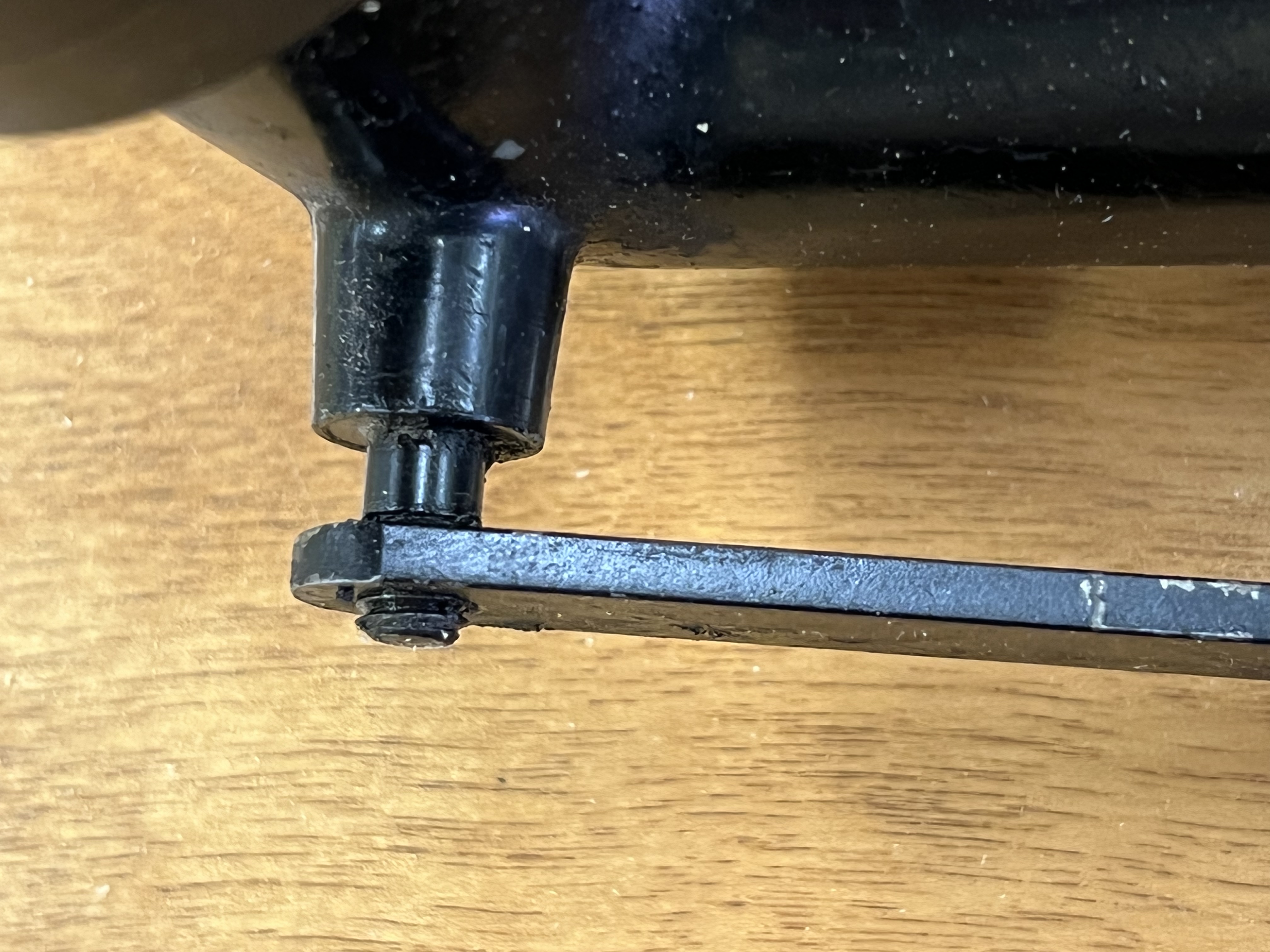 The pivot has a flange inside, and is pushed in place by the removable pivot on the other side, so there ought not to be any stress in it to cause failure again. This machine was beat up pretty badly when it was shipped to me, And this is likely a casualty of the shipping incident. Fortunately no damage to the cast section of the horn.