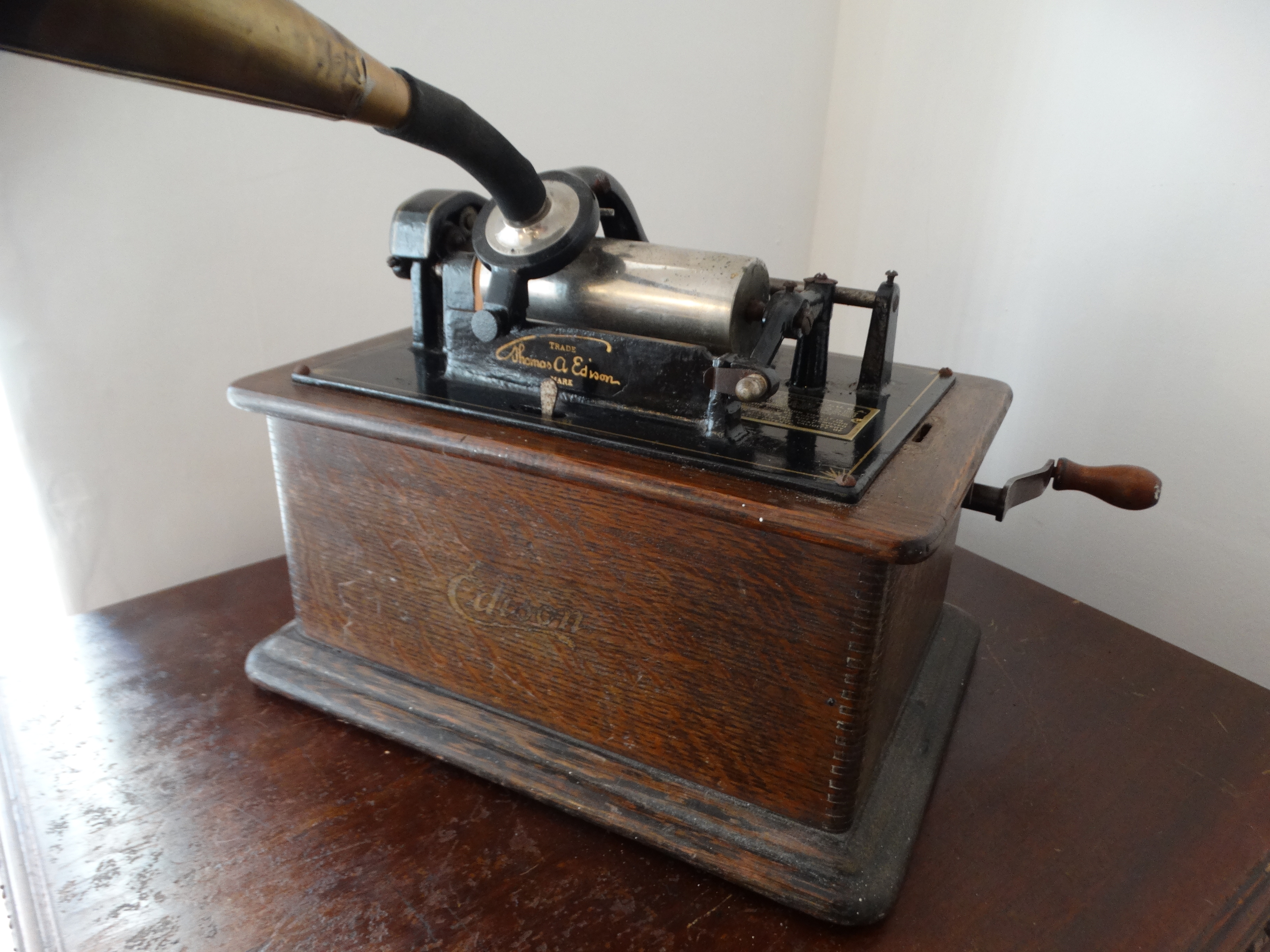 The phonograph is largely original although it has had some restoration, this includes a re-painted bed plate, motor cleaned and lubricated, new belt and re-built model K reproducer, the horn has been cleaned, the hanger is new and the horn end is also new, the original having been lost.