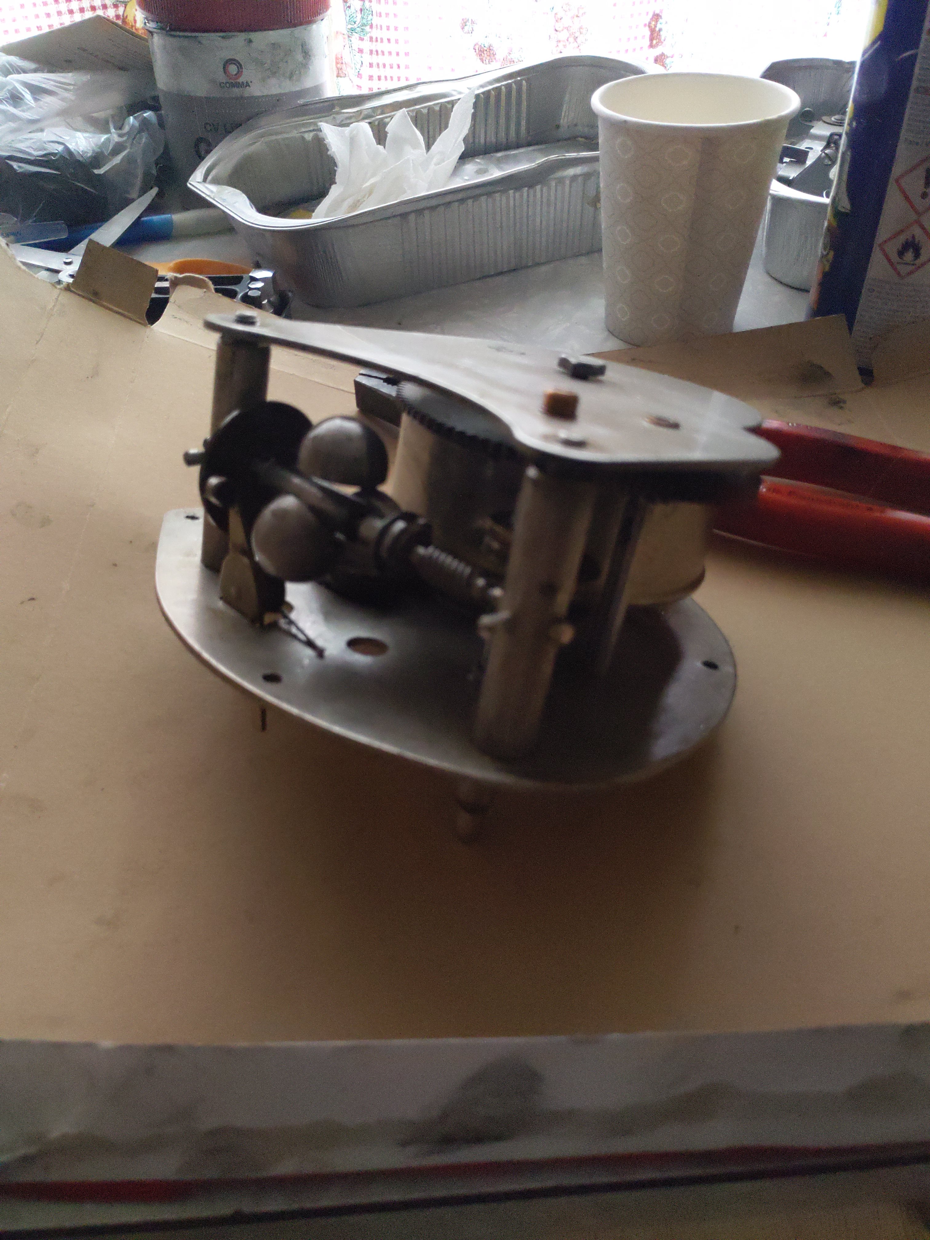 I bought the machine for a mere 30 euro, knowing it did not work, but it looked so nice, and I was curious to see what caused the problem, so I bought it. When dismantling it I quickly saw the spring had broken at both ends, not something I often come across, so far this is the first time I have seen it.