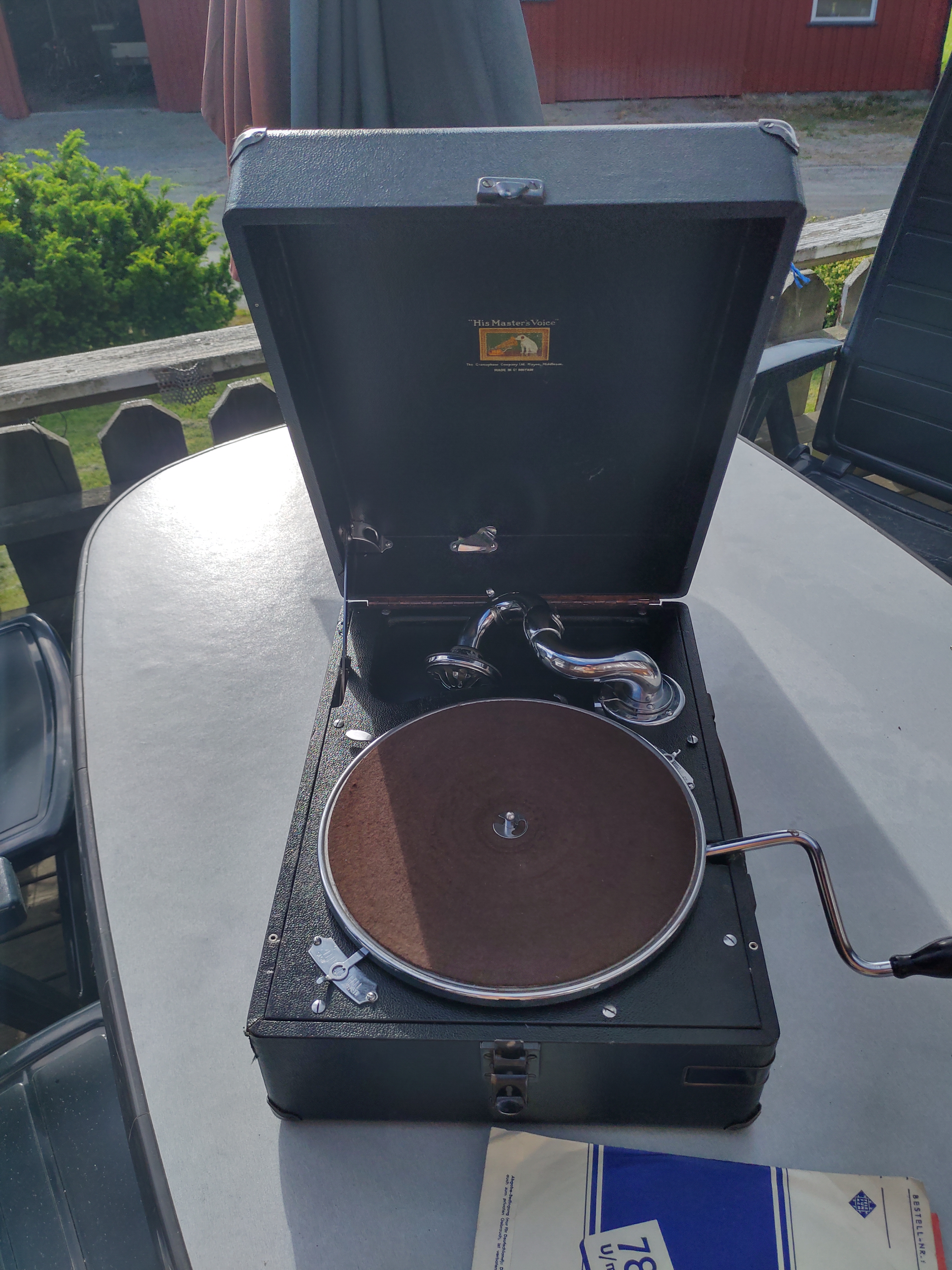 Unfortunetely the picture taken out in the sun are difficult to decipher, but thos having serviced a 102, will understand what I mean, I hope. This issue had of course again caused the owners to be unable really to get a good feeling of how to wind up the gramophone, and because of it, not knowing when to stop etc. The result, a broken spring at both ends at a very early time of the lifespan of this machine.