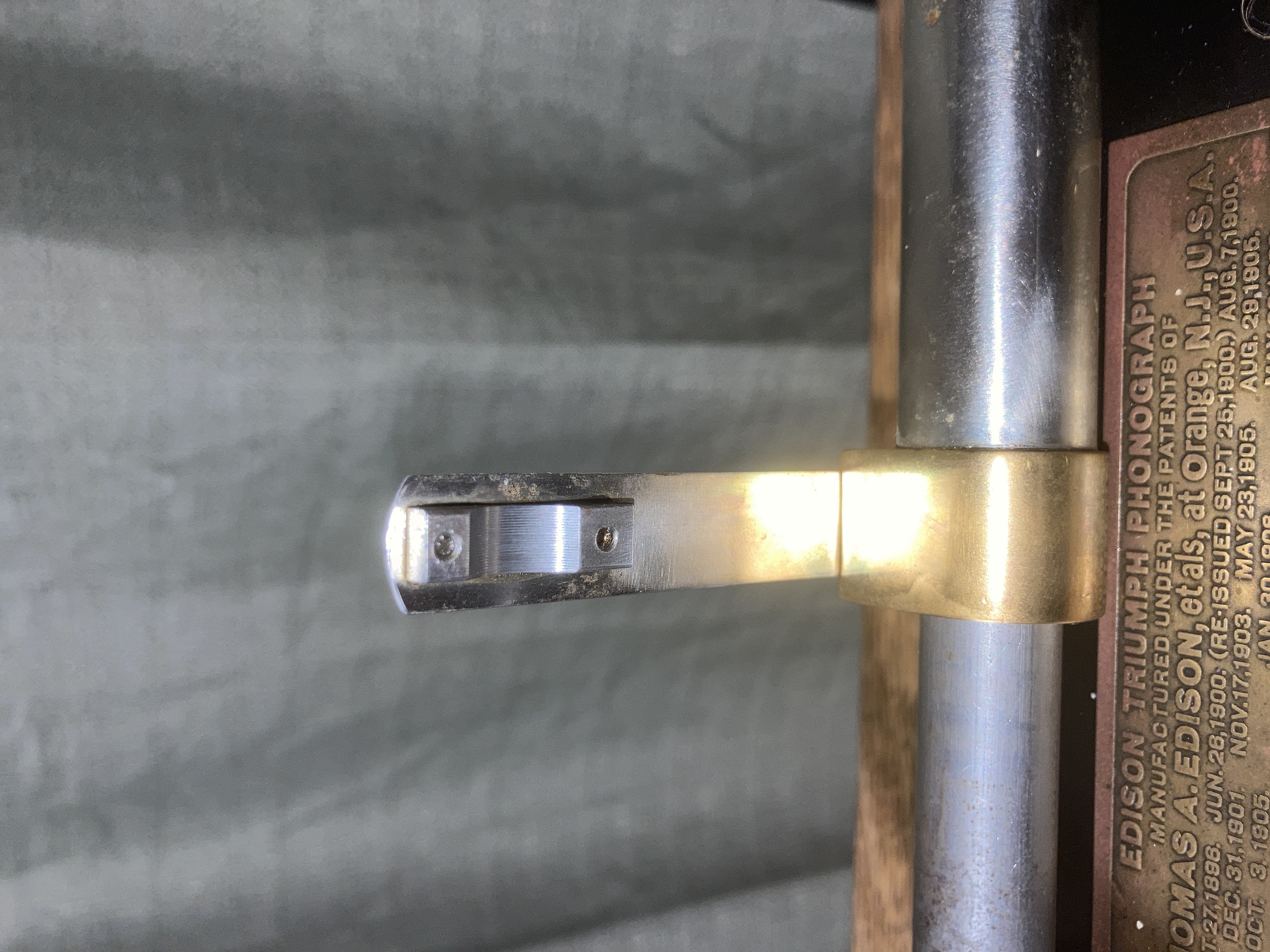 It’s a model B triumph with added 2 and 4 minute gearing. The one in that photo is JerryVan’s. I agree. I dunno if the half nut itself is screwed in wrong?gramophoneshane wrote: Sat Jun 18, 2022 1:09 am Ah ok, I can see a bit more detail in that photo, and it appears the black carriage arm basically clamps to the metal sleeve to which that whole half nut bar assembly is attached.