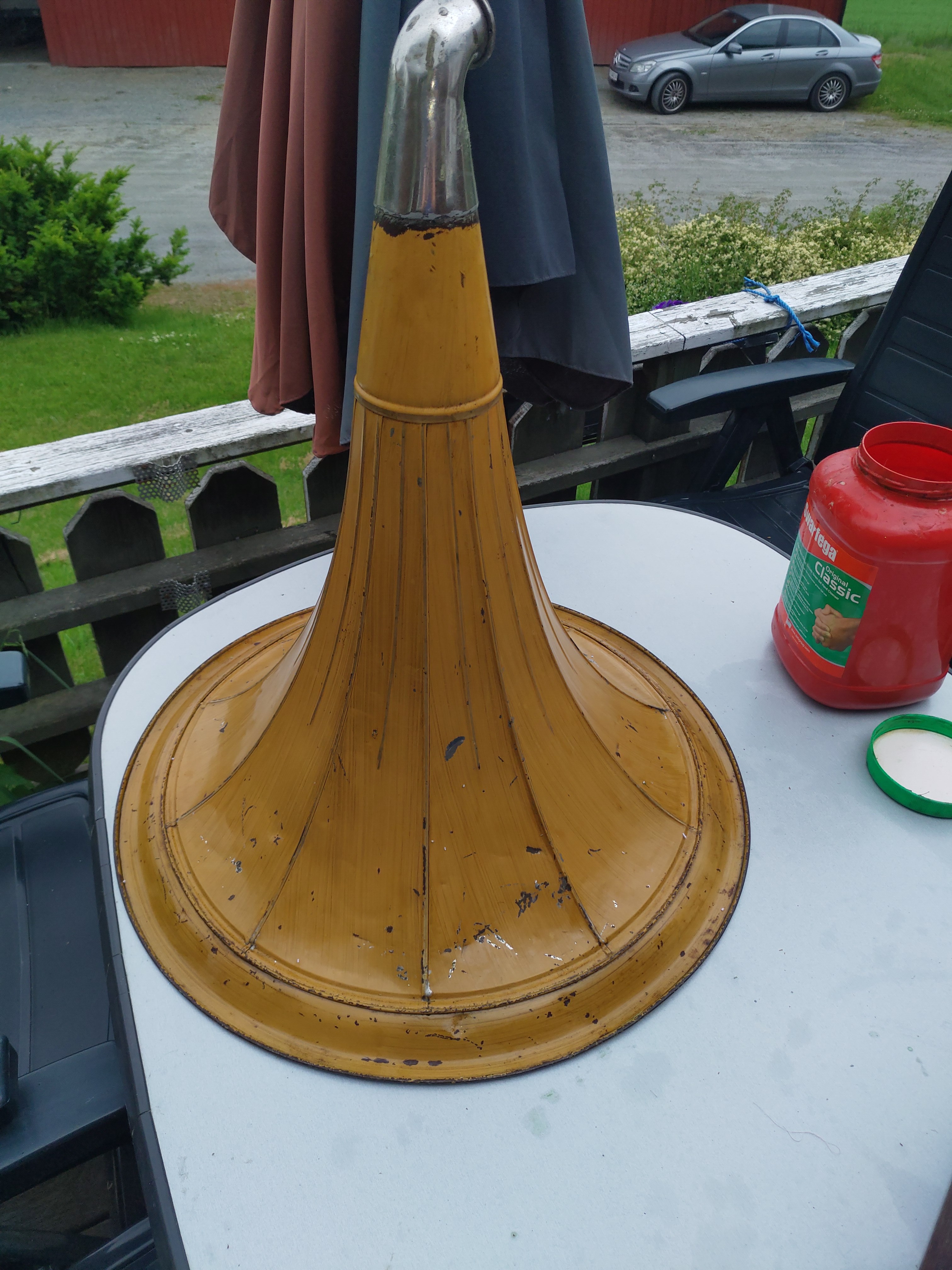 Changing subject, is the horn that I see one of those painted as faux-wood paneled horns on the front? If so, I also happen to own one of these (although mine seems twice the size of yours).