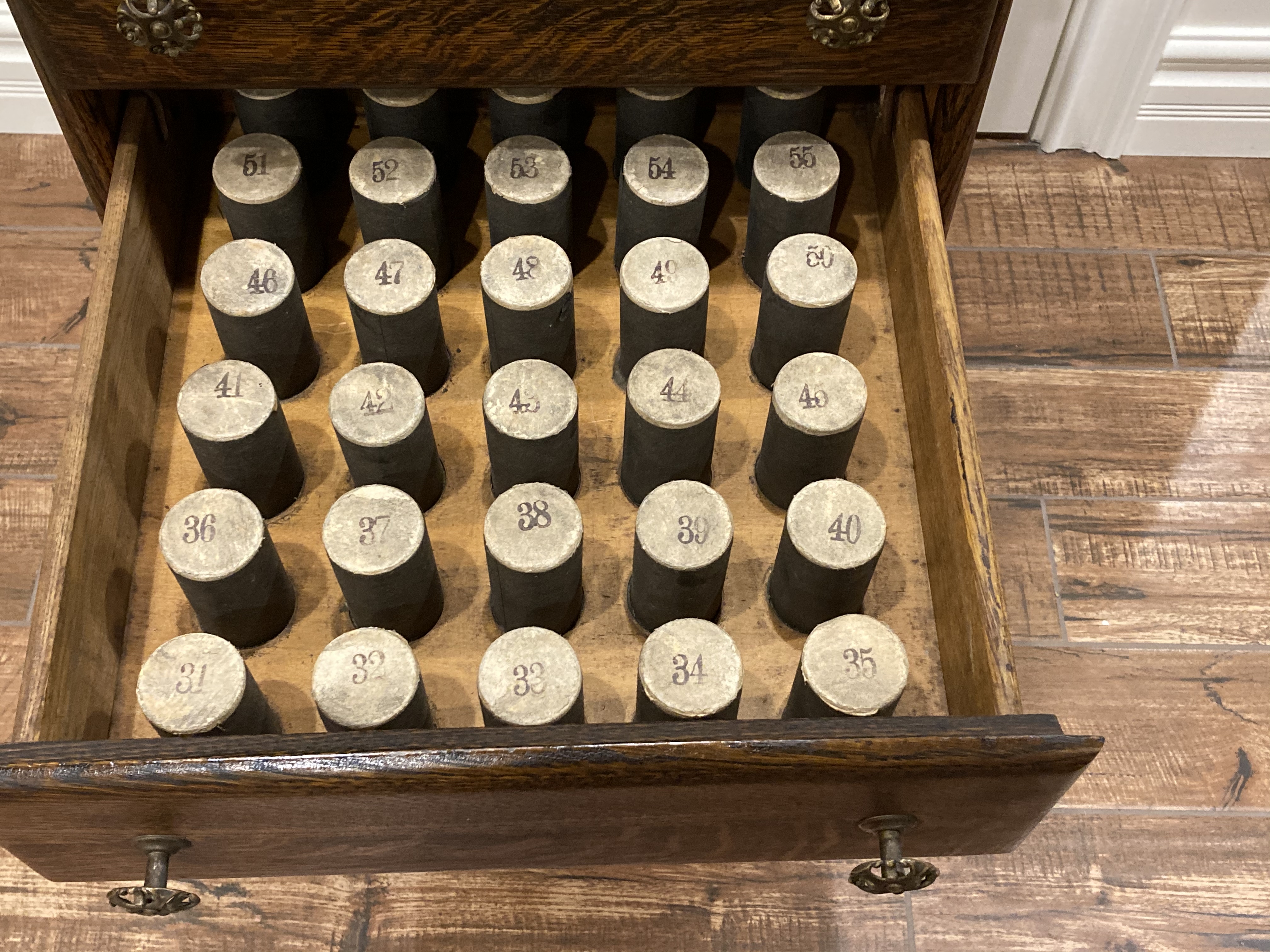 SOLD FOR SALE: OAK CYLINDER RECORD CABINET: $400