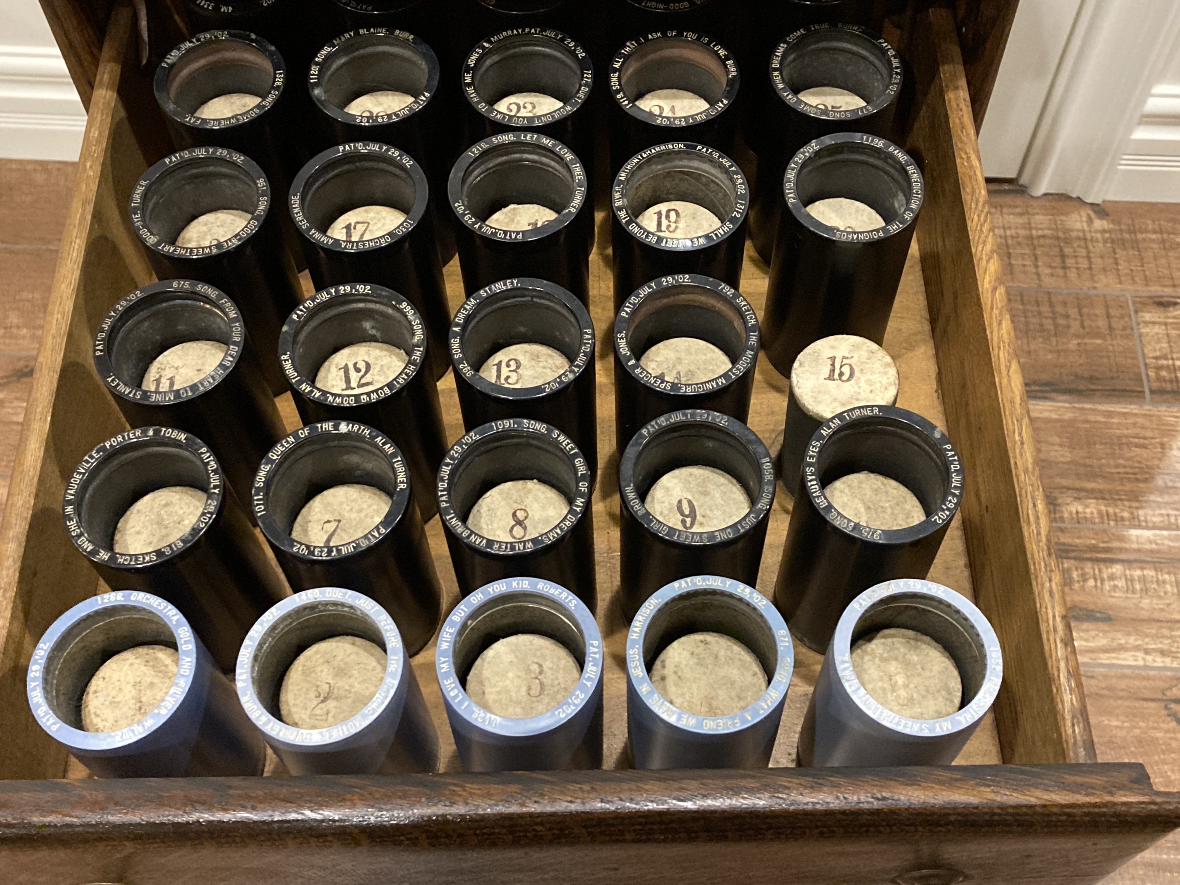Super nice all original oak cylinder record cabinet, original finish, all original pegs , no case damage, ready to use. Pickup in Cape Girardeau Mo. or will work with you on delivery.