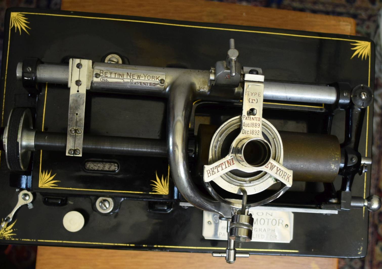 The Bettini "R" is generally listed as a recording head, with the "N" being the reproducing head. Interestingly, your "R" is set up with a reproducing, not recording stylus. Here are a couple pages from a Bettini catalog that will provide additional information on your specific Spring Motor phonograph.